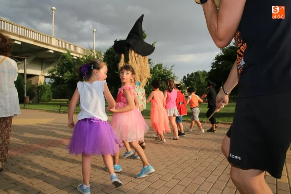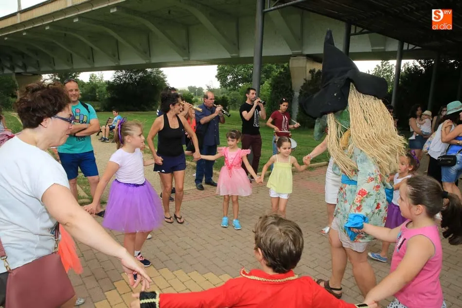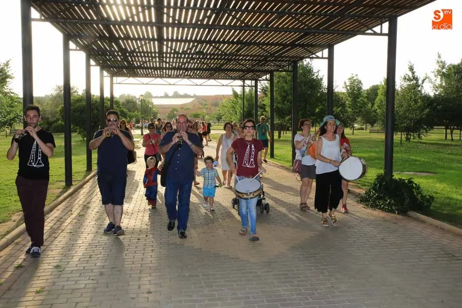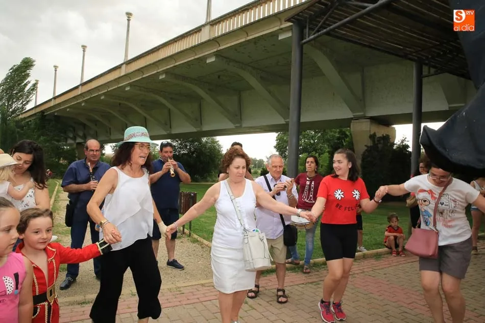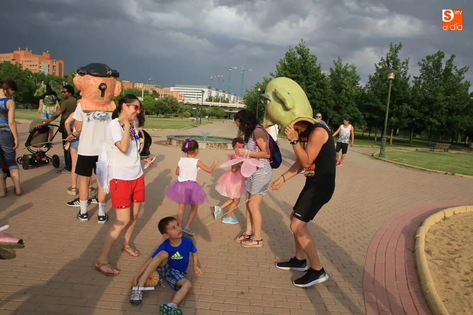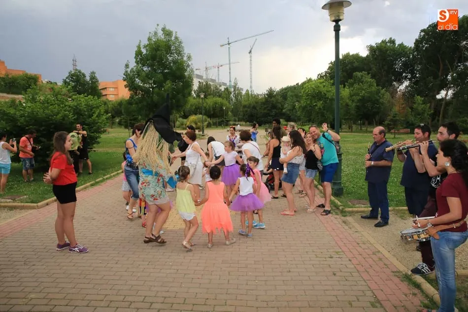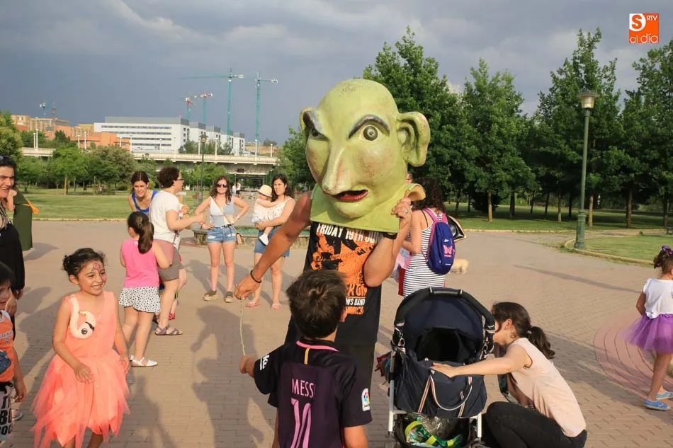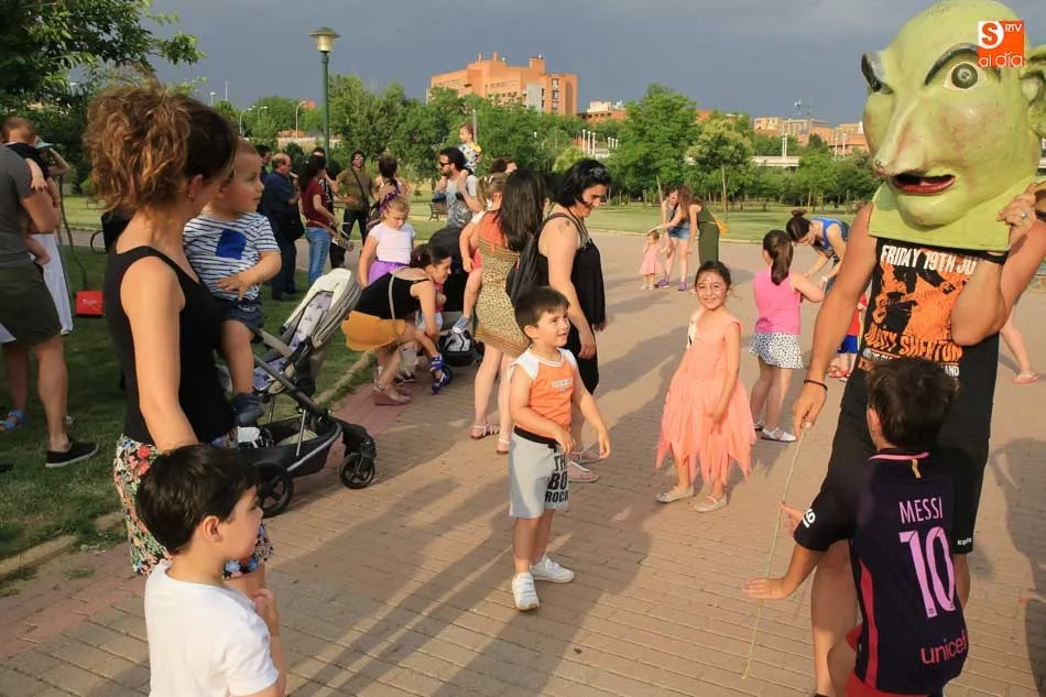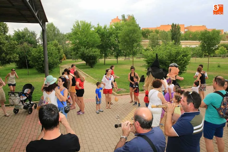 La actuación de La Escuelita de Baile de Huerta Otea en el Colegio Mayor Guadalupe dio el pistoletazo de salida al programa, seguido de los cabezudos, que recorrieron el Parque Huerta Otea al ritmo de la música.