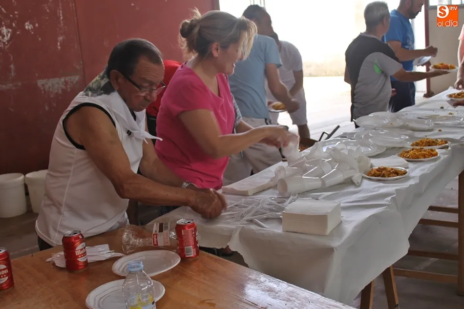 Con mucho esmero y a fuego lento. Así han preparado la rica paella de la que han disfrutado los vecinos y amigos de Valverdón en este lunes de fiestas de San Juan. Unas 500 raciones de paella para repartir y reponer fuerzas en la recta final del primer fin de semana festivo, porque la programación de las fiestas patronales tendrá continuidad los próximos días 29 y 30.