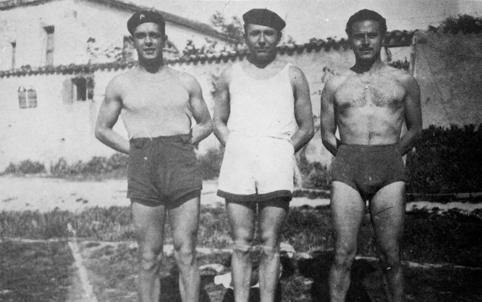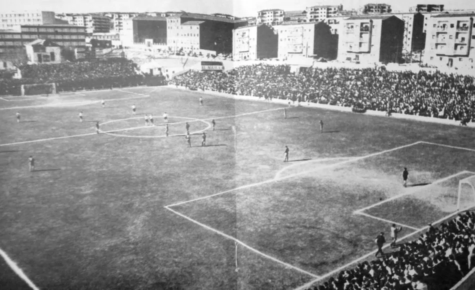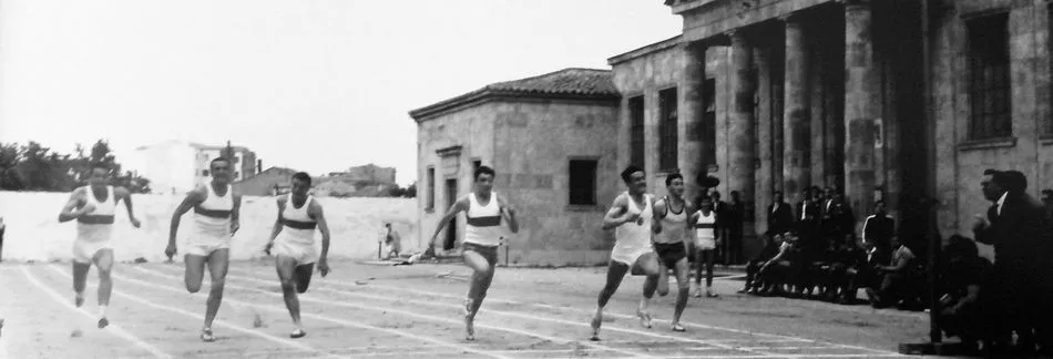 Por su parte, las instalaciones primitivas estaban ubicadas unos metros más al norte ?en la actual facultad de Historia?. Se trataba de una zona deportiva construida en la posguerra, con un único acceso desde la calle Serrano, que contaba con diversos campos ?frontón, pista de baloncesto, pista de voleibol? y con un pabellón cerrado ?vestuarios, gimnasio con espalderas y zona para los halterófilos como Tino Iglesias? cuya pared exterior tenía unas vistosas columnas de estilo griego que soportaban un frontón triangular dándole al conjunto un espectacular parecido a los templos de la Antigüedad. Llegado el momento, las pistas deportivas, con suelo de arena, se transformaban en improvisadas pistas de atletismo para acoger competiciones de lanzamientos o de velocidad. Con ayuda de la cal, se celebraron allí campeonatos durante las décadas de los cuarenta, cincuenta y sesenta. No en vano, en ese lugar, Sánchez Paraíso logró uno de sus primeros récords de España ?los cuales fueron 48?.
