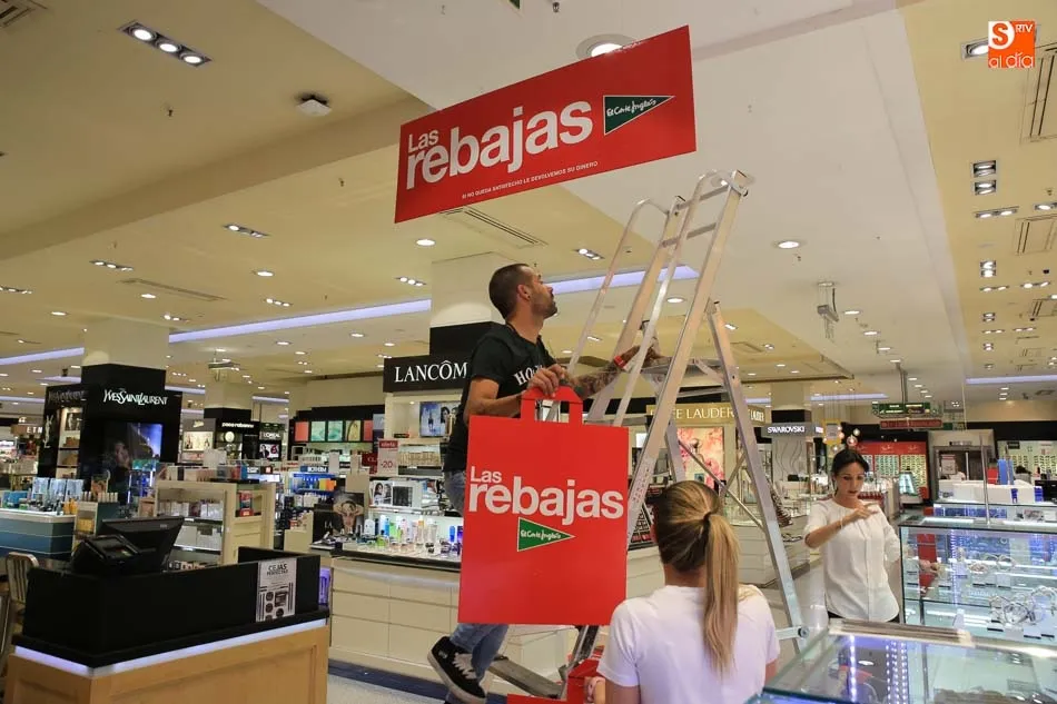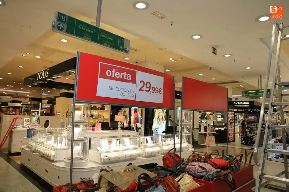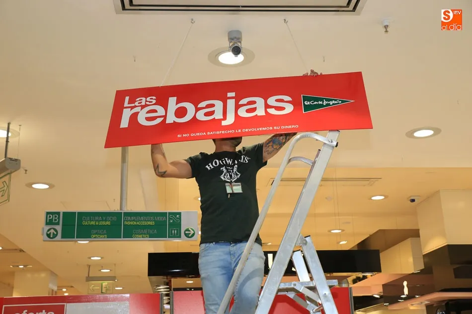Al cierre al público de las instalaciones, los dependientes y operarios de los distintos establecimientos se dirigen a preparar el inminente inicio de las rebajas, que se producirá este viernes. Y si hay un lugar donde las rebajas son una seña de identidad es en El Corte Inglés. Dan las 22 horas y las trapas del centro se cierran, pero la actividad es frenética en el centro. Los dependientes y operarios del centro comercial se disponen a cerrar el día, pero de forma inminente inician la preparación de una de las citas más importantes para la firma, pero taambién para los miles de salmantinos que durante los próximos días buscarán esa prenda o ese enser que tenga un precio reducido y que les permite adquirirlo, cosa que, a lo mejor, no se atreen a hacer durante otra época del año.