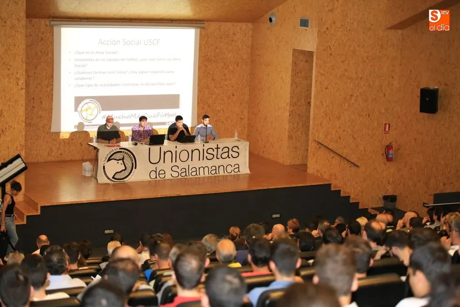 Con una gran respuesta por parte de los socios, durante la asamblea, el vicepresidente, Javier Tejedor, explicó que habrá reformas en Las Pistas para ampliar el aforo considerablemente la próxima temporada. Asimismo, con 323 votos (77,27%), los socios de Unionistas han decidido la que será la camiseta para el debut en Segunda B, de color blanco y negro en diagonal, en la parte delantera y en la espalda, con la imagen del patrocinador.