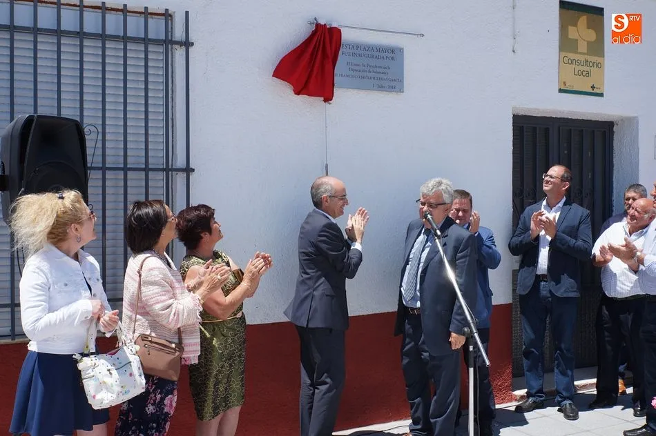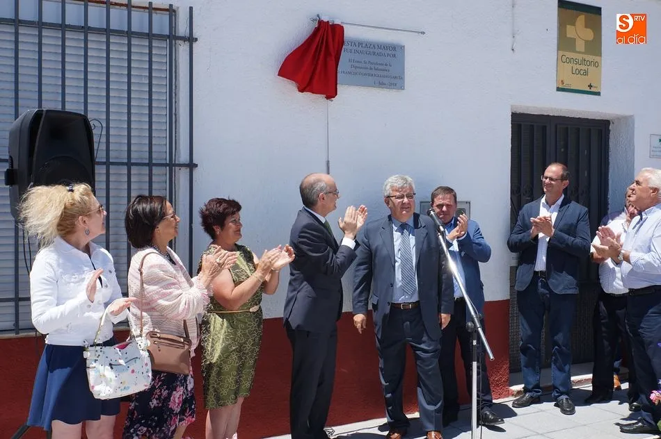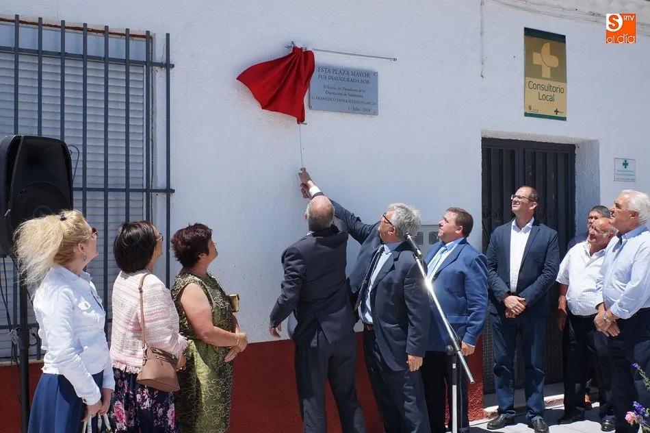 La inauguración de la Plaza Mayor fue el siguiente paso, con la presencia de Manuel Ramos, alcalde de la localidad, Javier Iglesias, presidente de la Diputación de Salamanca y encargado de desvelar la placa inaugural y varios alcaldes de localidades cercanas, como Juan Ingelmo de Palacios de Salvatierra, Rosa Hernández de Campillo de Salvatierra, Eloy García de Montejo o Ángel Sánchez de Pizarral entre otros.