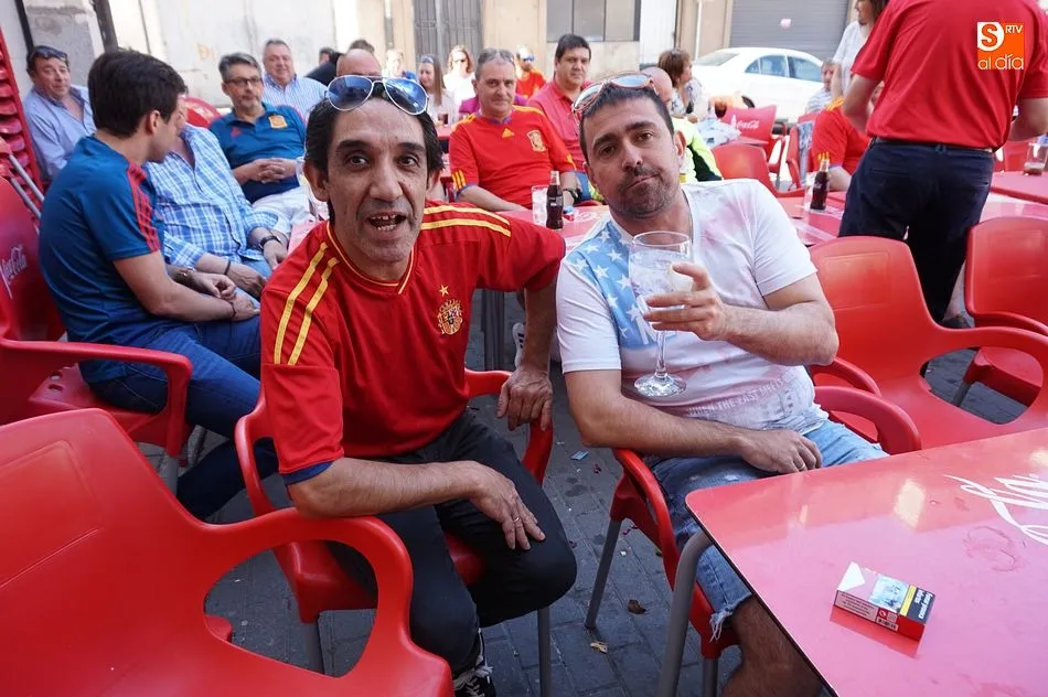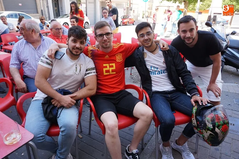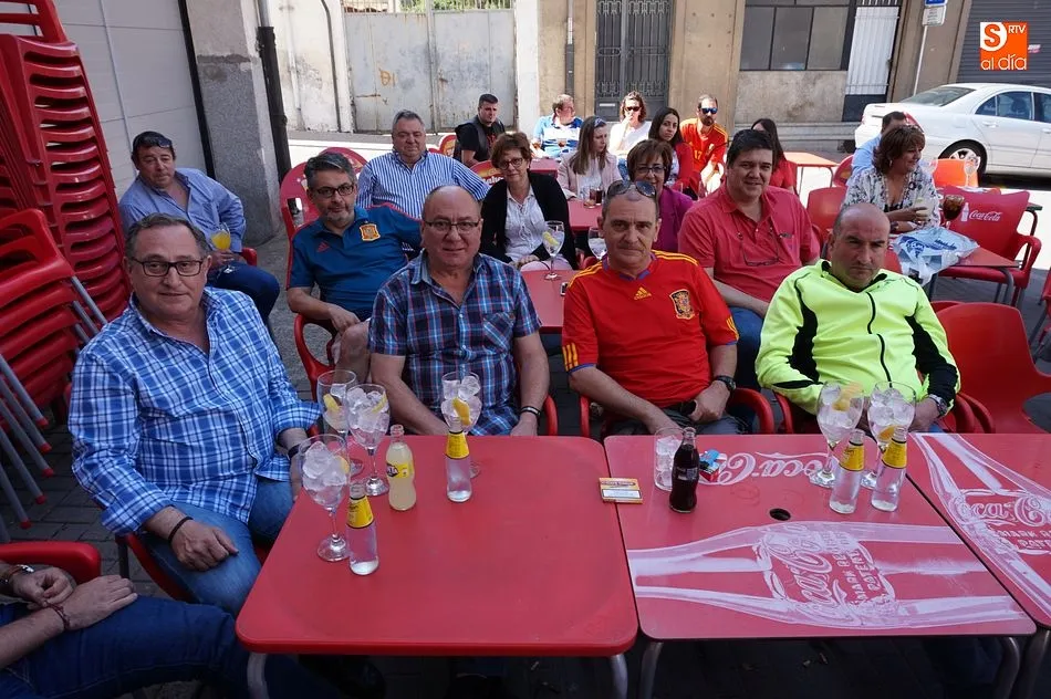 Los aficionados al fútbol se volcaron esta tarde con la Selección Española en el cruce de octavos de final contra los anfitriones rusos. Los bares y terrazas de la villa se llenaron de camisetas de la selección esperando ver avanzar al conjunto de Fern