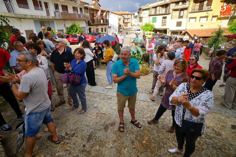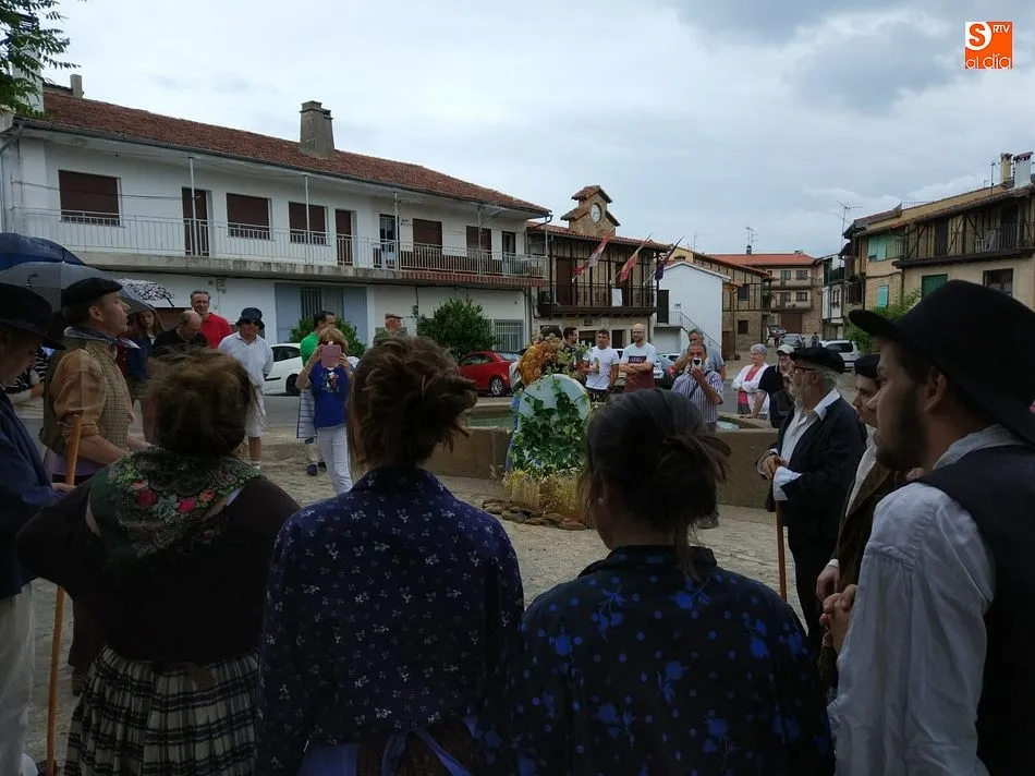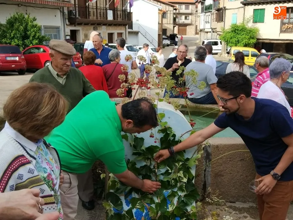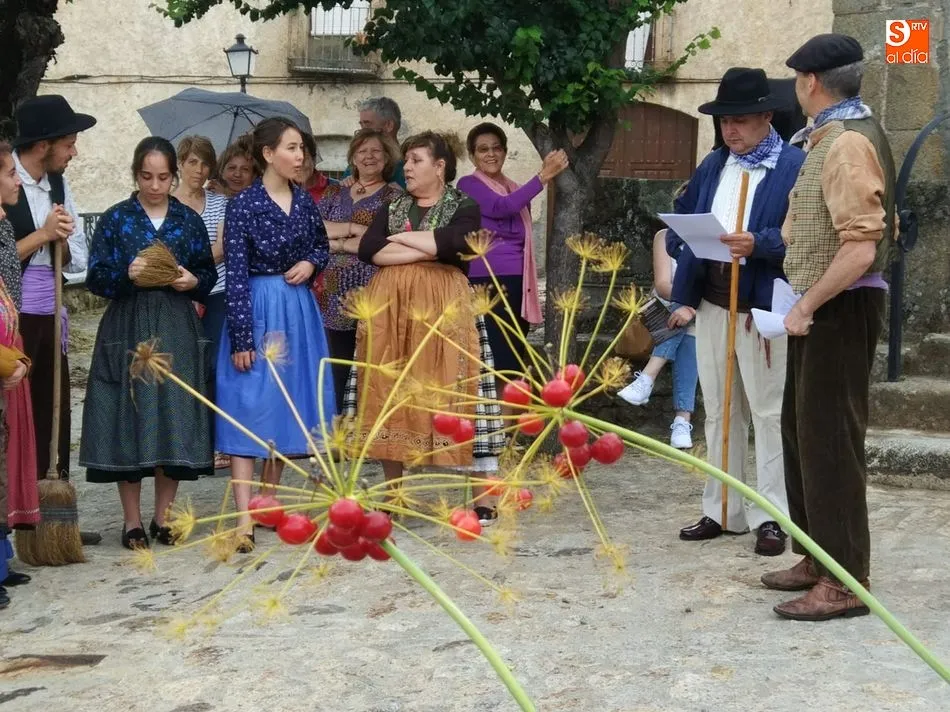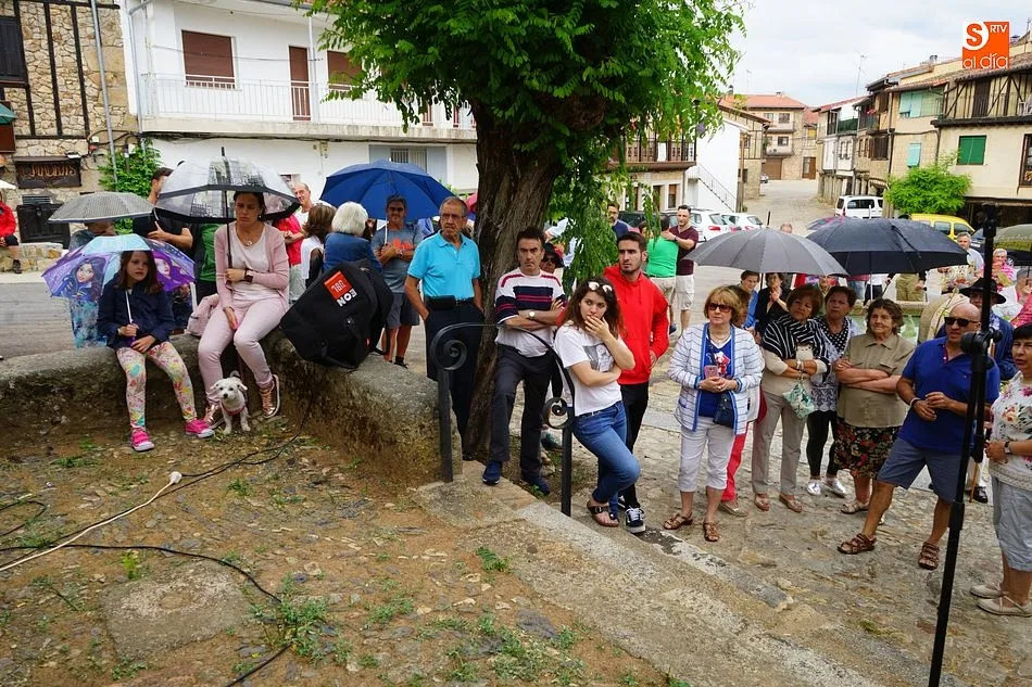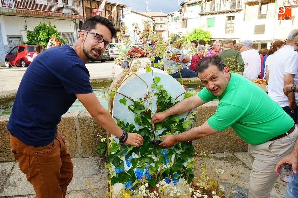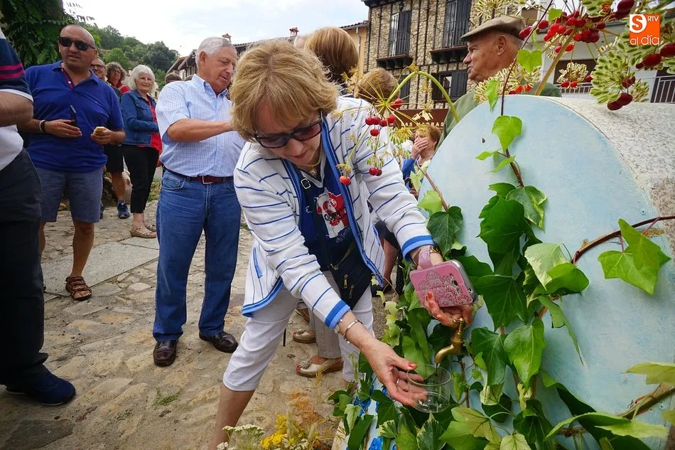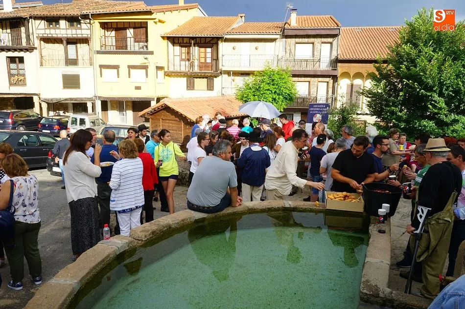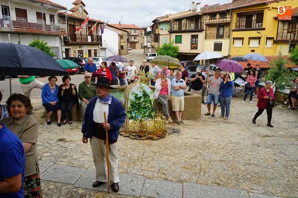 Por la tarde llegó el momento del grueso de la fiesta, con la escenificación del ?Arriendo de Calles? a cargo de Cateja Teatro. Se trata de una representación teatral de una vieja costumbre local mediante la cual los vecinos pujaban por el aprovechamiento de estiercol que se producía en la vía pública y que se usaba para abonar los cercanos viñedos y campos de cerezos. La tradición se recuperó el pasado año, y se contó con una decena de participantes ataviados con trajes típicos, no faltó la música en directo y la explicación de las viejas costumbres y leyendas, como la del ?Milagro de la Fuente del Vino. Para hacer la experiencia más realista, se instaló frente a la ermita una verdadera fuente de vino por la que pasaron todos los presentes, incluido el alcalde, Javier García, también presidente de la Ruta del Vino de la Sierra de Francia. Los presentes degustaron de nuevo los productos típicos, como vainillas, hornazos y jamón ibérico, loncheado por miembros de la Asociación de Cortadores de Jamón de Castilla y León.