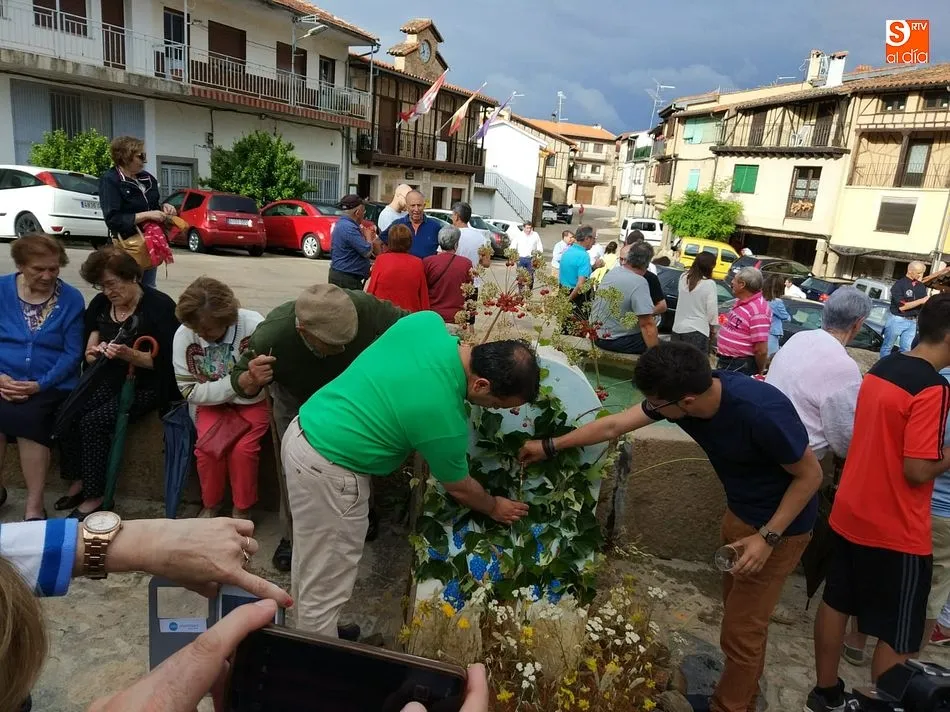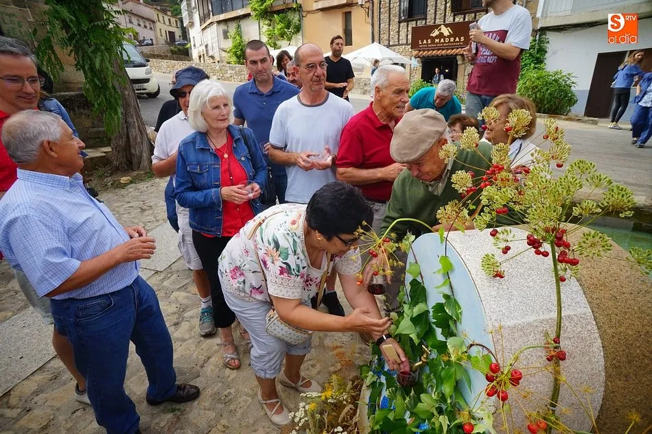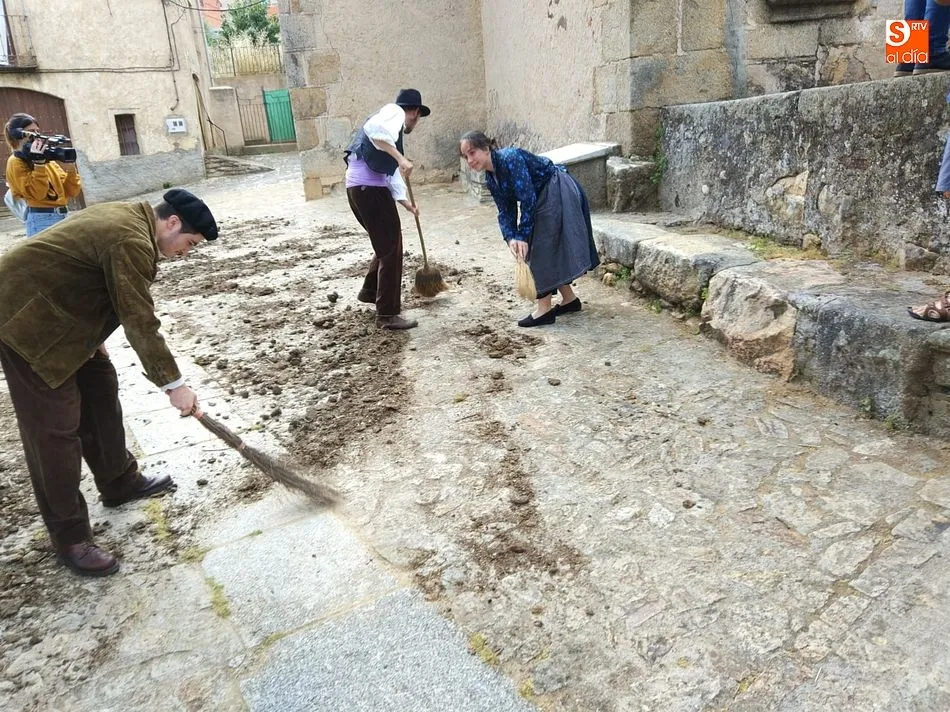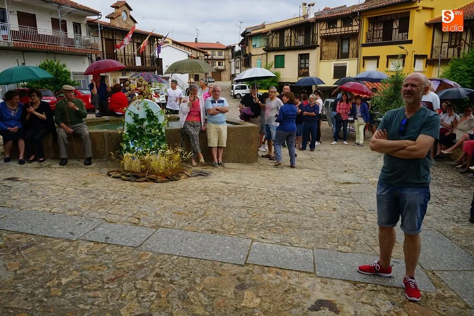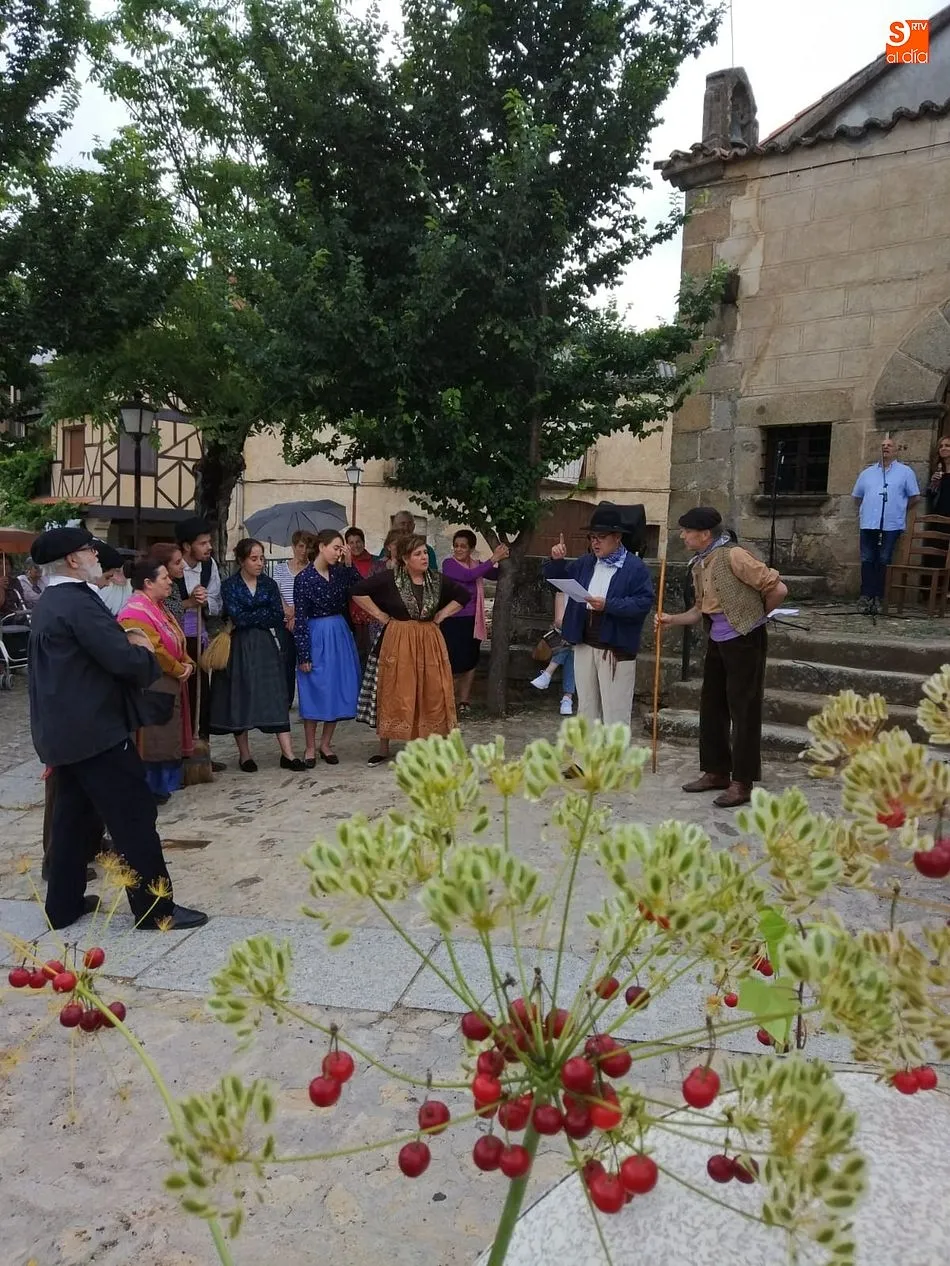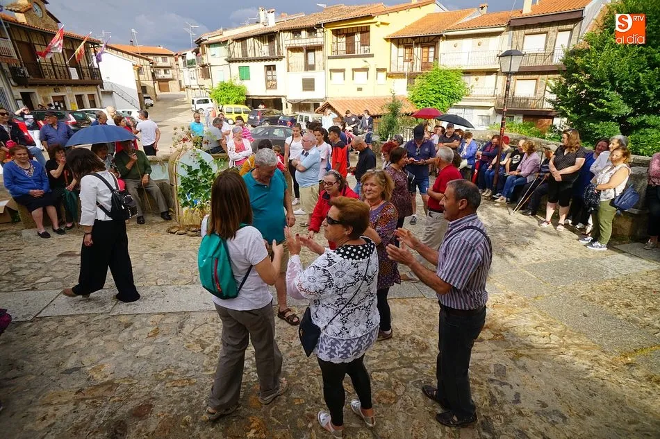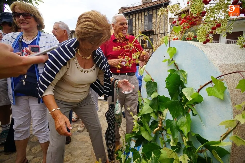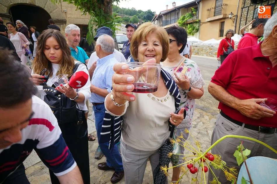 Por la tarde llegó el momento del grueso de la fiesta, con la escenificación del ?Arriendo de Calles? a cargo de Cateja Teatro. Se trata de una representación teatral de una vieja costumbre local mediante la cual los vecinos pujaban por el aprovechamiento de estiercol que se producía en la vía pública y que se usaba para abonar los cercanos viñedos y campos de cerezos. La tradición se recuperó el pasado año, y se contó con una decena de participantes ataviados con trajes típicos, no faltó la música en directo y la explicación de las viejas costumbres y leyendas, como la del ?Milagro de la Fuente del Vino. Para hacer la experiencia más realista, se instaló frente a la ermita una verdadera fuente de vino por la que pasaron todos los presentes, incluido el alcalde, Javier García, también presidente de la Ruta del Vino de la Sierra de Francia. Los presentes degustaron de nuevo los productos típicos, como vainillas, hornazos y jamón ibérico, loncheado por miembros de la Asociación de Cortadores de Jamón de Castilla y León.