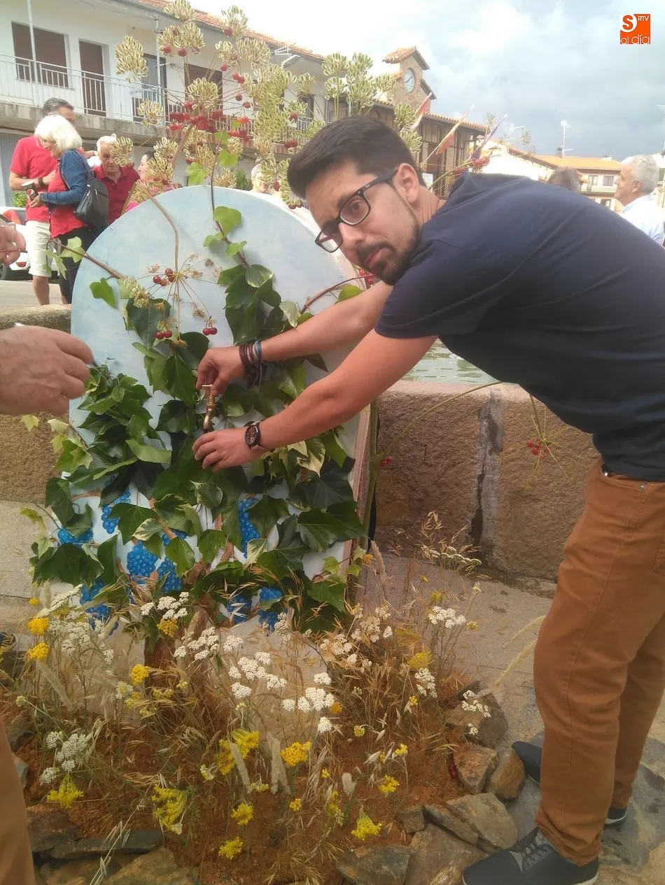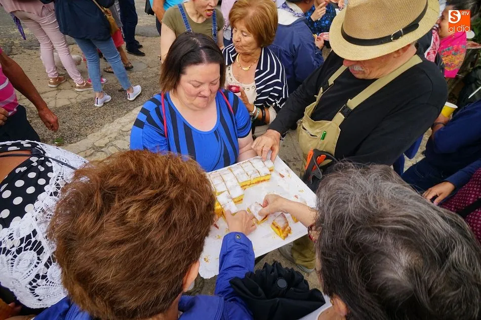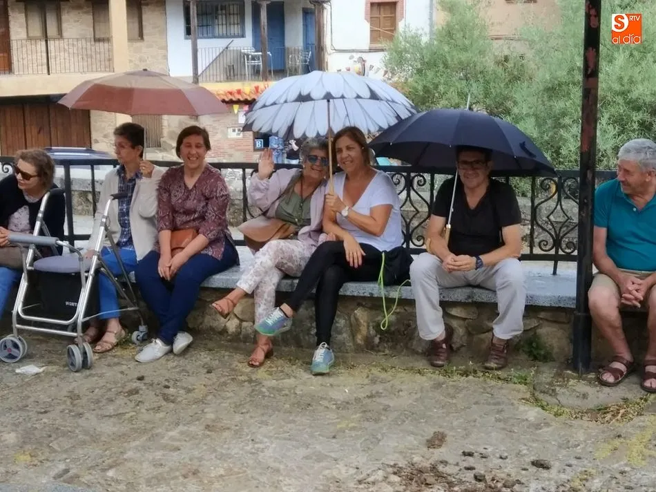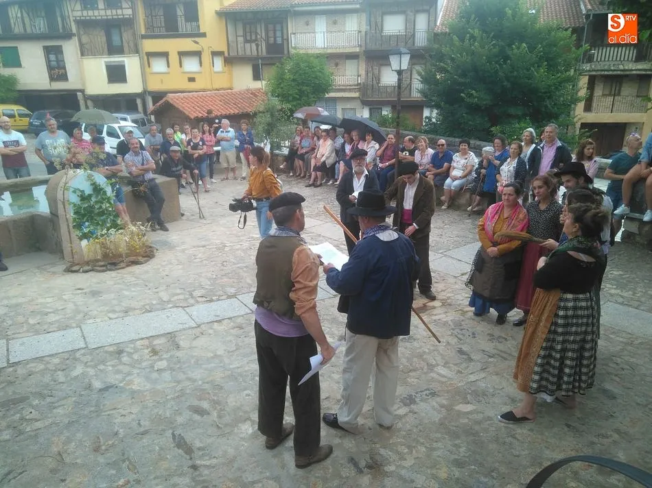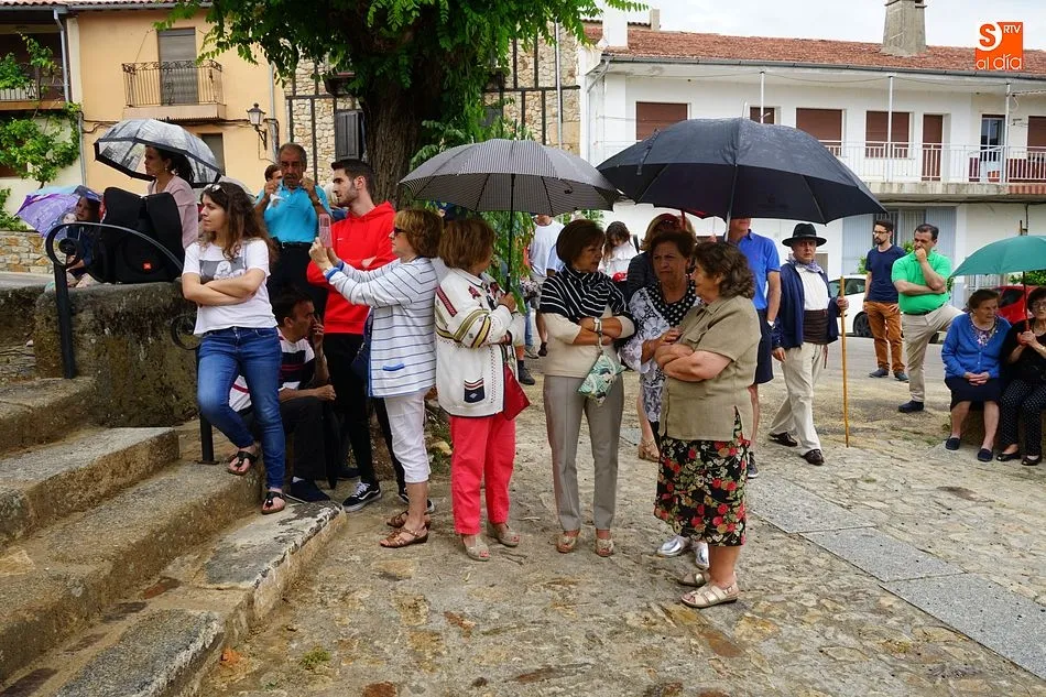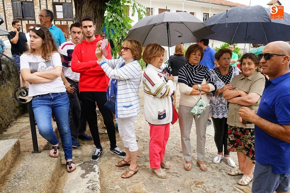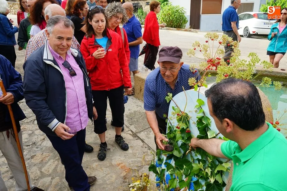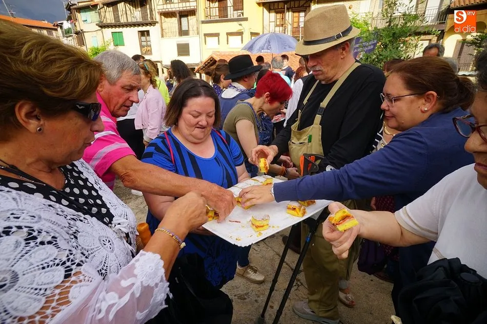 Por la tarde llegó el momento del grueso de la fiesta, con la escenificación del ?Arriendo de Calles? a cargo de Cateja Teatro. Se trata de una representación teatral de una vieja costumbre local mediante la cual los vecinos pujaban por el aprovechamiento de estiercol que se producía en la vía pública y que se usaba para abonar los cercanos viñedos y campos de cerezos. La tradición se recuperó el pasado año, y se contó con una decena de participantes ataviados con trajes típicos, no faltó la música en directo y la explicación de las viejas costumbres y leyendas, como la del ?Milagro de la Fuente del Vino. Para hacer la experiencia más realista, se instaló frente a la ermita una verdadera fuente de vino por la que pasaron todos los presentes, incluido el alcalde, Javier García, también presidente de la Ruta del Vino de la Sierra de Francia. Los presentes degustaron de nuevo los productos típicos, como vainillas, hornazos y jamón ibérico, loncheado por miembros de la Asociación de Cortadores de Jamón de Castilla y León.