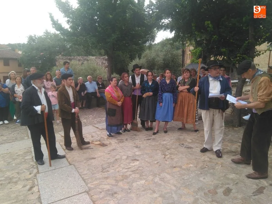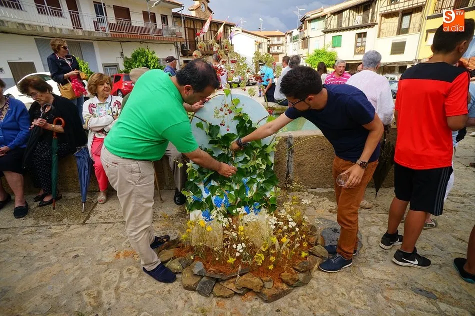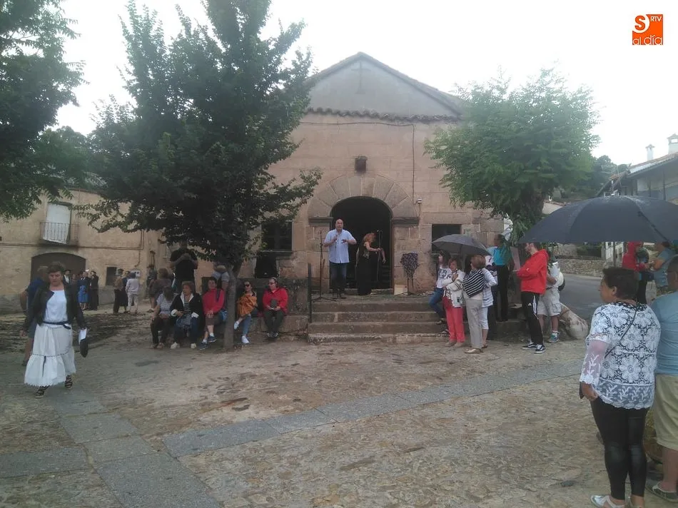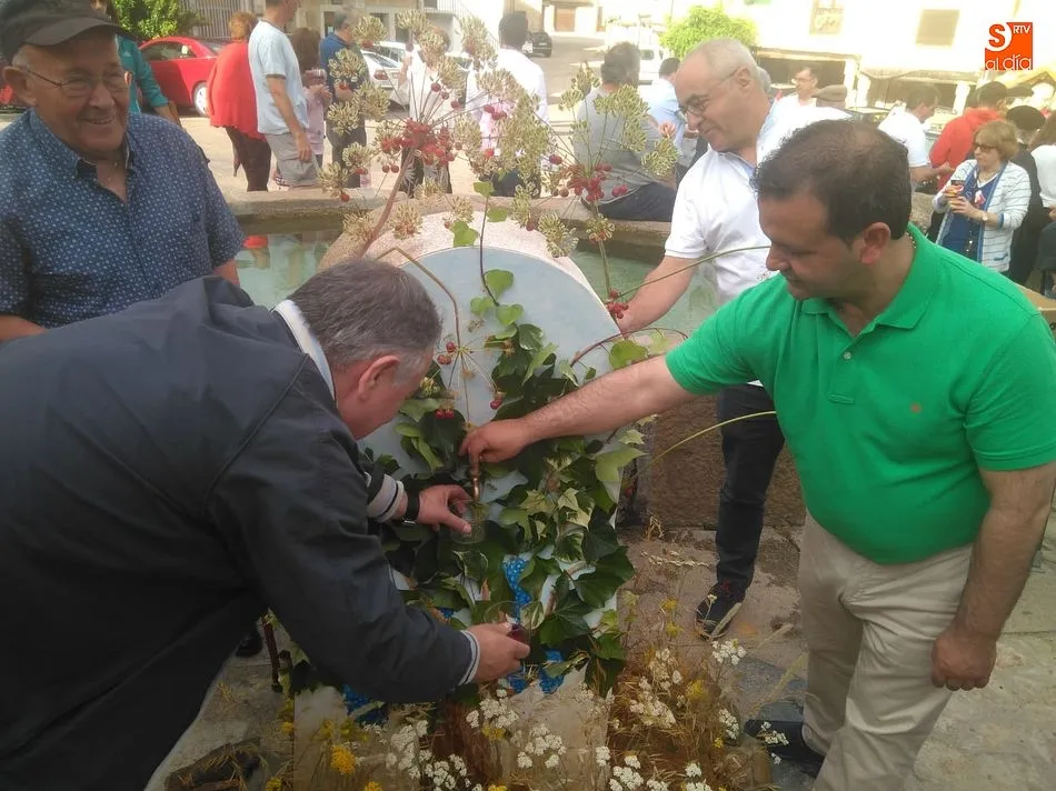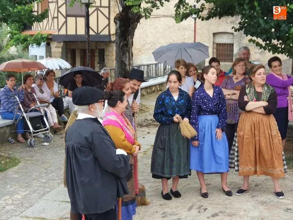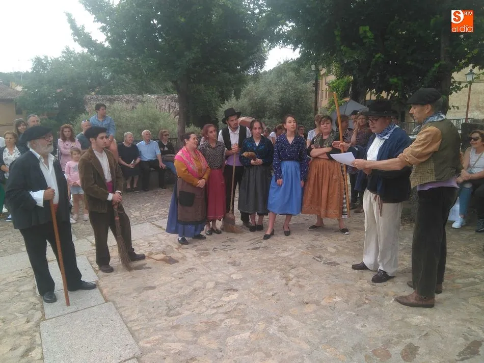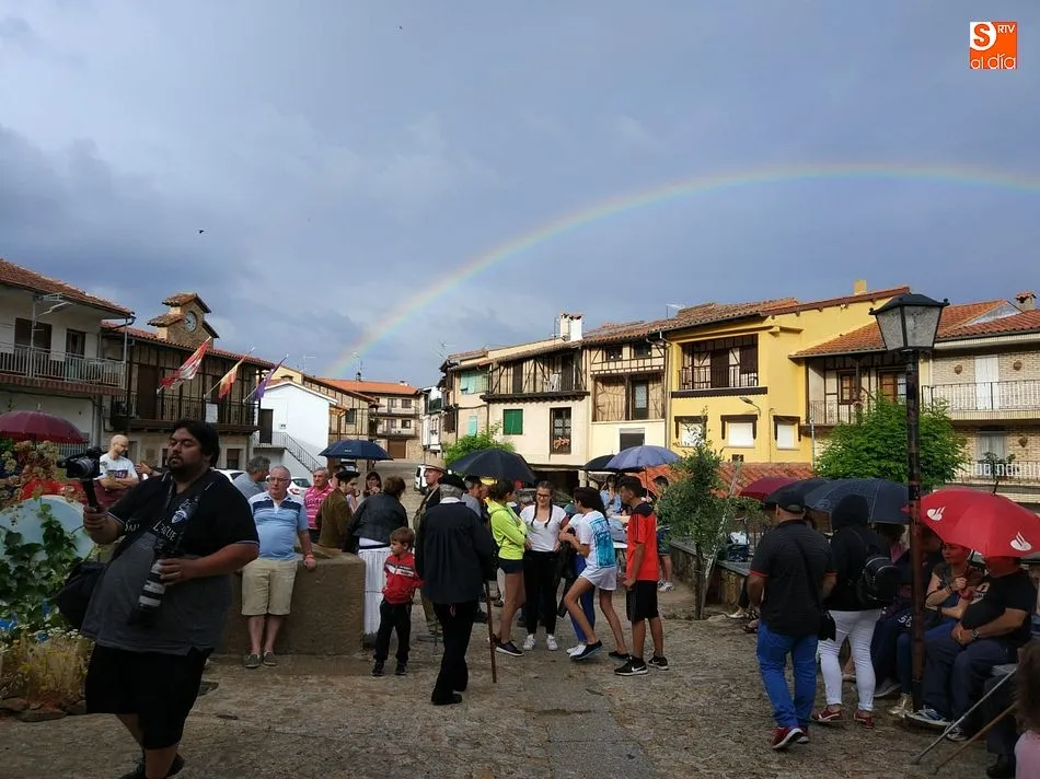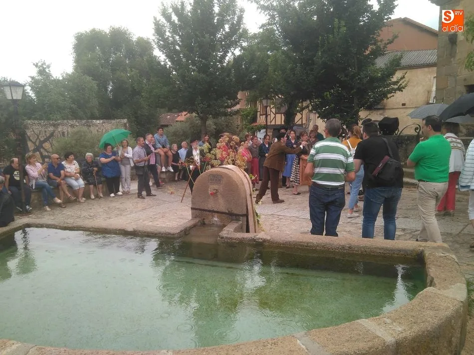 Por la tarde llegó el momento del grueso de la fiesta, con la escenificación del ?Arriendo de Calles? a cargo de Cateja Teatro. Se trata de una representación teatral de una vieja costumbre local mediante la cual los vecinos pujaban por el aprovechamiento de estiercol que se producía en la vía pública y que se usaba para abonar los cercanos viñedos y campos de cerezos. La tradición se recuperó el pasado año, y se contó con una decena de participantes ataviados con trajes típicos, no faltó la música en directo y la explicación de las viejas costumbres y leyendas, como la del ?Milagro de la Fuente del Vino. Para hacer la experiencia más realista, se instaló frente a la ermita una verdadera fuente de vino por la que pasaron todos los presentes, incluido el alcalde, Javier García, también presidente de la Ruta del Vino de la Sierra de Francia. Los presentes degustaron de nuevo los productos típicos, como vainillas, hornazos y jamón ibérico, loncheado por miembros de la Asociación de Cortadores de Jamón de Castilla y León.