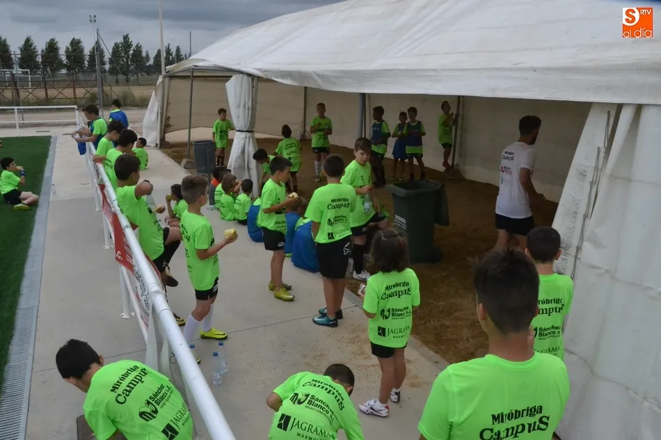 En marcha la 3ª edición del Miróbriga Campus con récord de inscritos   | Imagen 1El fútbol será protagonista destacado a lo largo de estas tres semanas del Miróbriga Campus, de una forma directa sobre el terreno de juego como ocurrió en la mañana del lunes, así como en otras vertientes. Por ejemplo, este martes se contará con la presencia de dos psicólogos de Unionistas de Salamanca, mientras que el miércoles habrá una sesión sobre nutrición deportiva y hábitos saludables a cargo de Blanca Mirat.