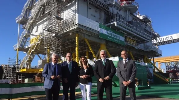 Iberdrola y Navantia han celebrado hoy el acto de entrega de la subestación eléctrica, bautizada como ?Andalucía II?, construida por Navantia íntegramente en el astillero de Puerto Real, y destinada al parque eólico marino ?East Anglia One? de Iberdrola en el Reino Unido.