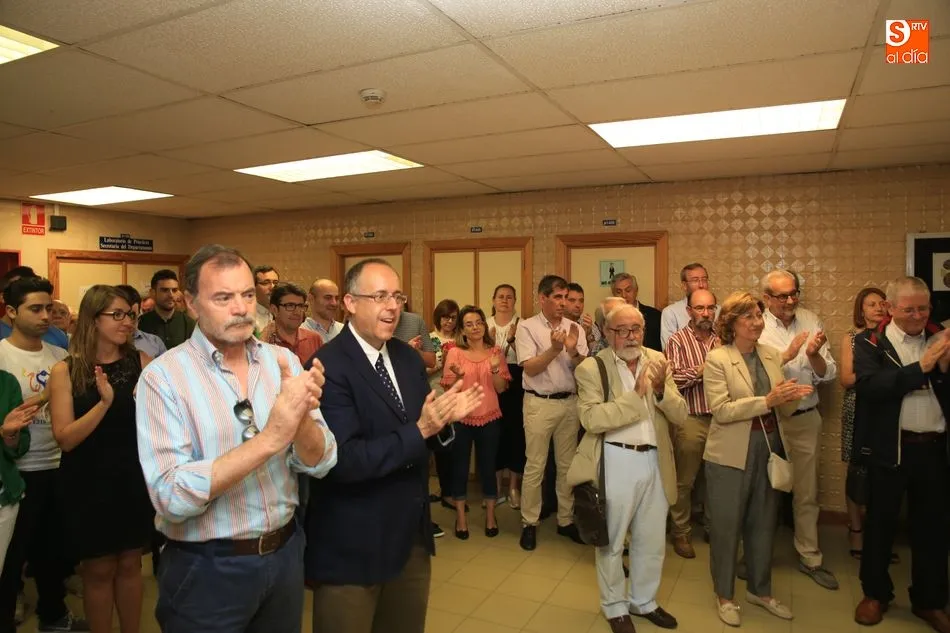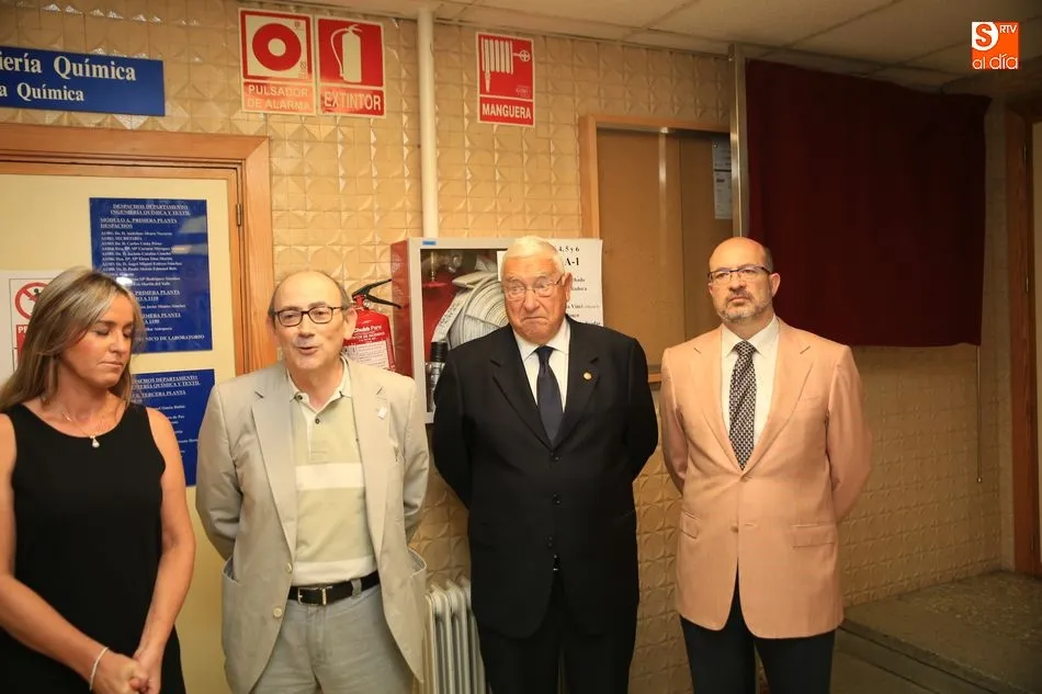 En el acto, en el que se develaba una placa conmemorativa, estuvieron presentes el homenajeado, el vicerrector de Profesorado, José María Díaz Mínguez; el decano de la Facultad de Ciencias Químicas, David Díez Martín; y la directora del Departamento de Ingeniería Química y Textil, Eva Martín del Valle.