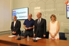 El presidente de la Diputación de Salamanca, Javier Iglesias, quien señaló la importancia de lanzar desde la institución provincial ?el mensaje de esperanza que supone Proyecto Hombre?, y el director gerente de la Fundación Alcándara Proyecto Hombre, Manuel Muiños, han renovado este miércoles el convenio de colaboración mediante el que la organización se compromete a garantizar al menos un 30% de plazas en su residencia terapéutica a usuarios que residen en los municipios de Salamanca.