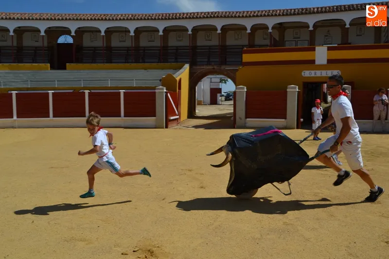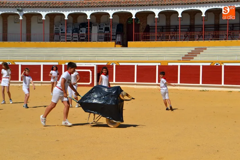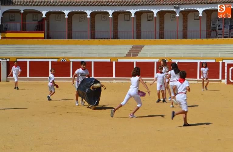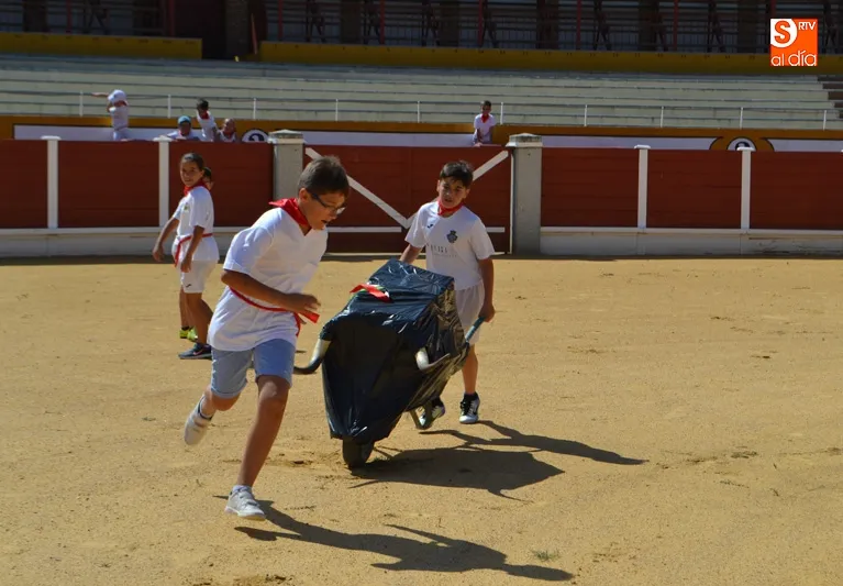 PEÑARANDA | Además de conocer las estancias del coso, las decenas de niños participantes disfrutaron con un original encierro