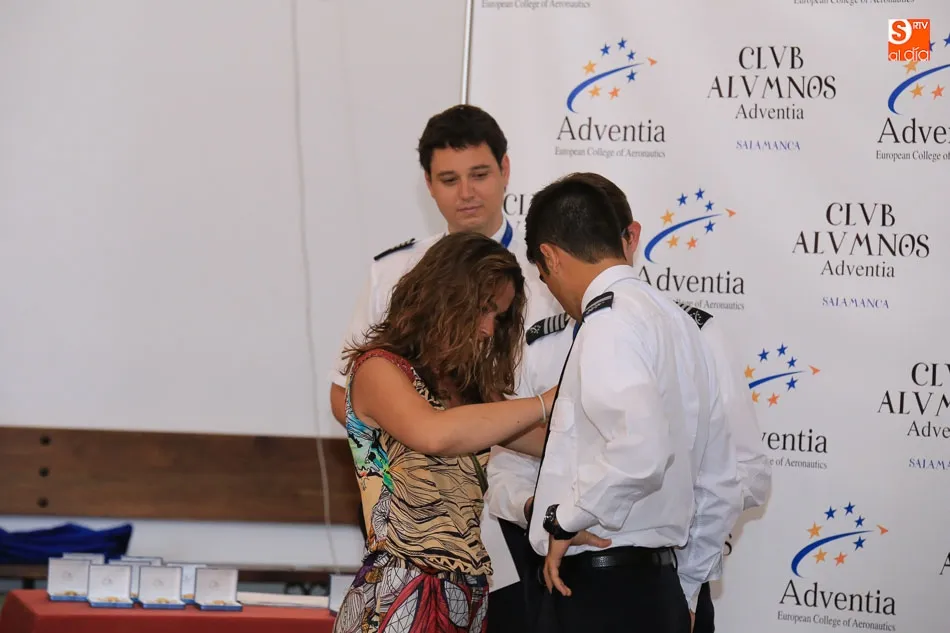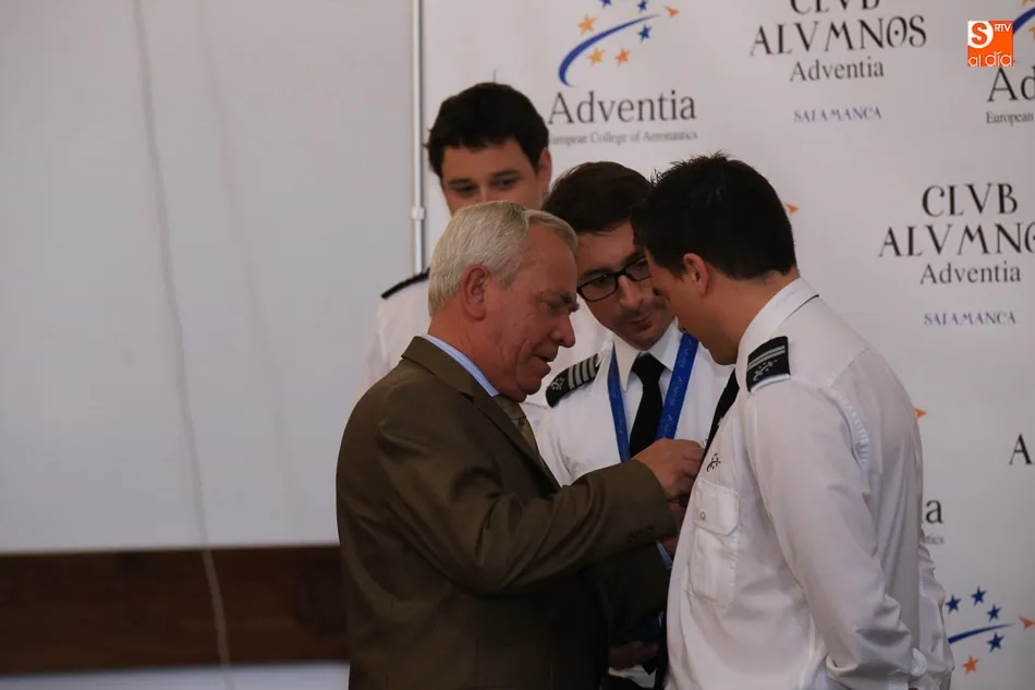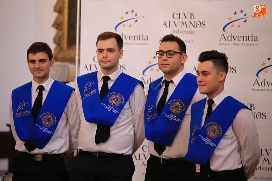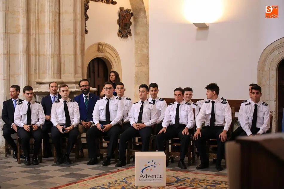 La Escuela de Pilotos Adventia, centro adscrito a la Universidad de Salamanca, ha celebrado este viernes, en el Colegio Arzobispo Fonseca, su acto de graduación y la tradicional ?Entrega de Alas?, como símbolo de la obtención de la licencia de piloto