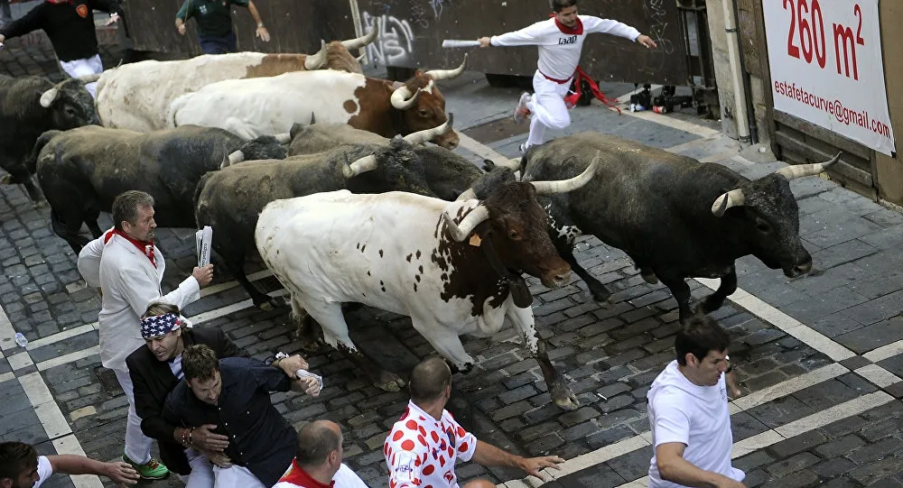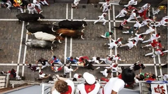 Es a todas luces, la ciudad en fiestas más popular de España y que sin duda todos los aficionados la sienten, no sin cierta incertidumbre y como siempre repartidas emociones. Encierros tumultuosos, con cientos de corredores en los que destaca el colorido de su indumentaria, con un periódico en la mano, que representa más a un amuleto, que a un señuelo de muleta como única defensa. Así día tras día, sin importarles de quien son los toros, cual el peligroso rezagado, o cual lleve en sus pitones la tragedia; aquella que en varias ocasiones ocurrió, tiñendo de luto la proeza de una carrera, que no anuncia el final. Actualmente, la aglomeración es uno de los principales problemas del encierro y acrecienta la peligrosidad de la carrera, en la que los mozos, no deberán aguantar más de 50 metros delante de las astas, pero esa es la cuestión, bien sabida por aquellos que son corredores de año tras año, y que están al tanto de los peligros que se suscitan en el recorrido. Sin embargo, dentro de la masificación muchos advenedizos y turistas se lanzan a una inconsciente aventura, así como al entorpecimiento de los buenos corredores, restándole la belleza y emoción que siempre mantuvo vivo el encierro. Todos los tramos del recorrido, están vigilados por un amplio dispositivo de seguridad y atención medica. No obstante el peligroso encierro ha hecho que desde 1924 se haya registrado un total de 15 muertos, - los heridos cientos claro-.Seguro que se encomendaron al cántico.-?A San Fermín pedimos, por ser nuestro patrón, nos guíe en el encierro dándonos su bendición?.