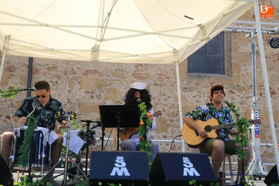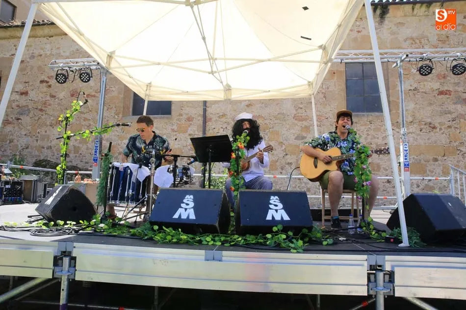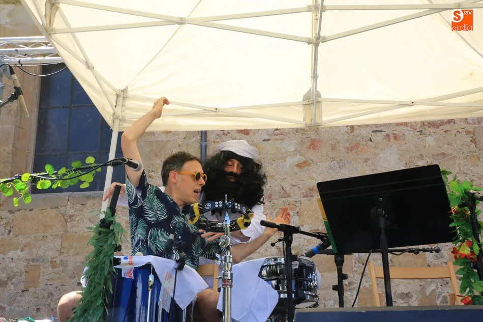 Este sábado, con una sesión matinal, comenzaba la programación musical en los Jardines de Santo Domingo de la Cruz. Un público familar disfruta el concierto de The Pinker Tones, un grupo musical reconocido internacionalmente que mezcla varios estilos, como música electrónica, pop, funk, soul, funk, bossa nova y swing.