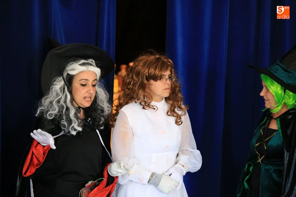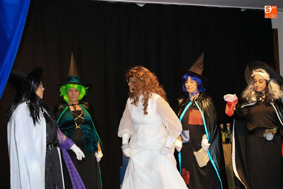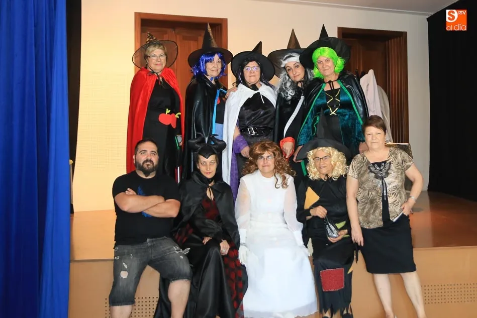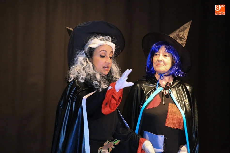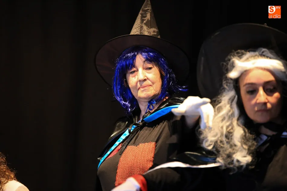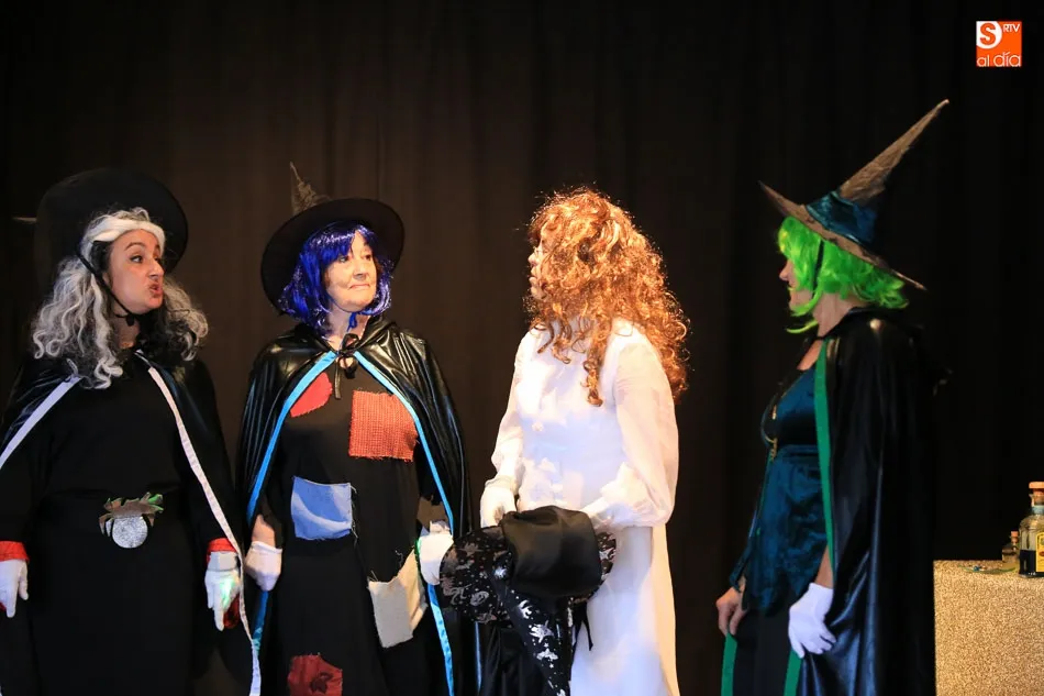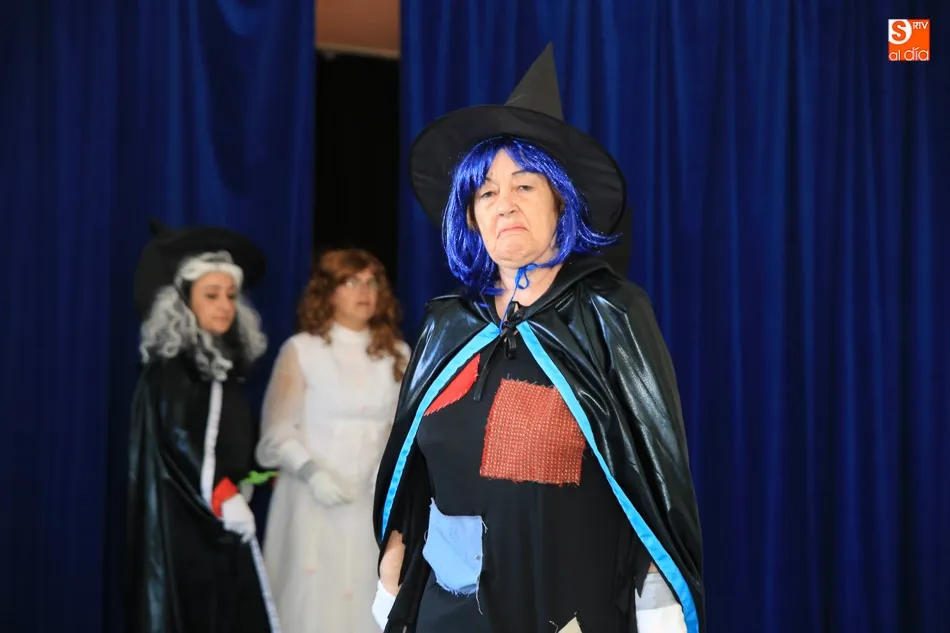 Conviencia, aprendizajes compartidos y mil anécdotas, encima del escenario y entre bastidores, porque ellas también son las costureras que hilvanan, cosen y arreglan los trajes de los personajes de las obras de teatro que han venido representando, así como del decorado. Tampoco han faltado los merecidos reconocimientos, desde los aplausos del público a varios premios. Ensayan cada semana en el Centro Cívico de Tejares, espacio en el que representarán ?Aires de Bruja?, la obra que han estado preparando este año. Con Cristina, Elo, Pepi, Juani, Fabi, Rosi, Delfi, Mari, Goyi y Elo R. nos subimos a escena. Ya caracterizadas para el ensayo, este grupo de mujeres contagia al público lo mejor de hacer teatro por placer y divertirse haciendo teatro.