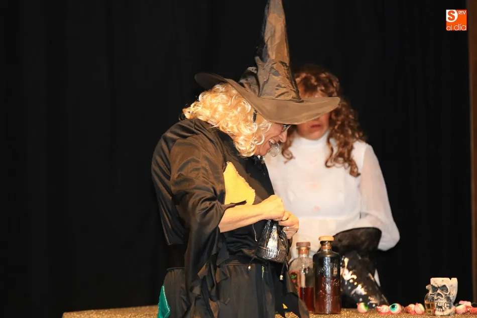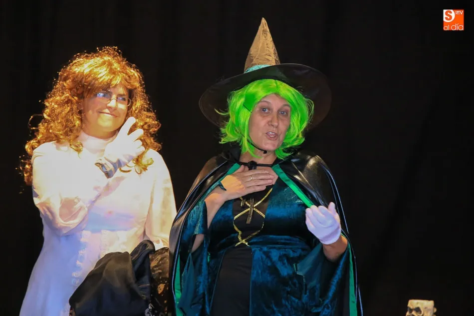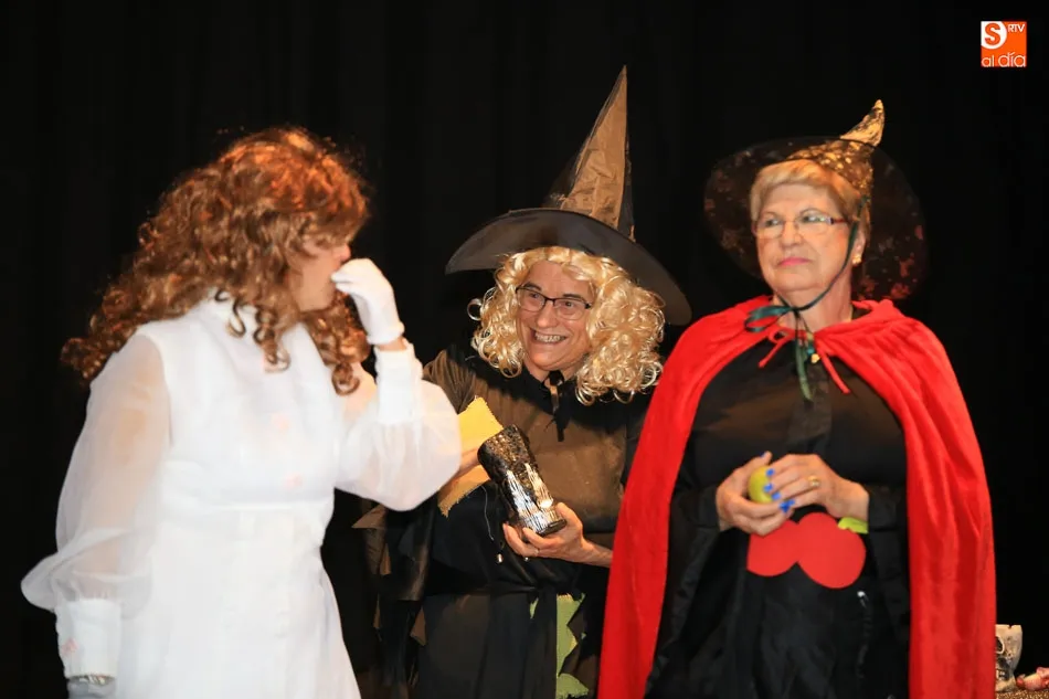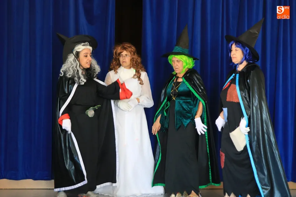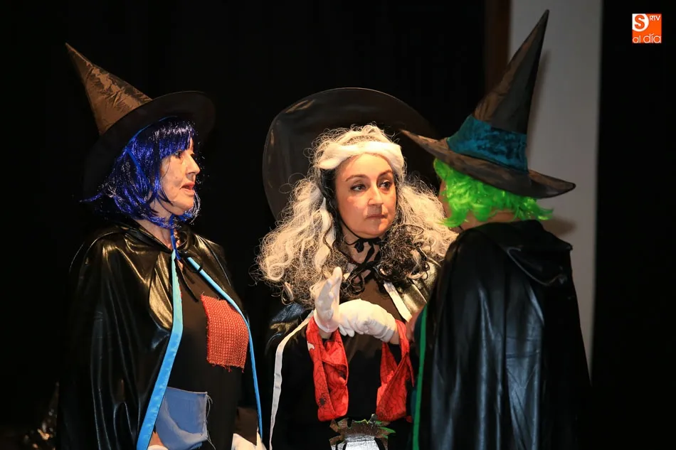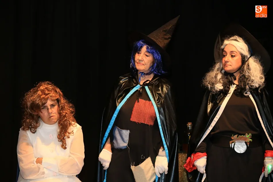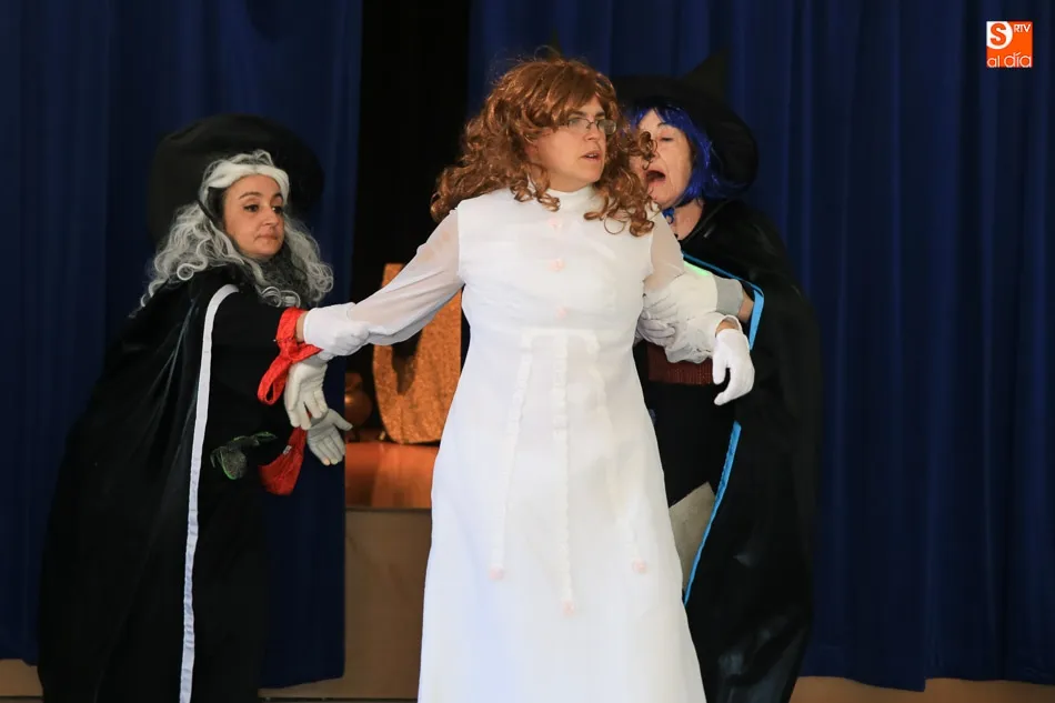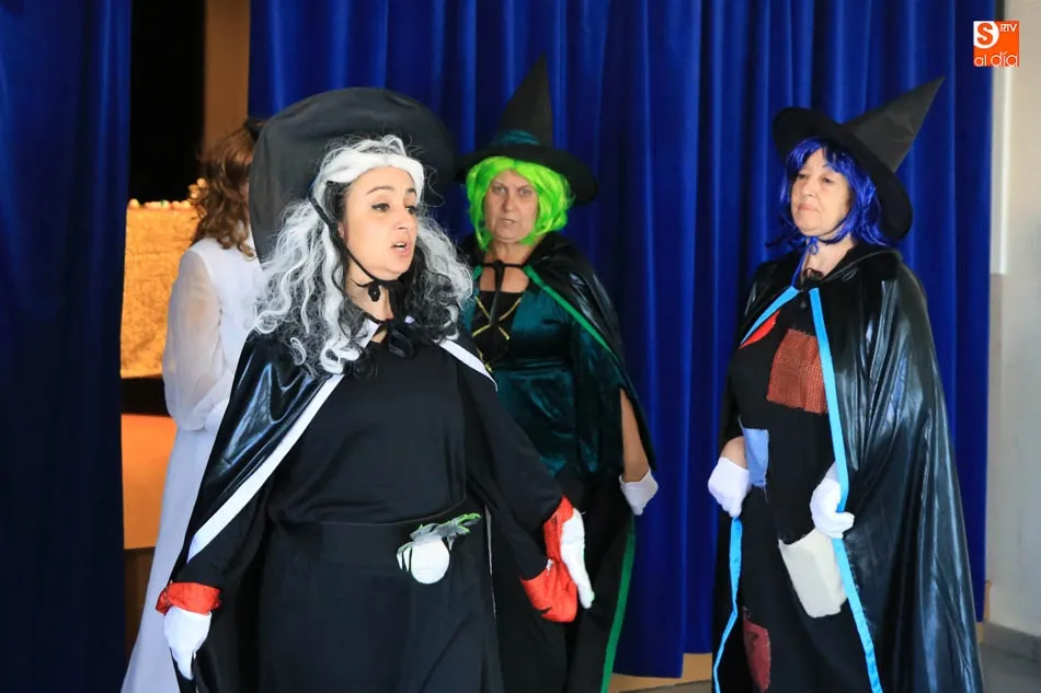 Conviencia, aprendizajes compartidos y mil anécdotas, encima del escenario y entre bastidores, porque ellas también son las costureras que hilvanan, cosen y arreglan los trajes de los personajes de las obras de teatro que han venido representando, así como del decorado. Tampoco han faltado los merecidos reconocimientos, desde los aplausos del público a varios premios. Ensayan cada semana en el Centro Cívico de Tejares, espacio en el que representarán ?Aires de Bruja?, la obra que han estado preparando este año. Con Cristina, Elo, Pepi, Juani, Fabi, Rosi, Delfi, Mari, Goyi y Elo R. nos subimos a escena. Ya caracterizadas para el ensayo, este grupo de mujeres contagia al público lo mejor de hacer teatro por placer y divertirse haciendo teatro.