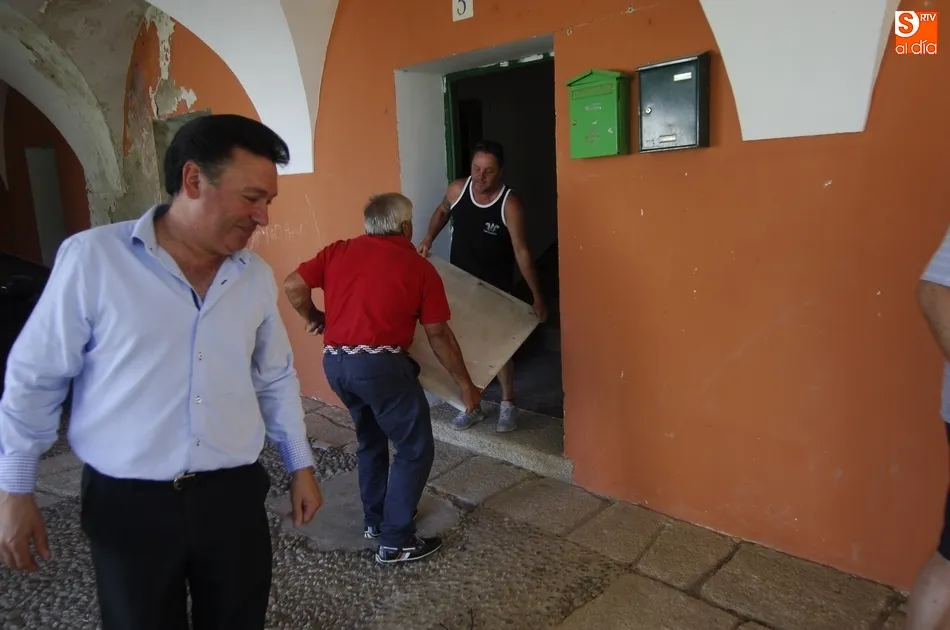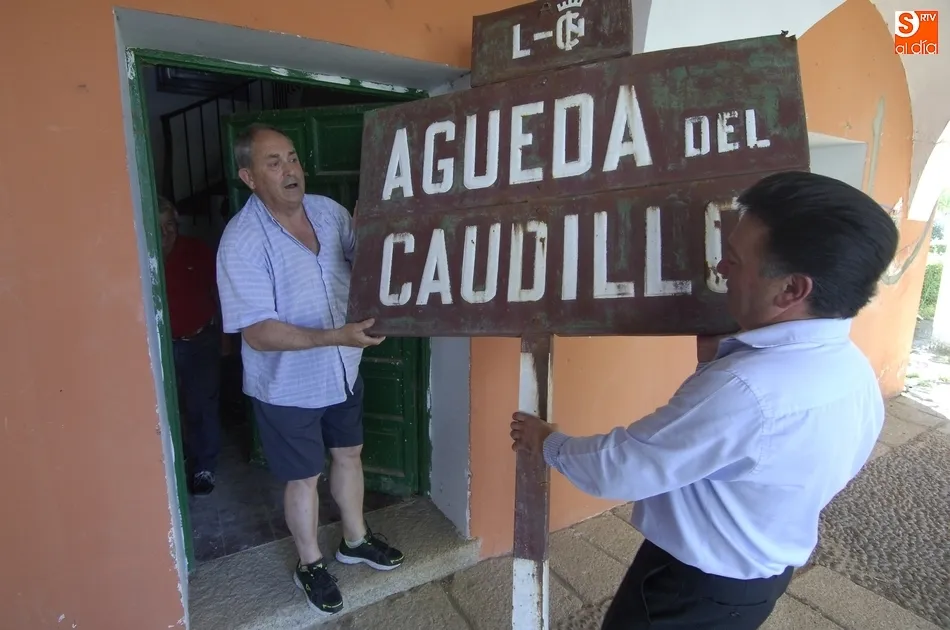 De momento, en la tarde del domingo sacaron del ?almacén? varios de los elementos retirados en cumplimiento de la Ley de Memoria Histórica, como la señal que había a la entrada del agregado con el nombre de ?Águeda del Caudillo?, o la placa que estaba situada en la plaza donde se hacía referencia a la inauguración de Águeda. Durante la grabación del reportaje, el equipo de Telecinco habló también con varios vecinos del agregado.