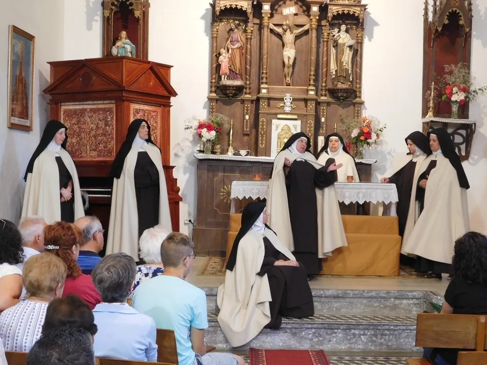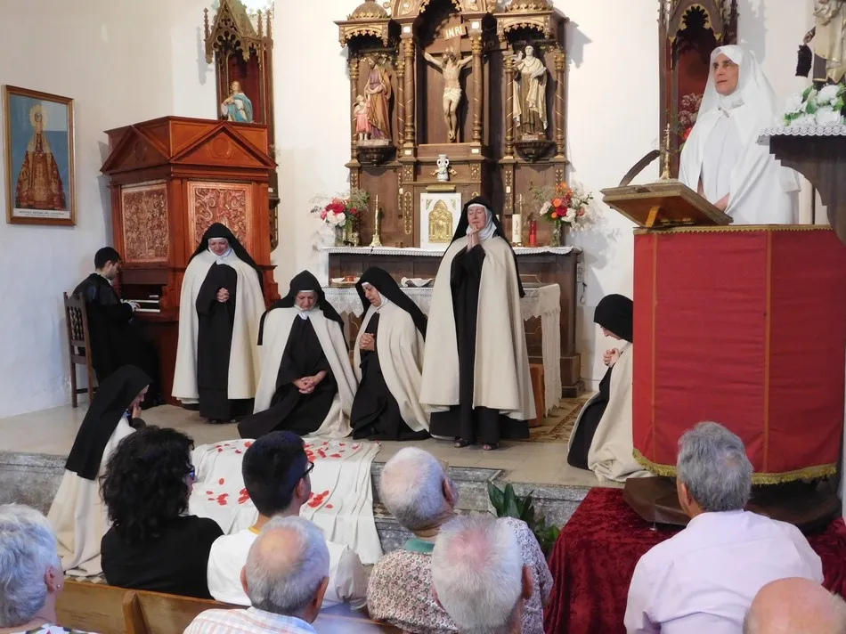 Desde la primera sandalia que se ajusta a un pie cansado, pasando por todas las bellas escenas de la obra llena de matices y emociones, que envuelven los acordes renacentistas de un órgano que acompaña las canciones de toda la representación, hasta que unos pétalos de rosa caen encima de una capa, los espectadores de Puebla de san Medel se entregaron a lo visto y oído, tan desconocido de lo anterior, o simplemente novedoso, que puso luz de atardecer a una iglesia que también guardará entre sus muros este encuentro con Teresa, como tantos otros que sus habitantes han vivido allí.
