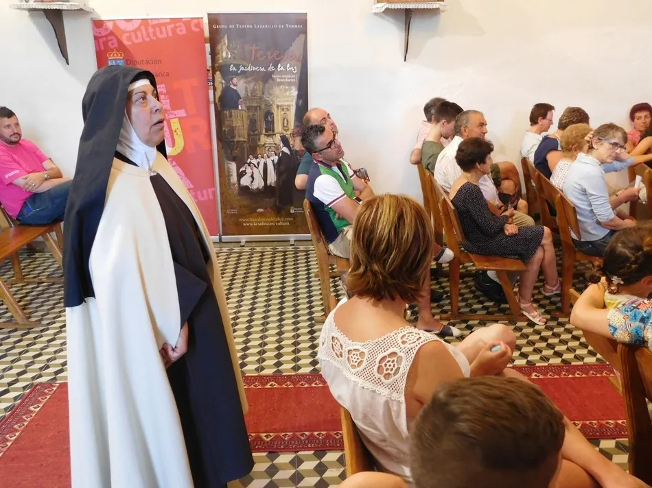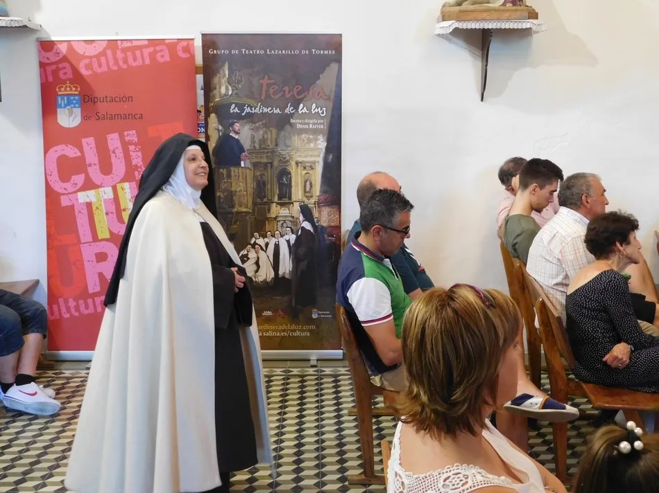 Para dar a conocer a esta mujer el grupo de teatro ?Lazarillo de Tormes? ha viajado también por infinidad de caminos con una obra que nos la presenta desde este punto de vista tan humano, y que explica la estela indeleble que ha dejado como ese aroma que da constancia de la presencia de alguien. Teresa, la jardinera de la luz es el gran trabajo que estos actores presentan para descubrir a una persona que subida en los altares a lo largo de siglos, se acerca ahora a nosotros con la naturalidad con la que vivió, descubriendo así todas las facetas de su personalidad. Es el paseo por una época restrictiva donde alguien como Teresa, tan sólo una mujer decidió tomar las riendas de su vida y cambiar la de otros con la fuerza y seguridad que da la convicción de caminar con la verdad. Y los grandes hombres cayeron a sus pies, pero muchos de sus esbirros buscaron su destrucción. No sólo la frescura del guión que Teresa, la jardinera de la luz ofrece, sino la calidad interpretativa de sus actores, consiguen transportar a los espectadores al momento exacto en que se producen los acontecimientos narrados. Y los de Puebla de san Medel no fueron menos, confirmando así la buena fama que precedía al montaje, con el que la Diputación ha sabido hacer una magnífica oferta para llevarlo a cualquier municipio salmantino.