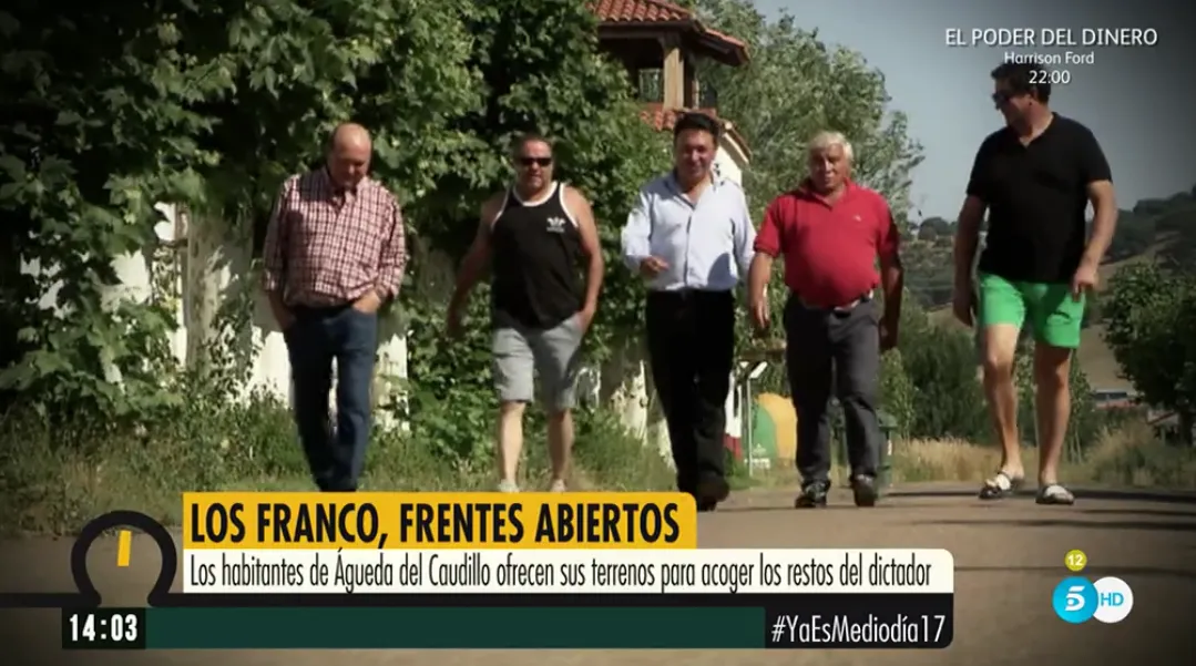 En el reportaje emitido a la hora de comer del lunes, Germán Florindo confirma que siguen estando dispuestos a acoger los restos del dictador, planteando que lo podrían enterrar debajo de la cruz que hay en la localidad, que es ?una réplica de lo del Escorial, por lo que nos serviría como referencia del mausoleo? [en referencia al Valle de los Caídos donde Franco lleva enterrado cerca de 43 años].