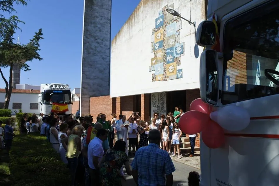 En esta ocasión ha asistido el opispo de la Diócesis de Salamanca, Carlos López, junto al sacerdote de la localidad, Manuel Muiños, quienes han bendecido los transportes y camiones.