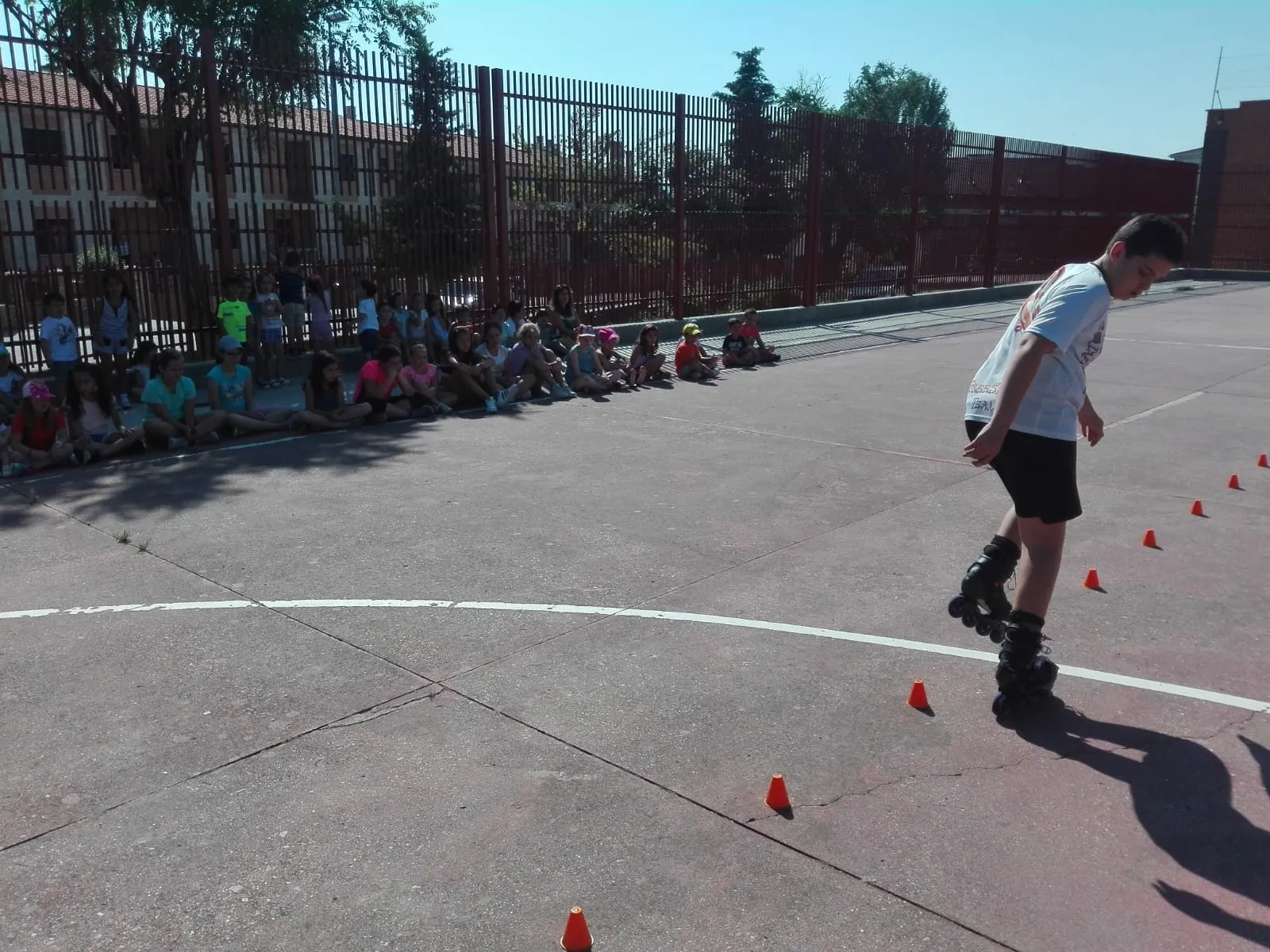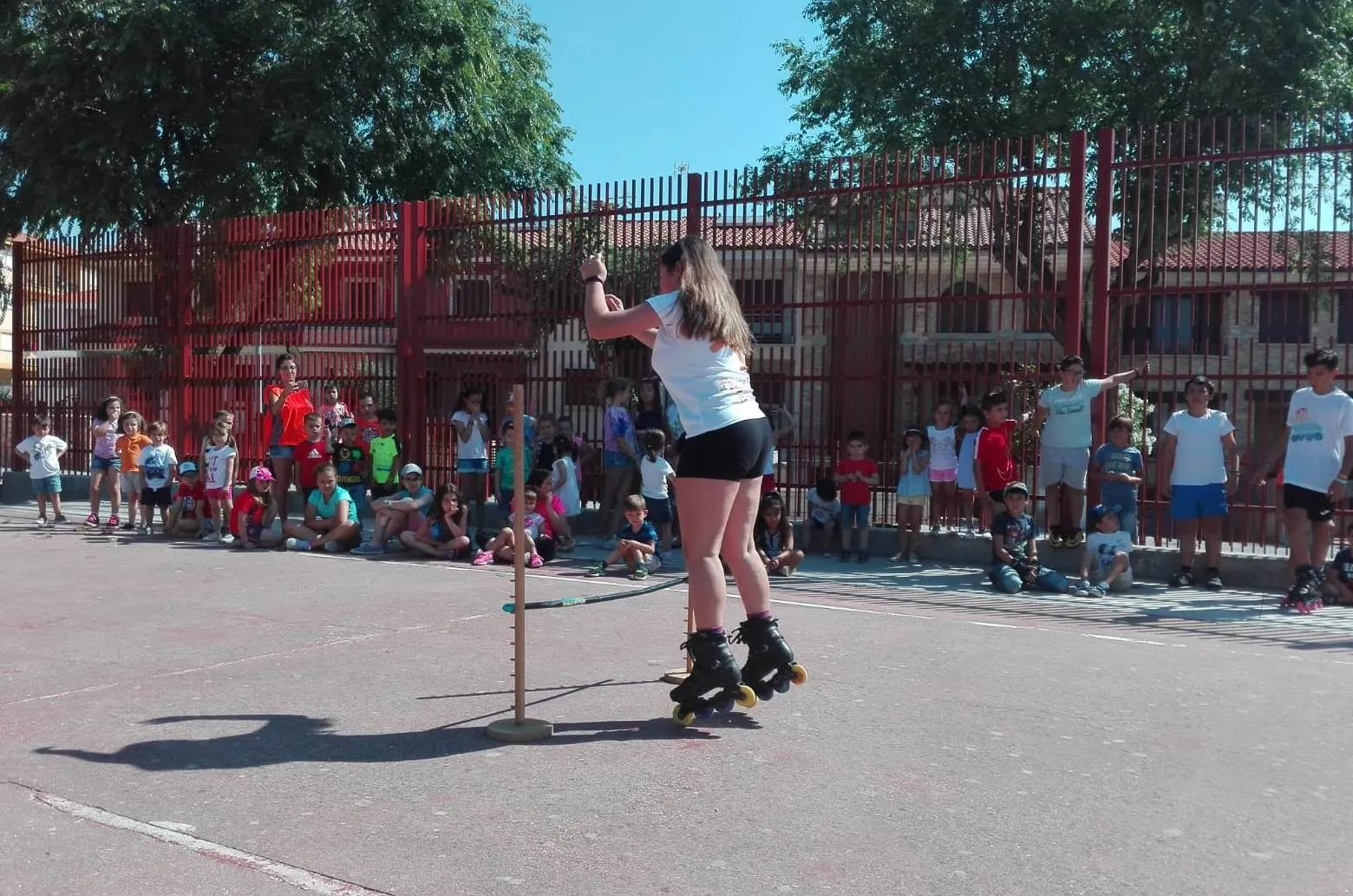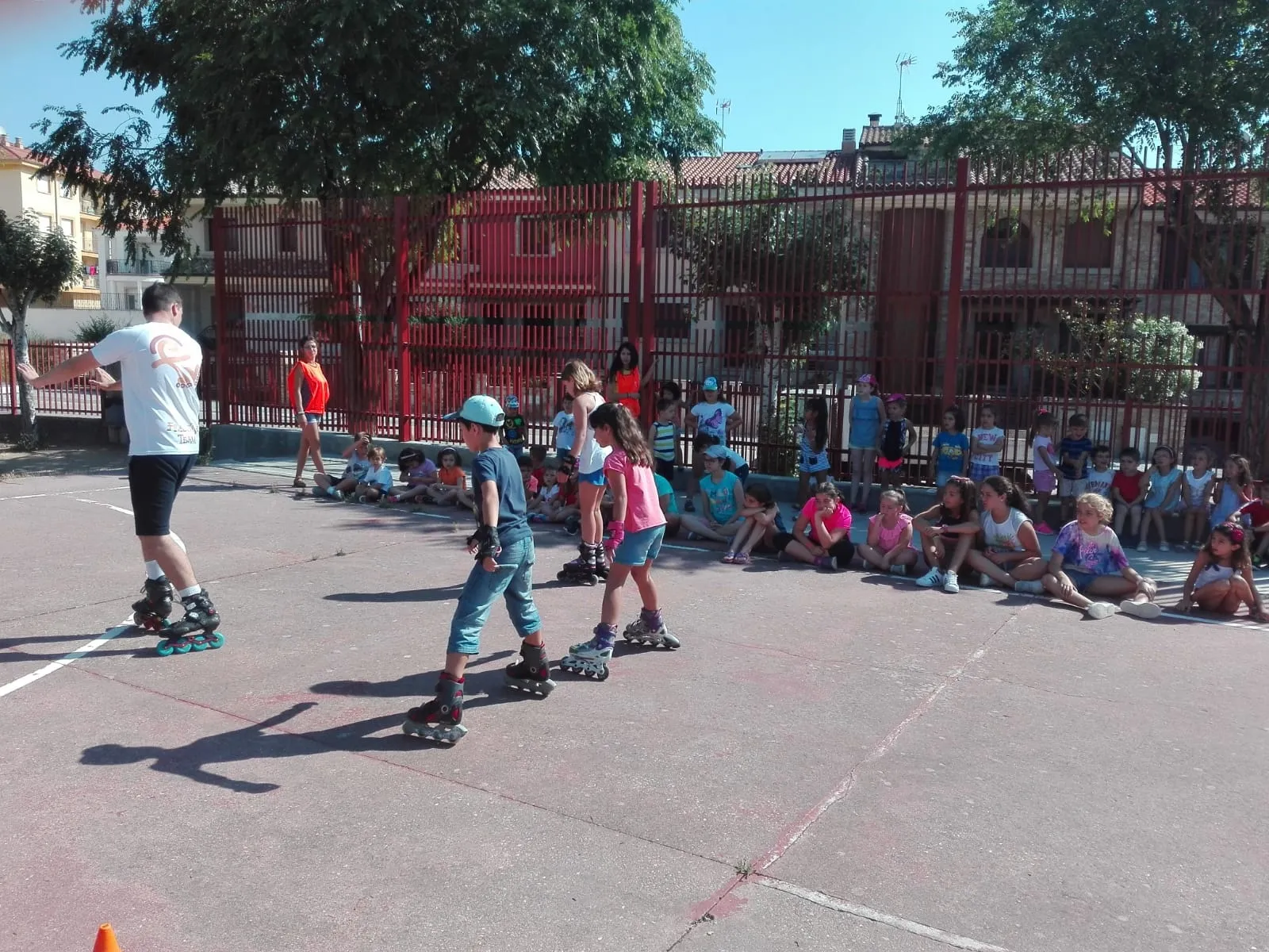 El Colegio Miróbriga recibió en la mañana del martes a seis jóvenes integrantes del Club Farinatos Roleros, que se acercaron hasta el centro para ofrecer una exhibición a los niños del programa de conciliación de la vida laboral y familiar Conciliamos en Verano.