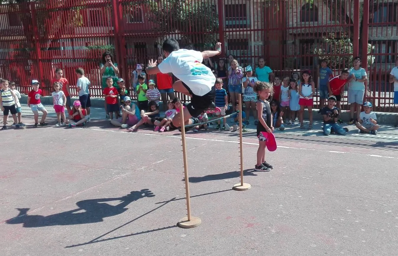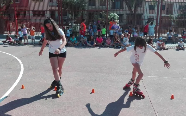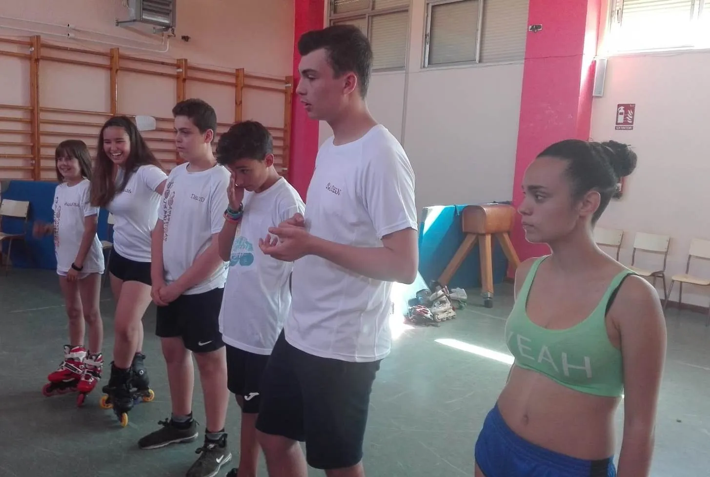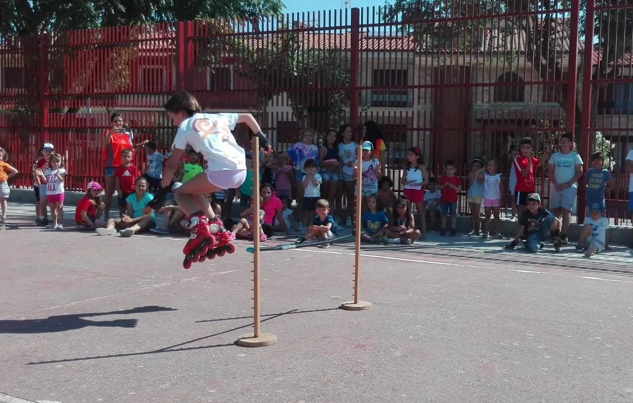 El Colegio Miróbriga recibió en la mañana del martes a seis jóvenes integrantes del Club Farinatos Roleros, que se acercaron hasta el centro para ofrecer una exhibición a los niños del programa de conciliación de la vida laboral y familiar Conciliamos en Verano.
