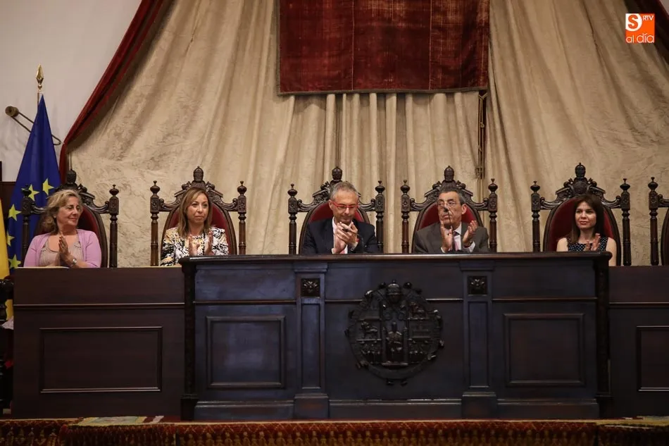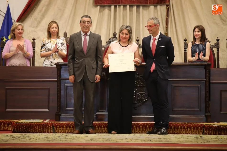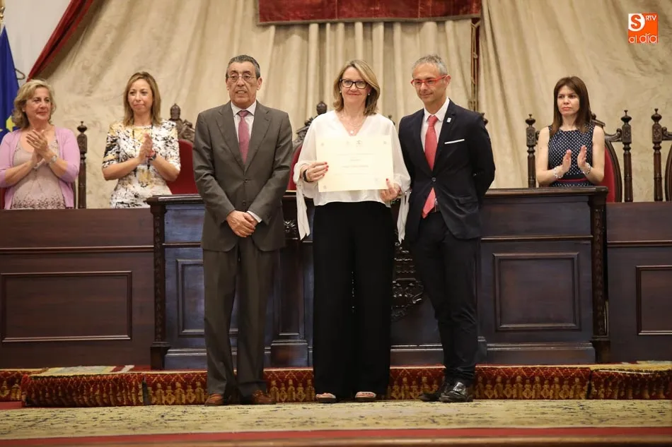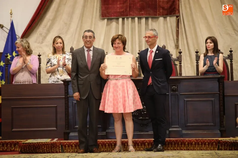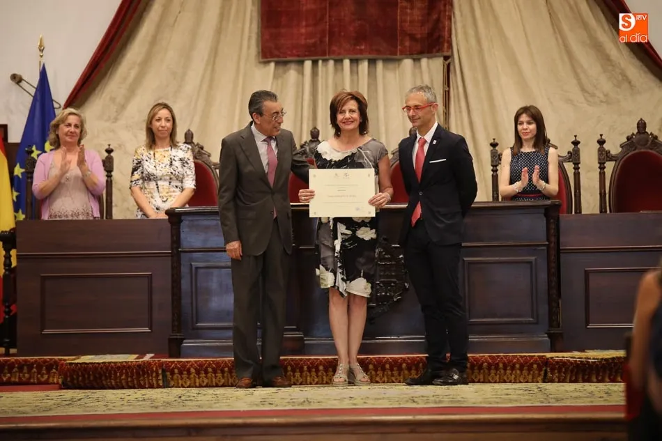 Han hecho entrega de las condecoraciones el rector de la Universidad de Salamanca, Ricardo Rivero; las vicerrectoras de Docencia y Evaluación de la Calidad, y de Investigación y Transferencia, Izaskun Álvarez y Susana Pérez; el delegado territorial de la Junta de Castilla y León en Salamanca, Bienvenido Mena; y los directores provinciales de Educación en Salamanca y Ávila, Ángel Morín Ramos y Santiago Rodríguez.