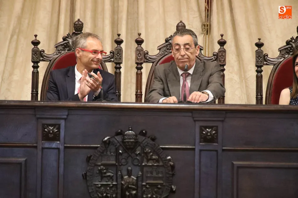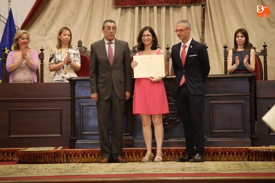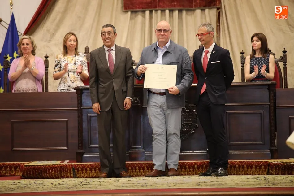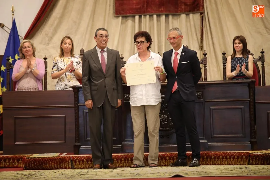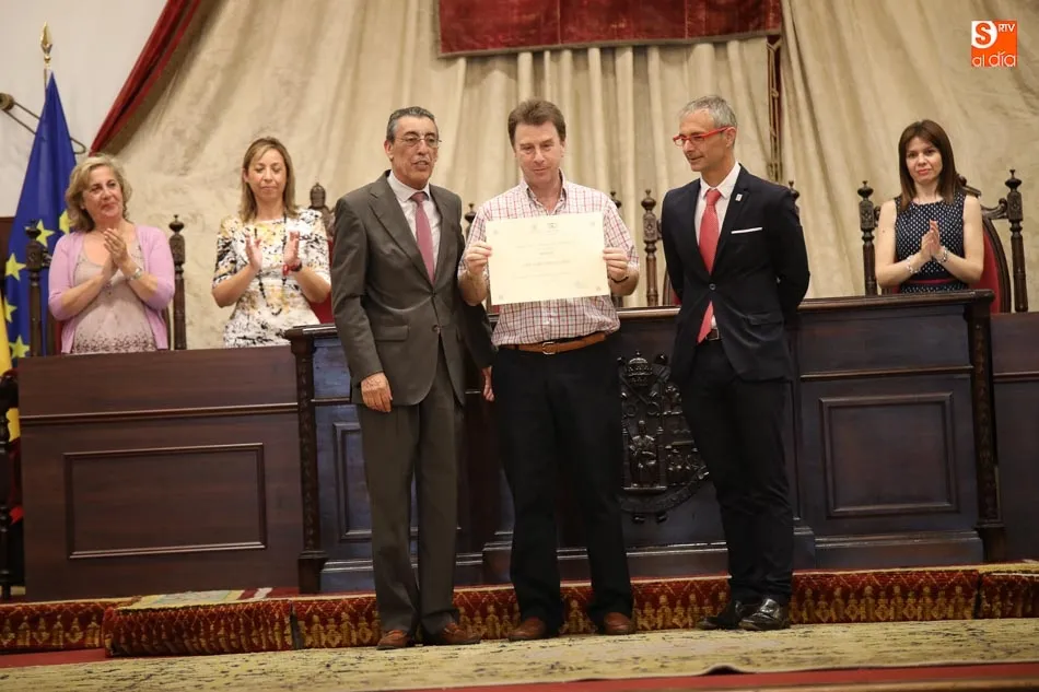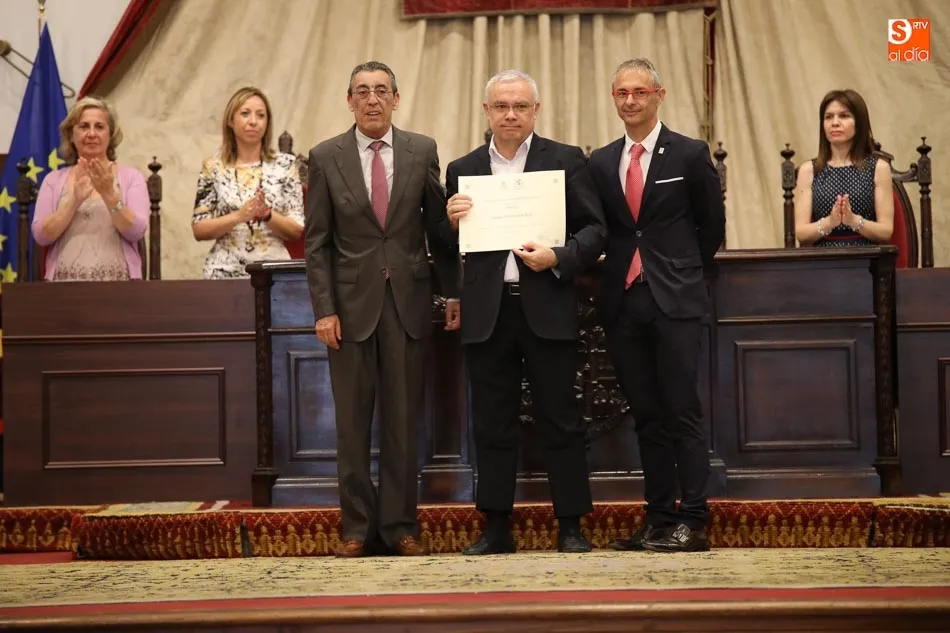 Han hecho entrega de las condecoraciones el rector de la Universidad de Salamanca, Ricardo Rivero; las vicerrectoras de Docencia y Evaluación de la Calidad, y de Investigación y Transferencia, Izaskun Álvarez y Susana Pérez; el delegado territorial de la Junta de Castilla y León en Salamanca, Bienvenido Mena; y los directores provinciales de Educación en Salamanca y Ávila, Ángel Morín Ramos y Santiago Rodríguez.