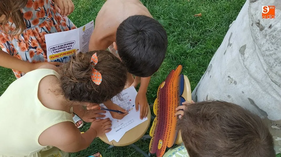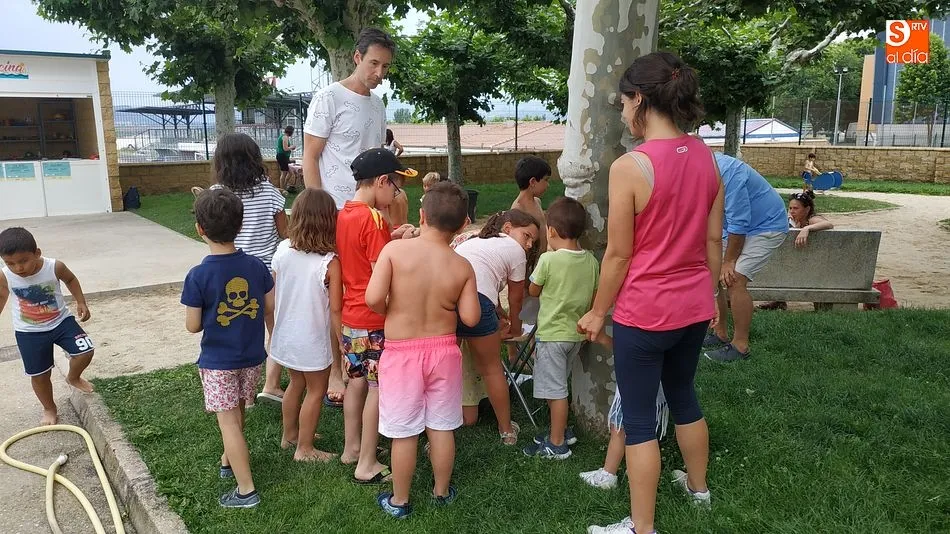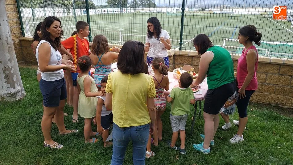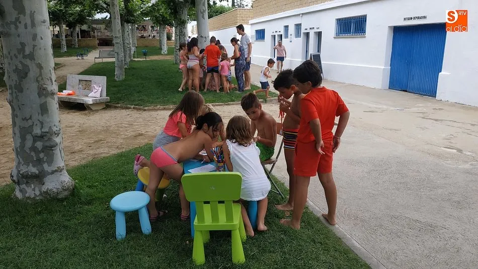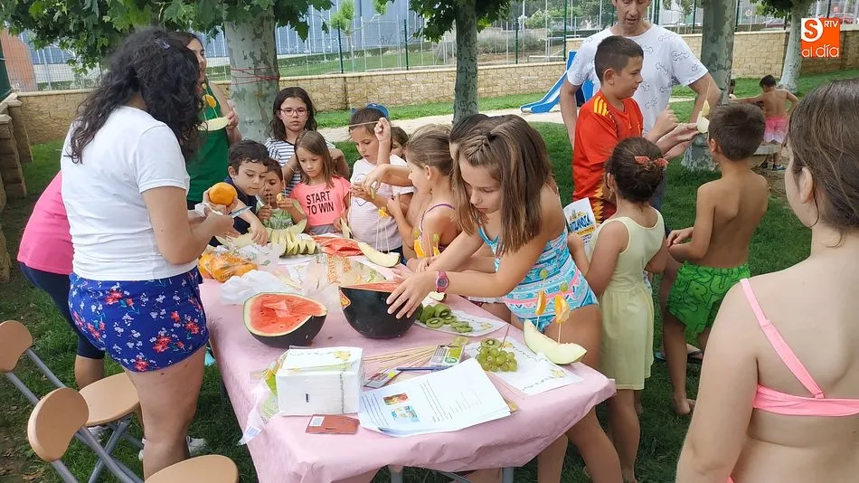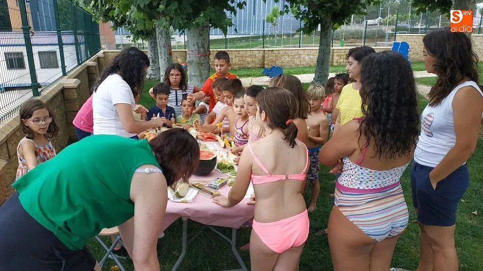 La piscina municipal de Guijuelo ha acogido esta tarde la primera actividad del programa ?Chanclas y Crema? destinado a niños de 1º a 6º de Primaria. Una treintena de pequeños ha participado en la actividad que ha consistido en una serie de divertidas pruebas que tenían que ir superando para conseguir un tesoro, al tiempo que disfrutaban de diferentes piezas de fruta y aprendían detalles sobre alimentación saludable.