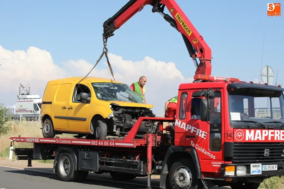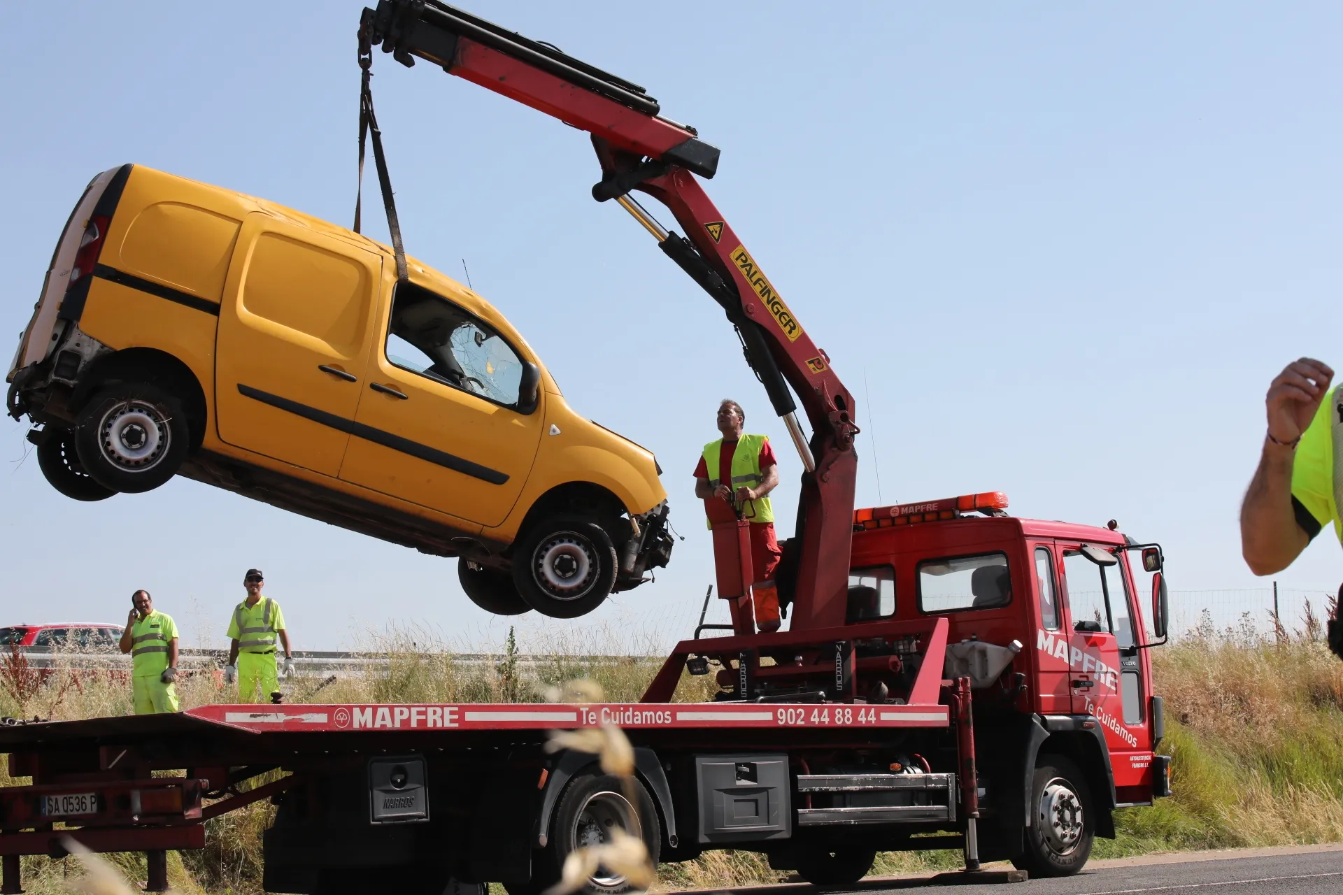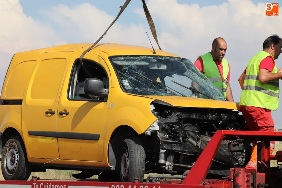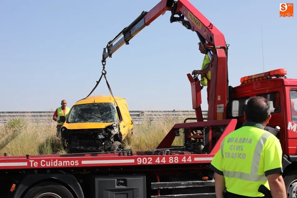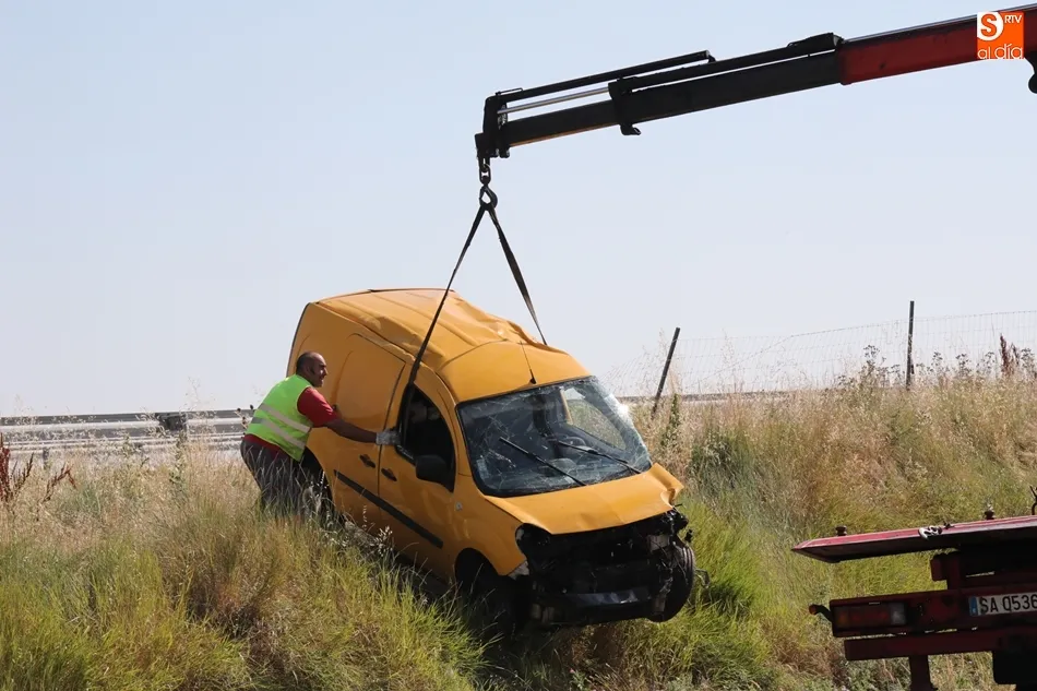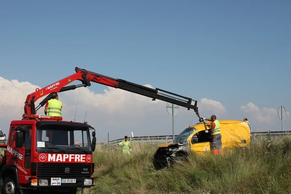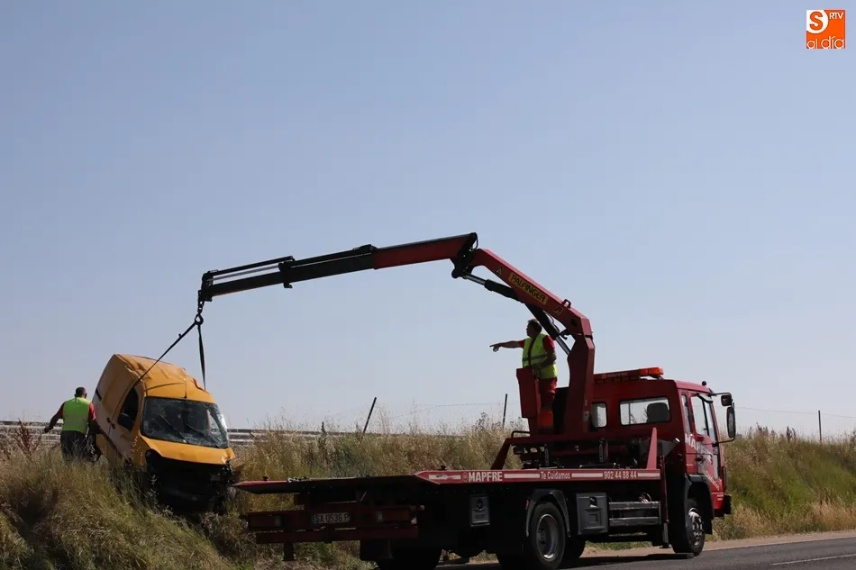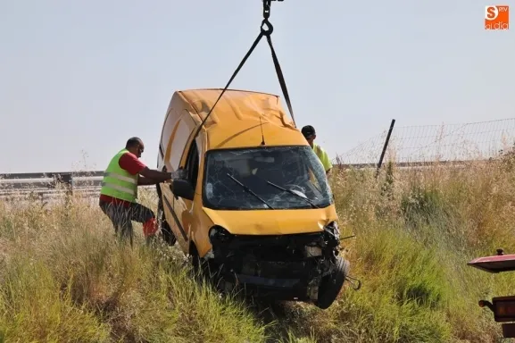 Dos heridos en una aparatosa salida de vía de una furgoneta en la A-62