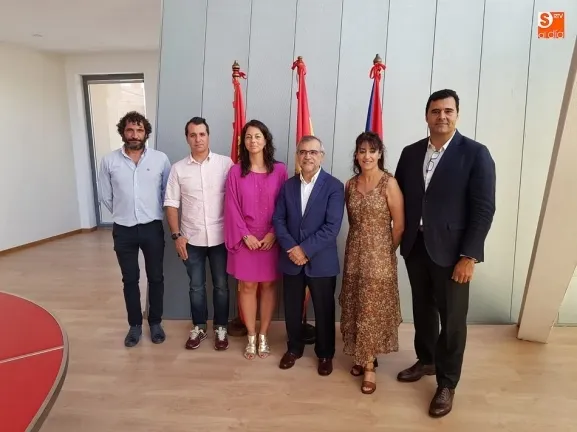 El Ayuntamiento de Guijuelo ha acogido esta mañana una reunión de la Junta Directiva de la Red de Cooperación de Ciudades en la Ruta de la Plata. El presidente y alcalde La Bañeza, José Miguel Palazuelo Martín; el vicepresidente, y alcalde de Aller, David Moreno Bobela; Javier Torres, director de contratación, Promoción Nacional y Planificación del Ayuntamiento de Sevilla; Ismael Martín, técnico de Turismo de Plasencia y la gerente de la red, Luisa Ferrero fueron recibidos por la teniente de alcalde, Mª Jesús Moro Tejedor.