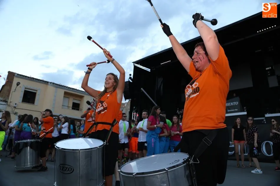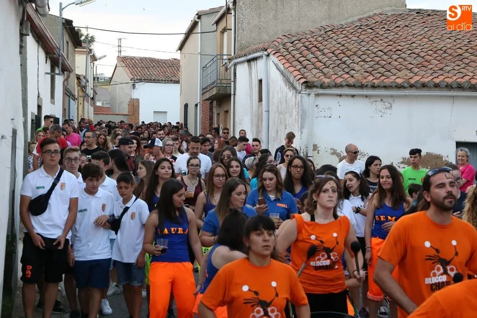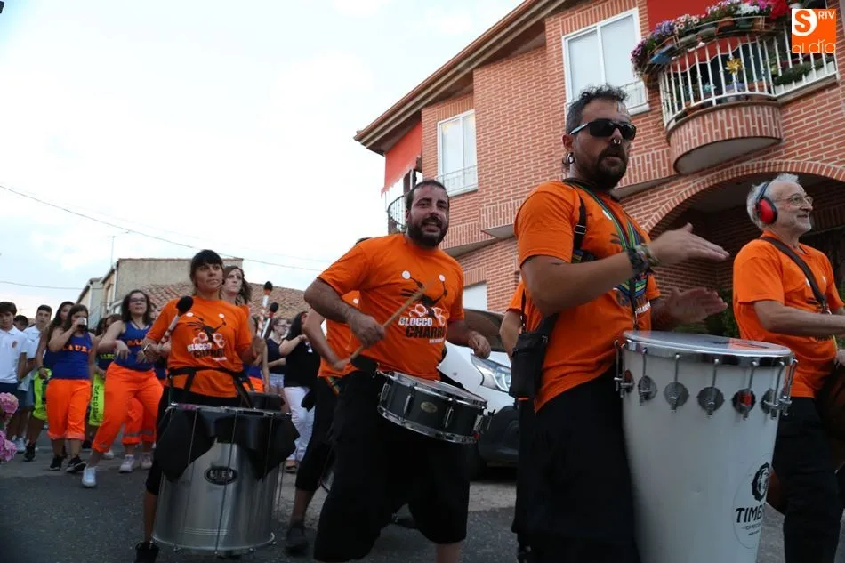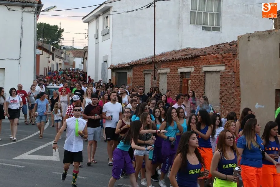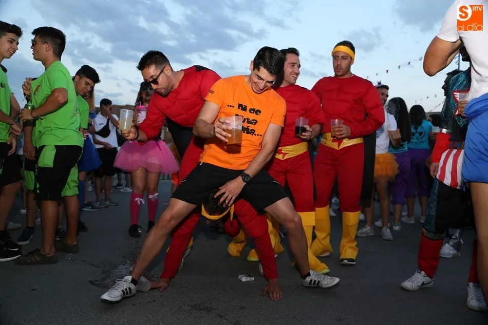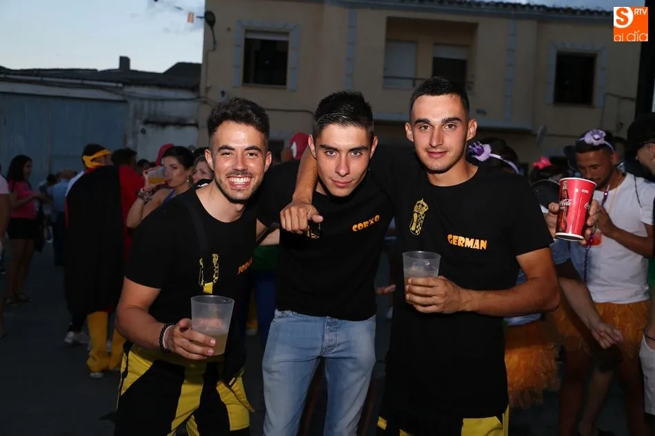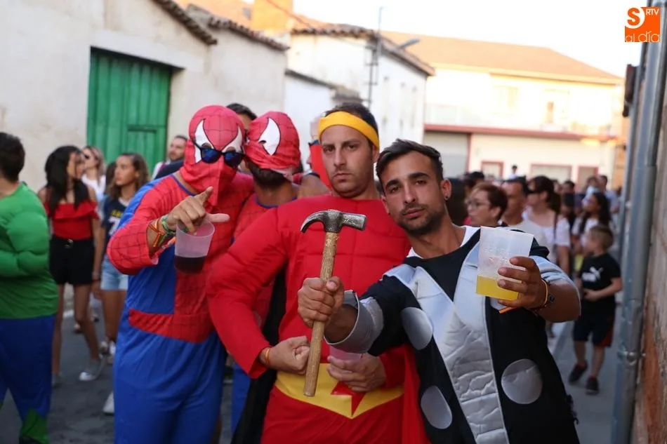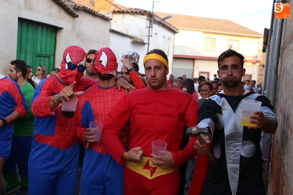 Con disfraz o sin él, decenas de peñistas villoruelenses disfrutaron a lo grande en el pasacalles que precedió al pregón. La batucada Blocco Charro y la charanga El Tinglao se encargaron de poner música al recorrido, que se detenía en las peñas para degustar el aperitivo ofrecido por cada una de ellas.