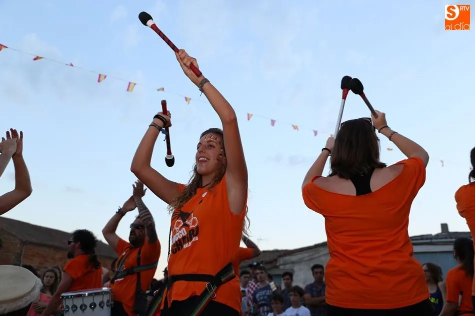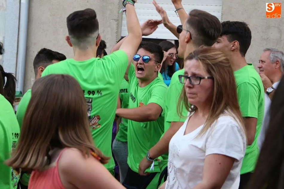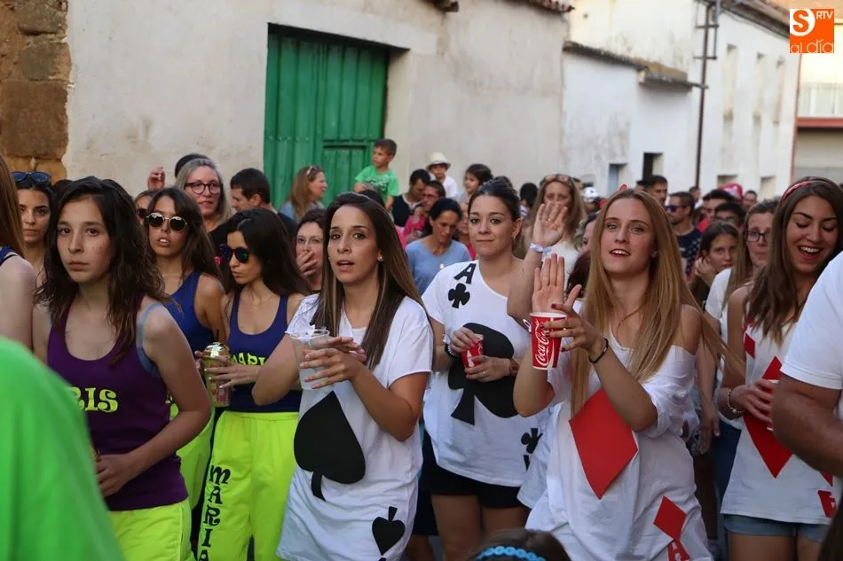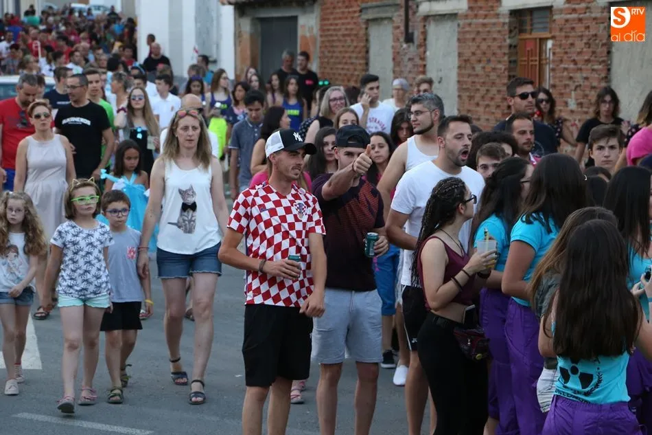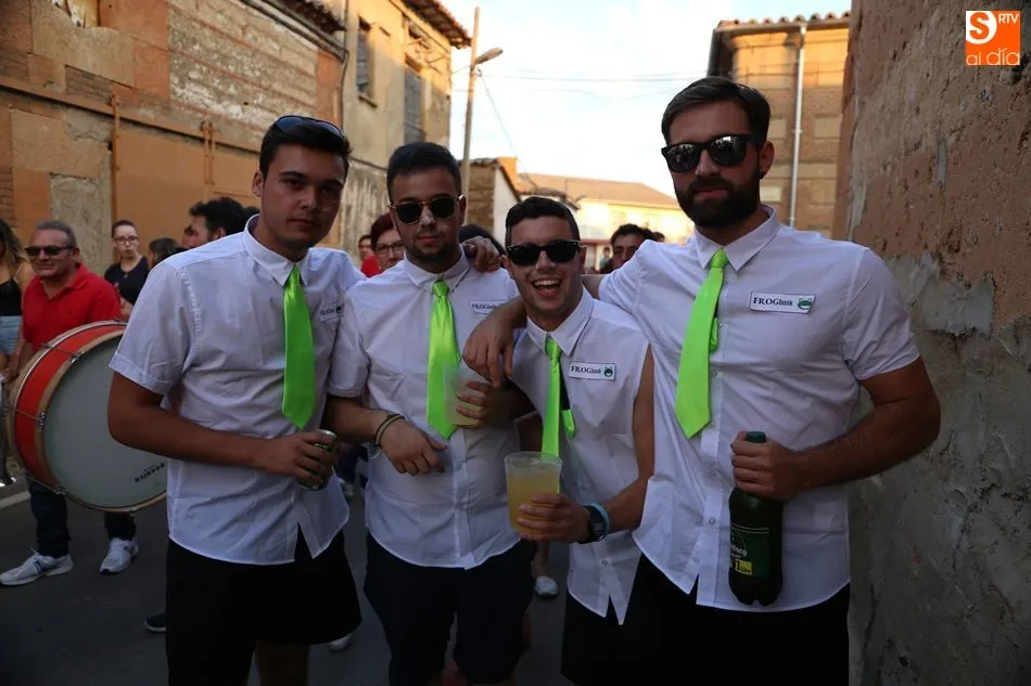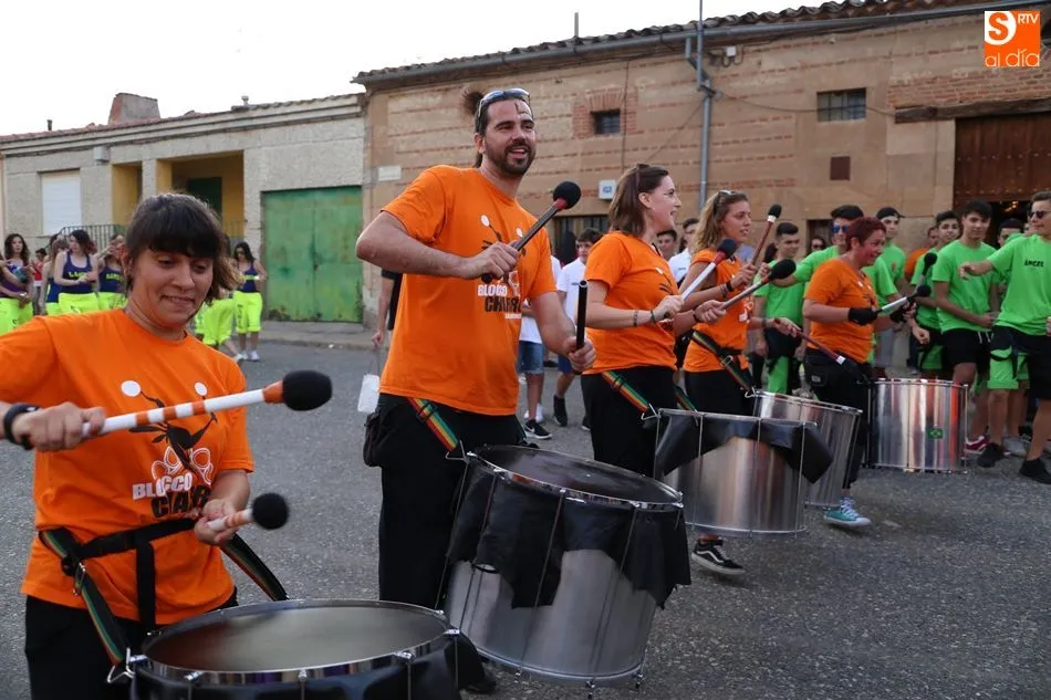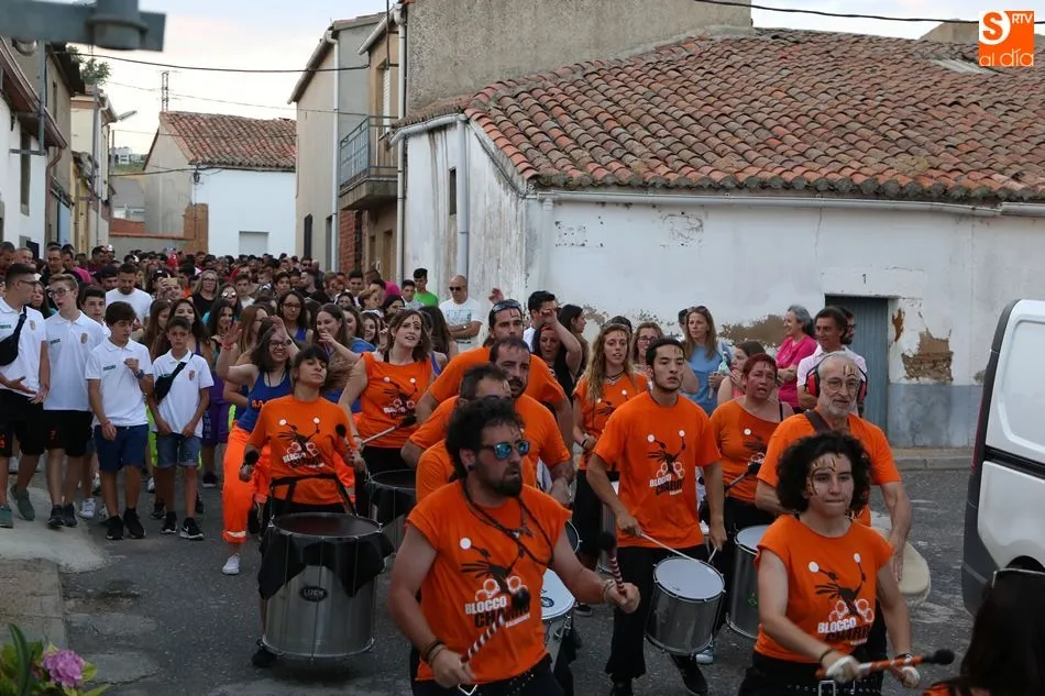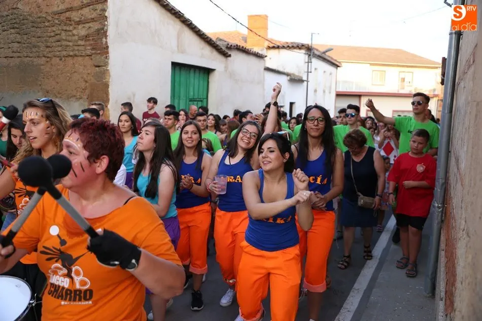 Con disfraz o sin él, decenas de peñistas villoruelenses disfrutaron a lo grande en el pasacalles que precedió al pregón. La batucada Blocco Charro y la charanga El Tinglao se encargaron de poner música al recorrido, que se detenía en las peñas para degustar el aperitivo ofrecido por cada una de ellas.