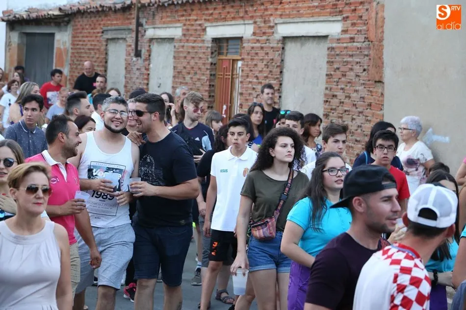 Llegó el momento tan esperado por los vecinos de Villoruela. El repique de campanas anunciaba que este viernes daban inicio las fiestas en honor a la Virgen del Carmen y al Cristo de la Esperanza. Los primeros compases de la fiesta estuvieron marcados por la tradicional ofrenda floral, los ritmos frenéticos de la batucada y la animación de la charanga. El pregón, a cargo del coro de la localidad, inauguró oficialmente las celebraciones.