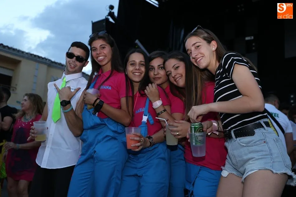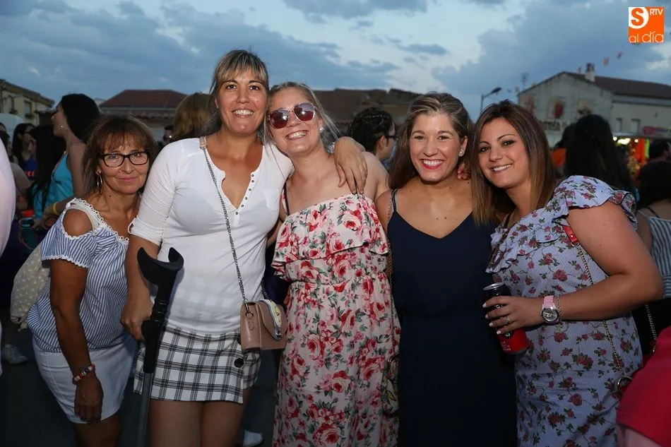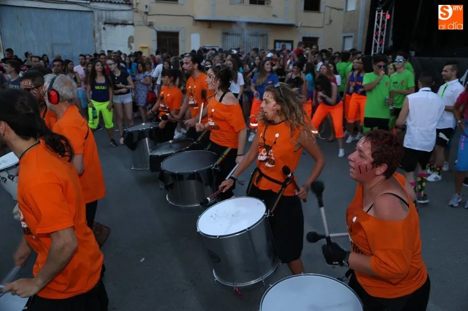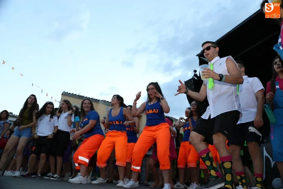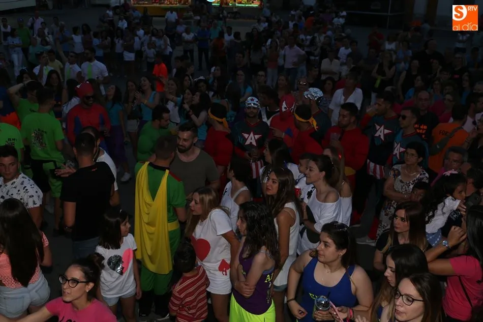Las ganas de bailar y cantar de los jóvenes quedaron patentes en el pasacalles, que concluyó en la Plaza de España, donde la fiesta continuó hasta el inicio del pregón. Además, al finalizar este, la discoteca móvil Macro Show Movimiento, que animará la primera noche de las fiestas, dio una pequeña muestra de lo que será la noche poniendo uno de los últimos éxitos musicales, que hizo arrancarse a bailar a todos los jóvenes.