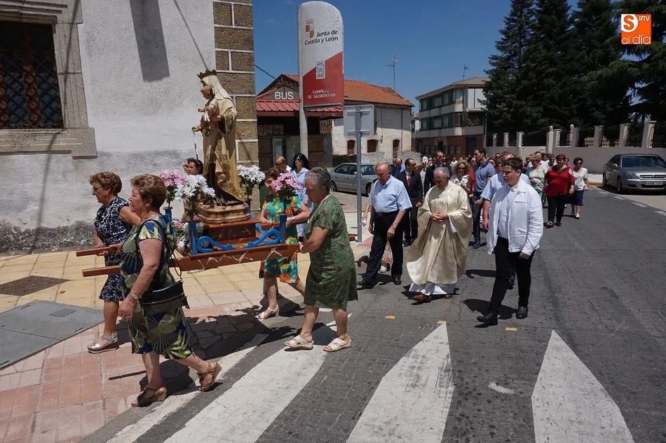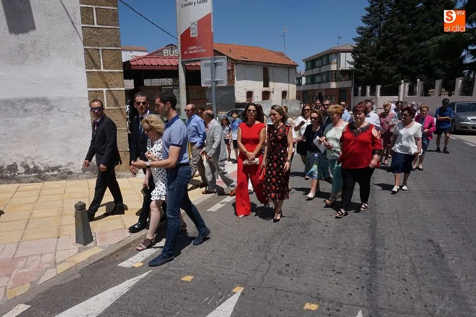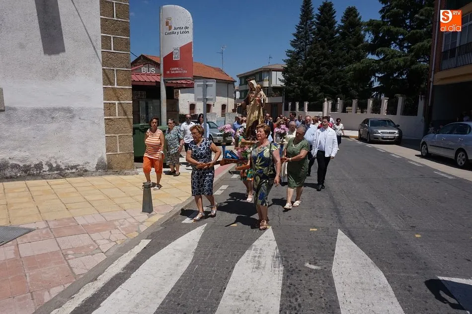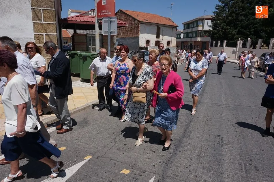 Los festejos de Campillo de Salvatierra cumplieron en la jornada de hoy con el homenaje a la Virgen del Carmen con la tradicional misa y procesión por las calles de la localidad. El coro parroquial de Guijuelo se encargó de poner la nota musical en el oficio religioso. A continuación, los vecinos disfrutaron del convite municipal en el bar La Escuela, con la presencia de la alcaldesa pedánea, Rosa Hernández, y de varios concejales del Ayuntamiento de Guijuelo.