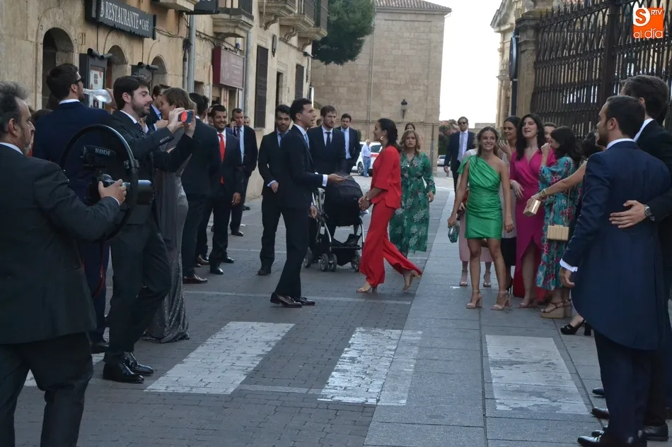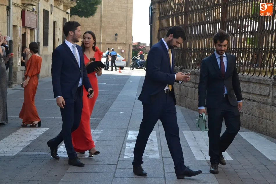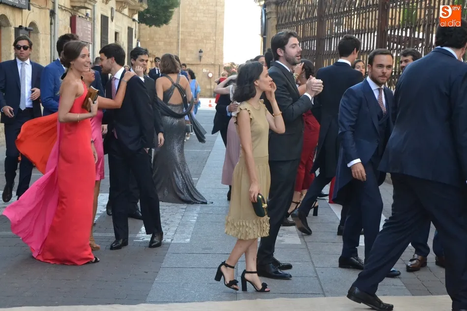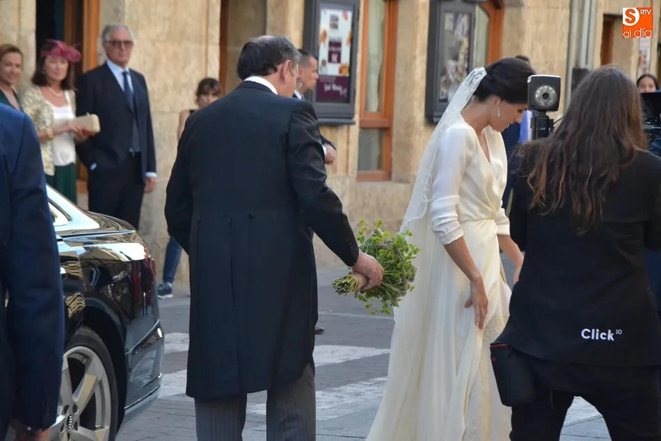 La novia hizo acto de presencia con total puntualidad en un vehículo en el que también viajaba su padre, Ignacio Sánchez Galán, quién la ayudó a bajar del mismo. Aunque no hubo tantas caras famosas, la boda sí tuvo relevantes medidas de seguridad y restricciones. Por ejemplo, se prohibió el aparcamiento junto a la Plazuela de San Salvador desde las 17.30 horas, y la circulación por las puertas de la Iglesia de Cerralbo.