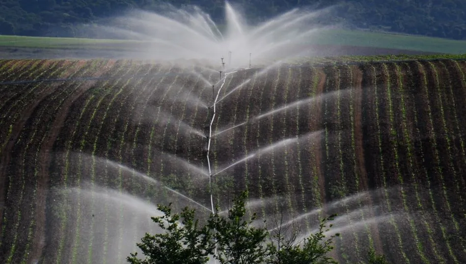 ?¿Qué estamos viendo? ¿Qué es lo que forma esta luz irisada, estas geometrías, tan bien proporcionadas y distribuidas? Este riego, estival y mecánico, del agua produce una belleza que...? (José Luis Puerto) / Foto de Carlos Santiago