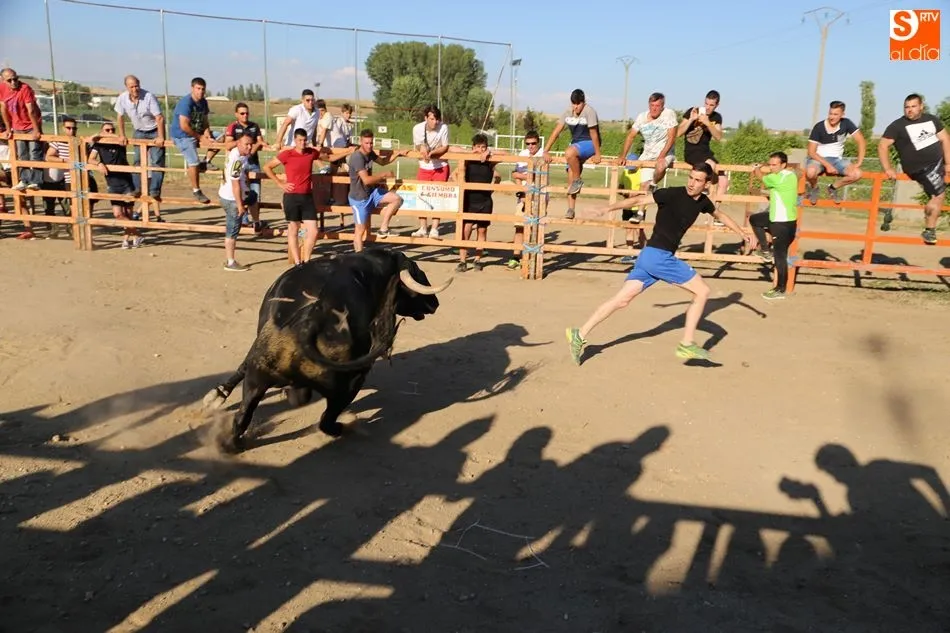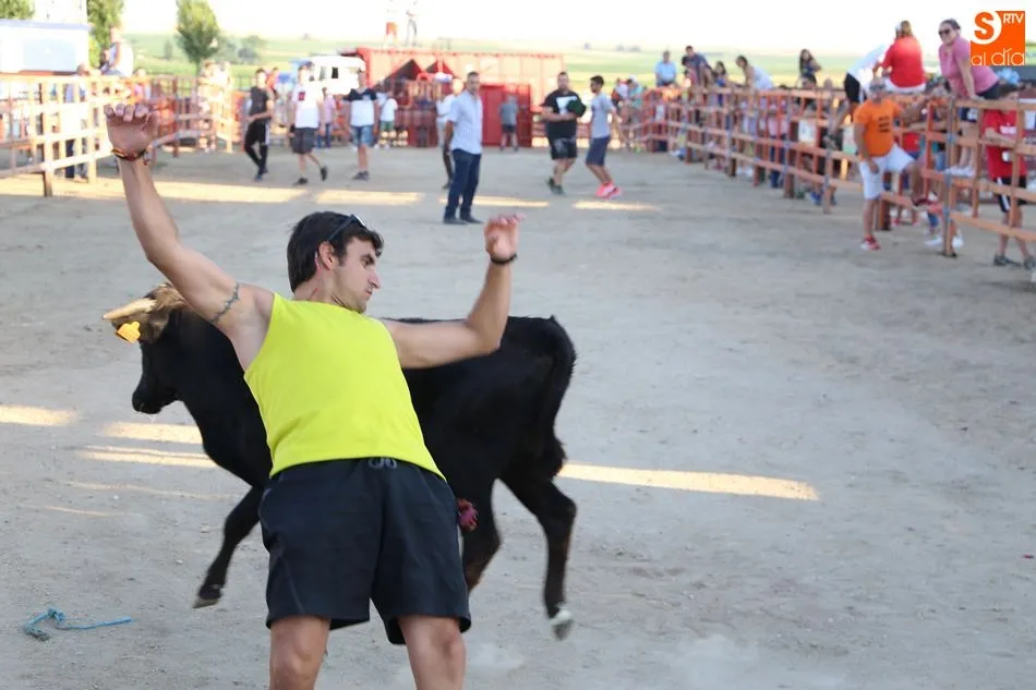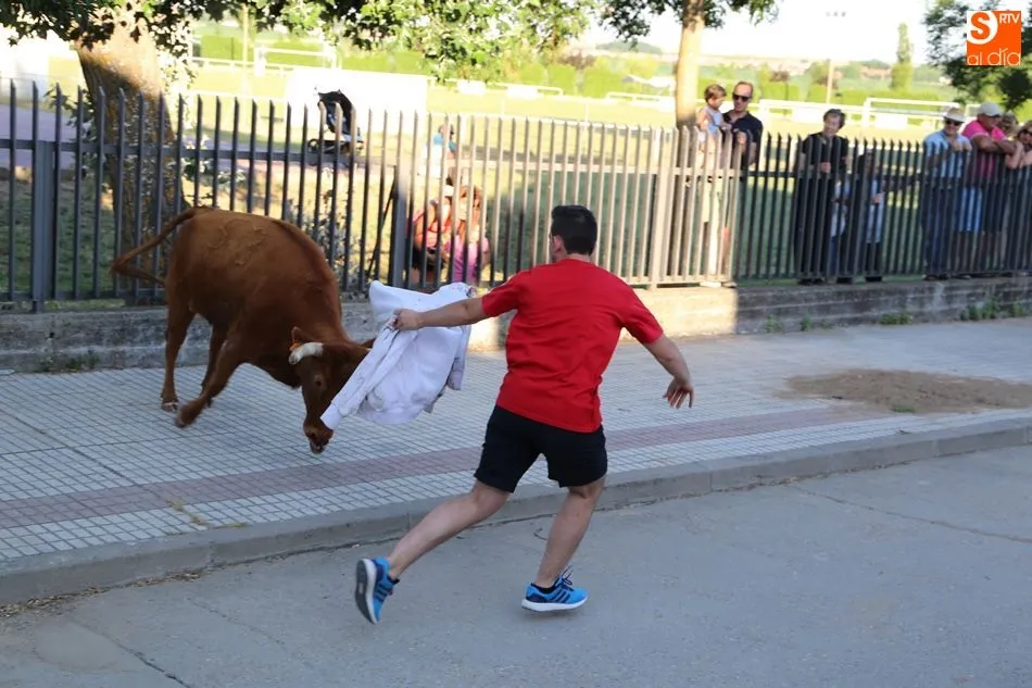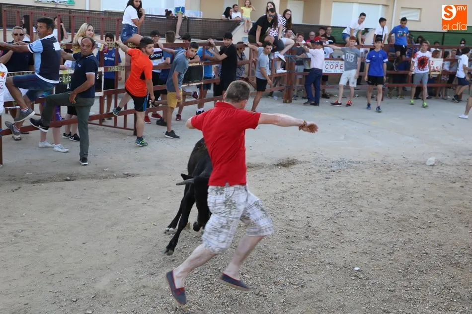 Los mozos han dado espectáculo arriesgándose con valentía ante las reses. Con la segunda vaquilla fue con la que más gente se animó a participar, debido a su pequeño tamaño.