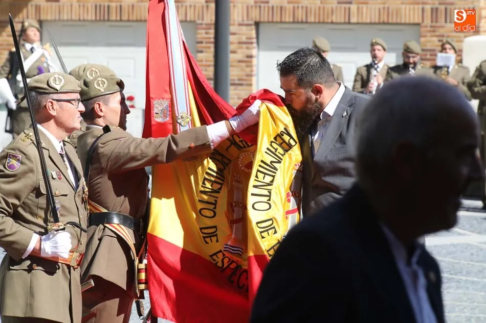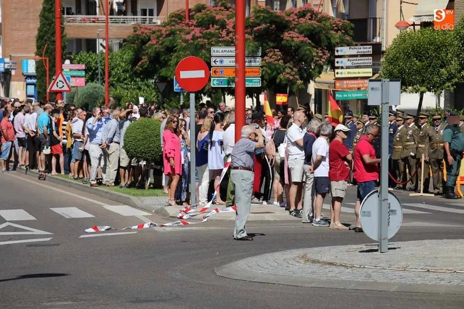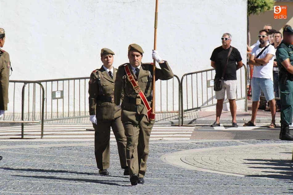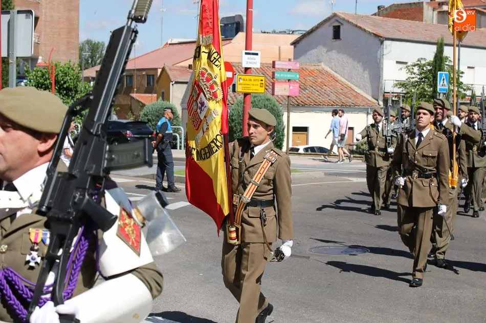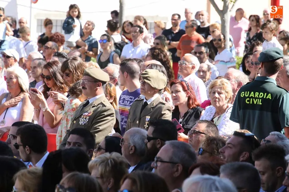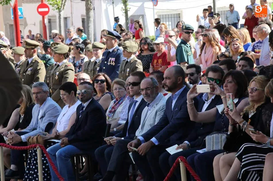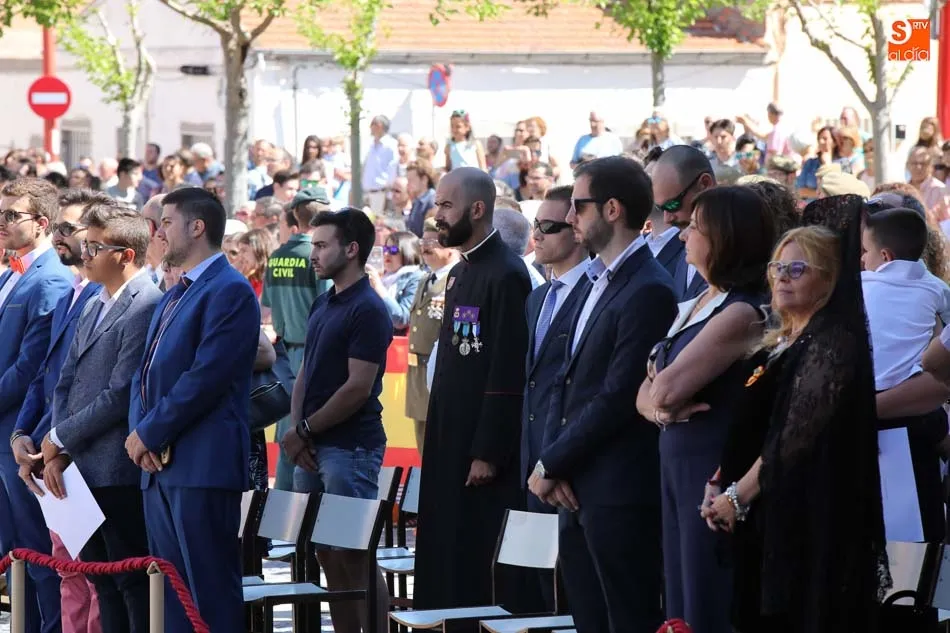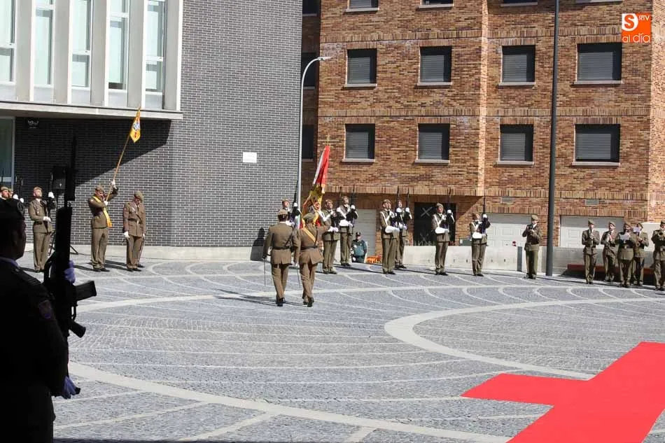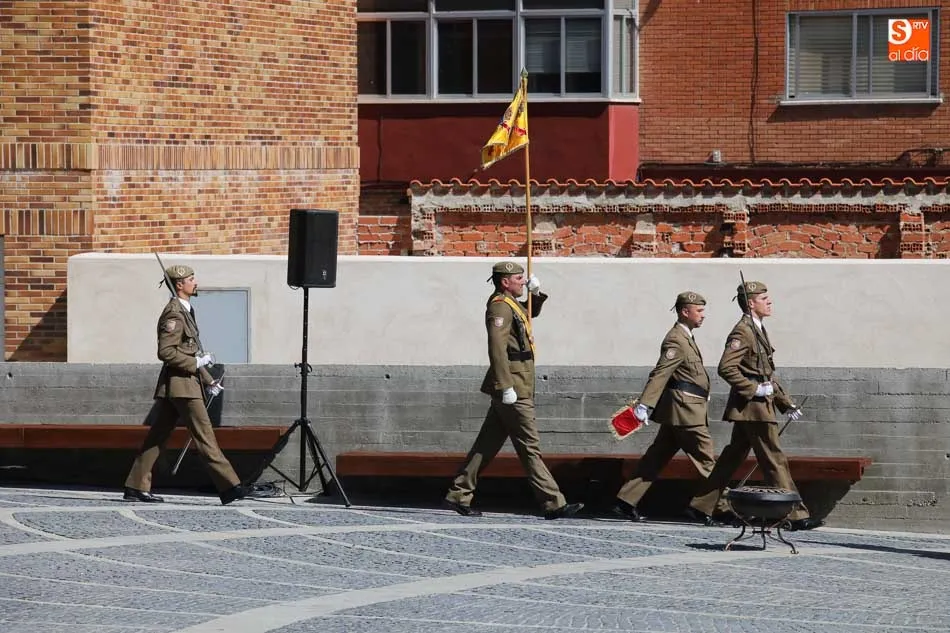 El acto de jura de bandera para personal civil estuvo presidido por el General, Juan Manuel Broncano, y el alcalde de Santa Marta de Tormes, David Mingo. Participaron también 70 personas que juaron lealtad en la primera Jura de Bandera Civil de la historia de Santa Marta.