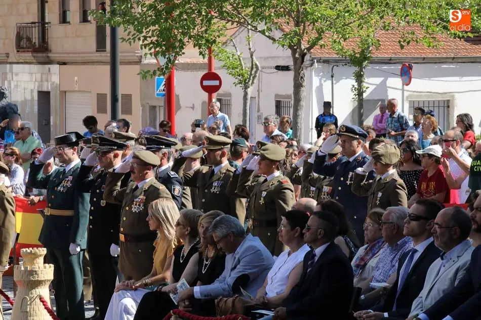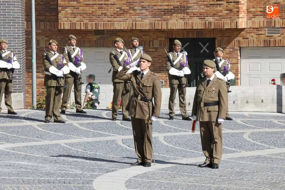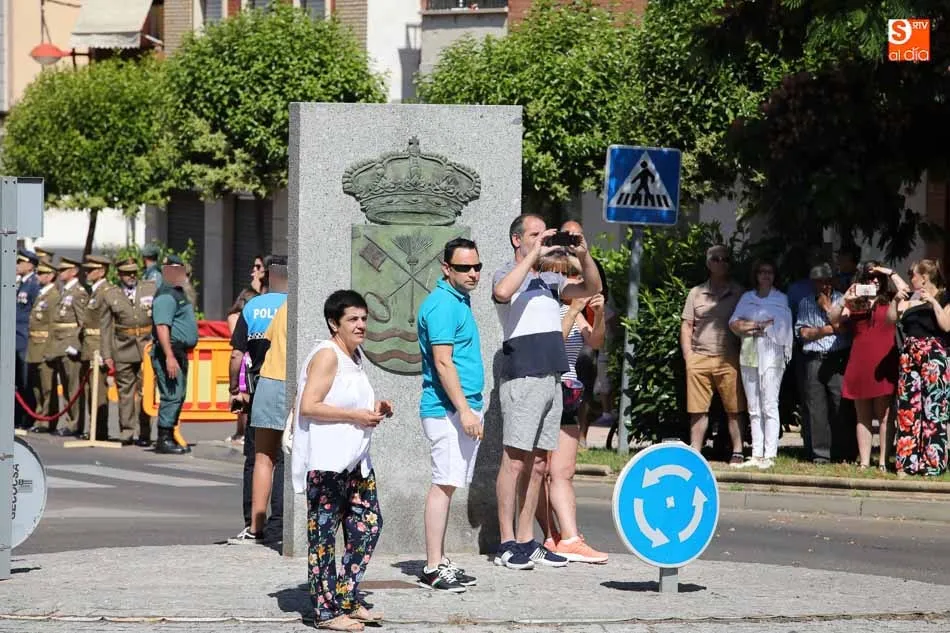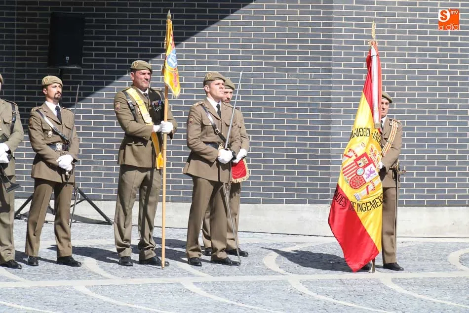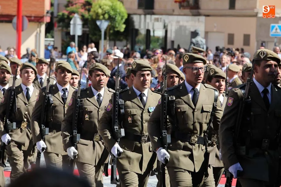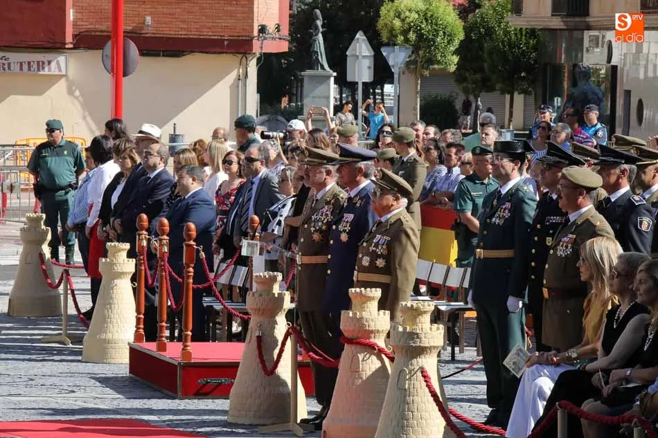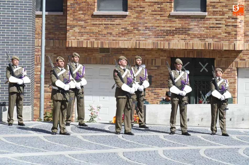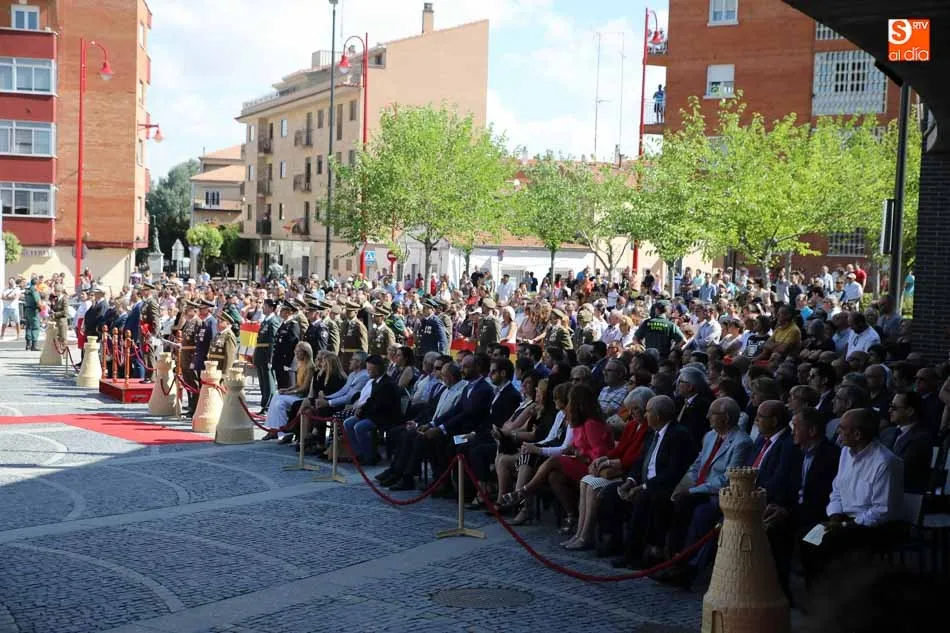 El acto de jura de bandera para personal civil estuvo presidido por el General, Juan Manuel Broncano, y el alcalde de Santa Marta de Tormes, David Mingo. Participaron también 70 personas que juaron lealtad en la primera Jura de Bandera Civil de la historia de Santa Marta.