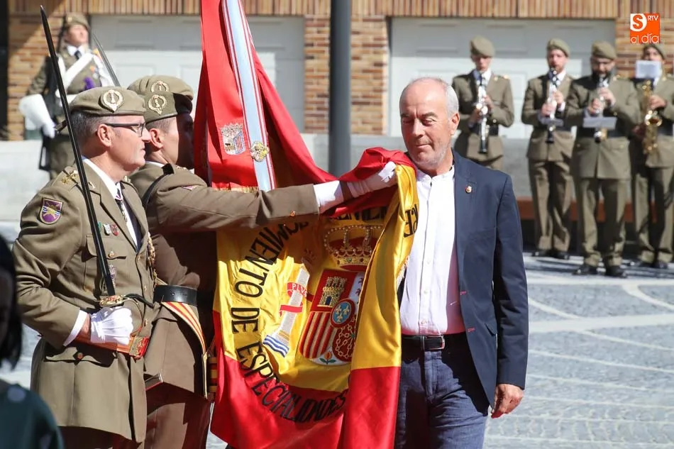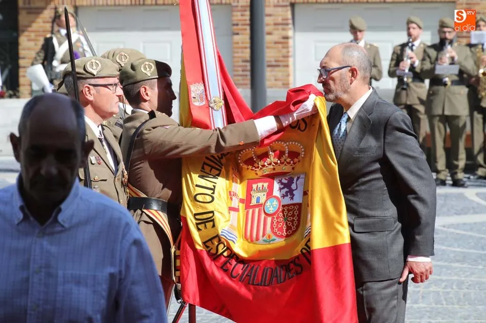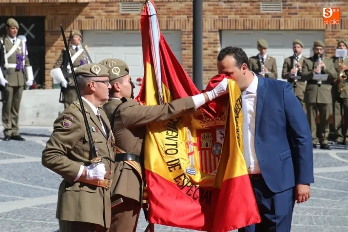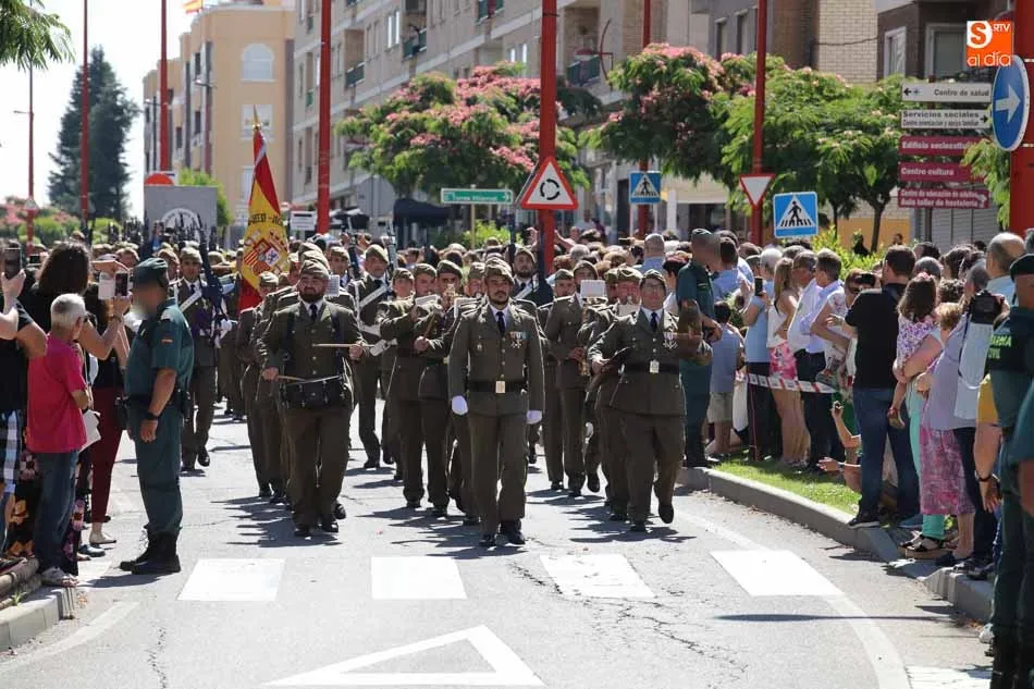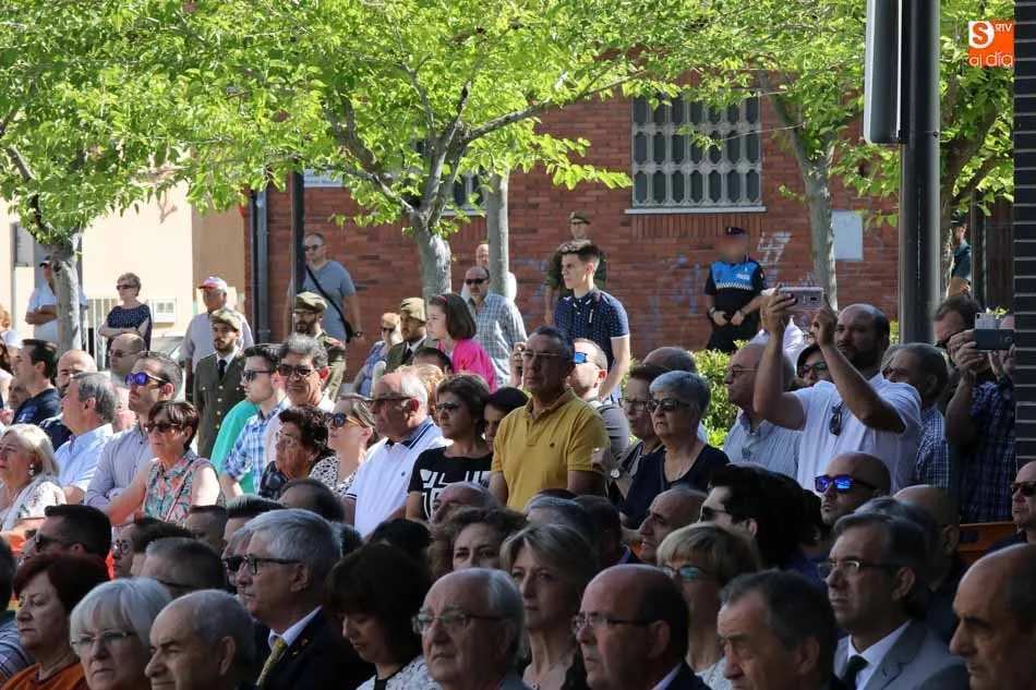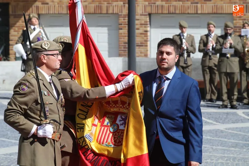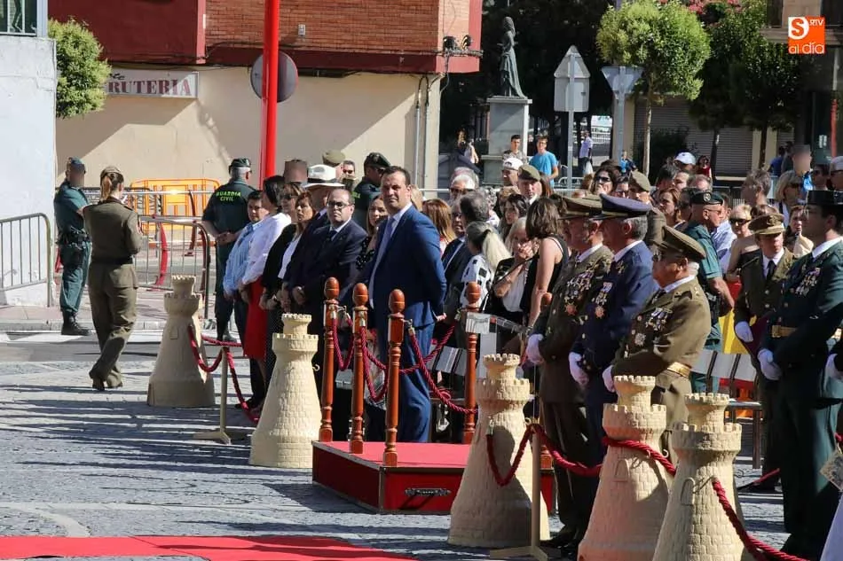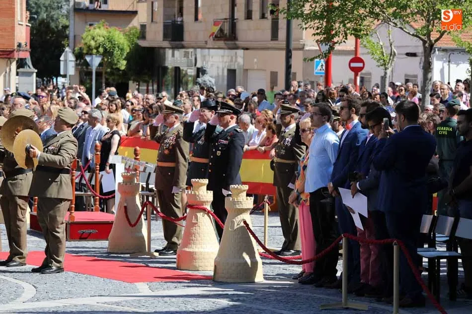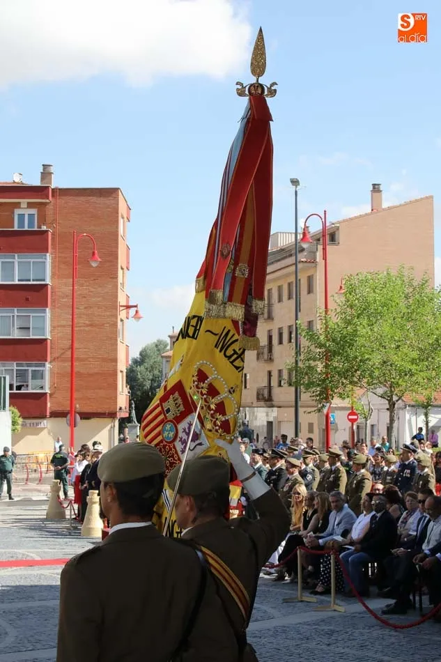 El acto de jura de bandera para personal civil estuvo presidido por el General, Juan Manuel Broncano, y el alcalde de Santa Marta de Tormes, David Mingo. Participaron también 70 personas que juaron lealtad en la primera Jura de Bandera Civil de la historia de Santa Marta.