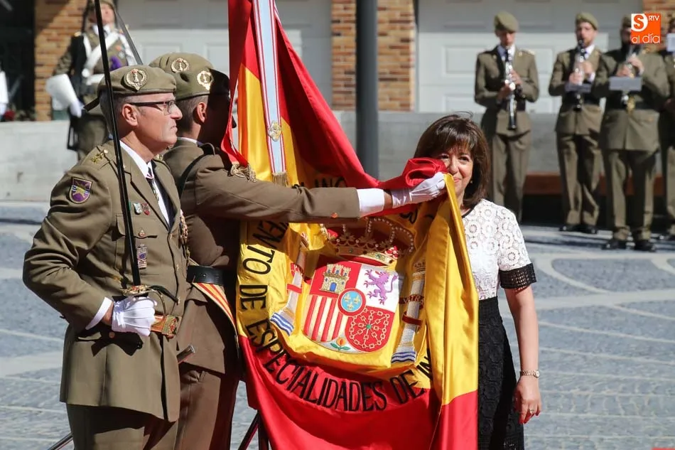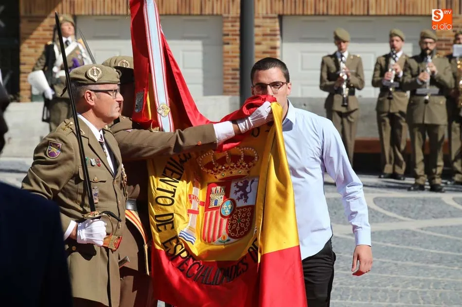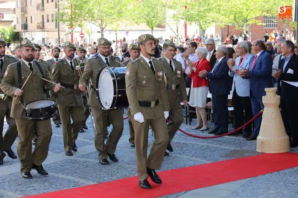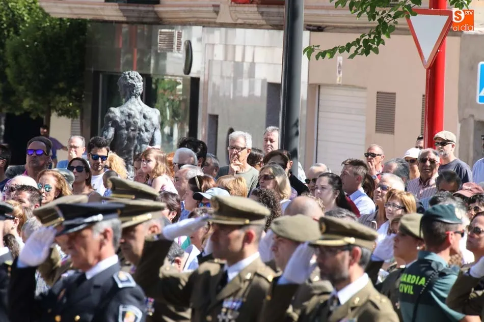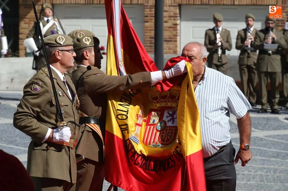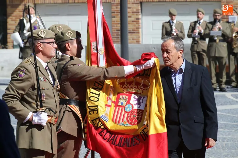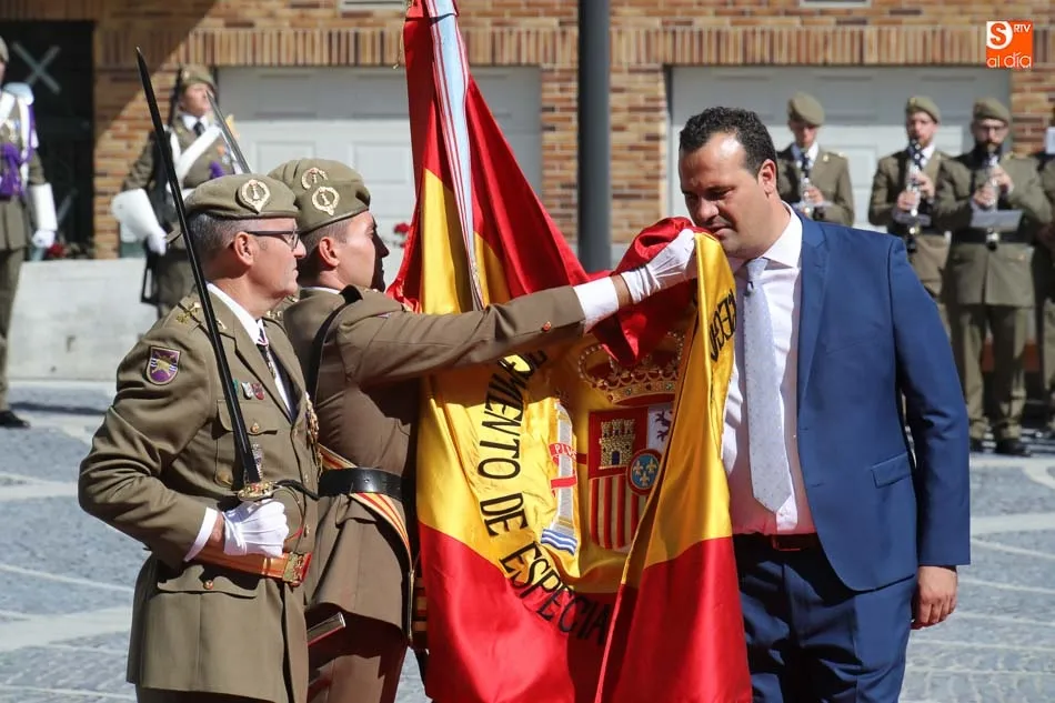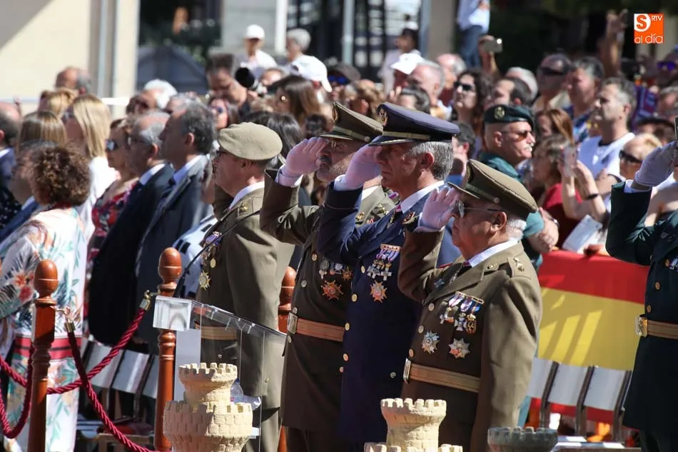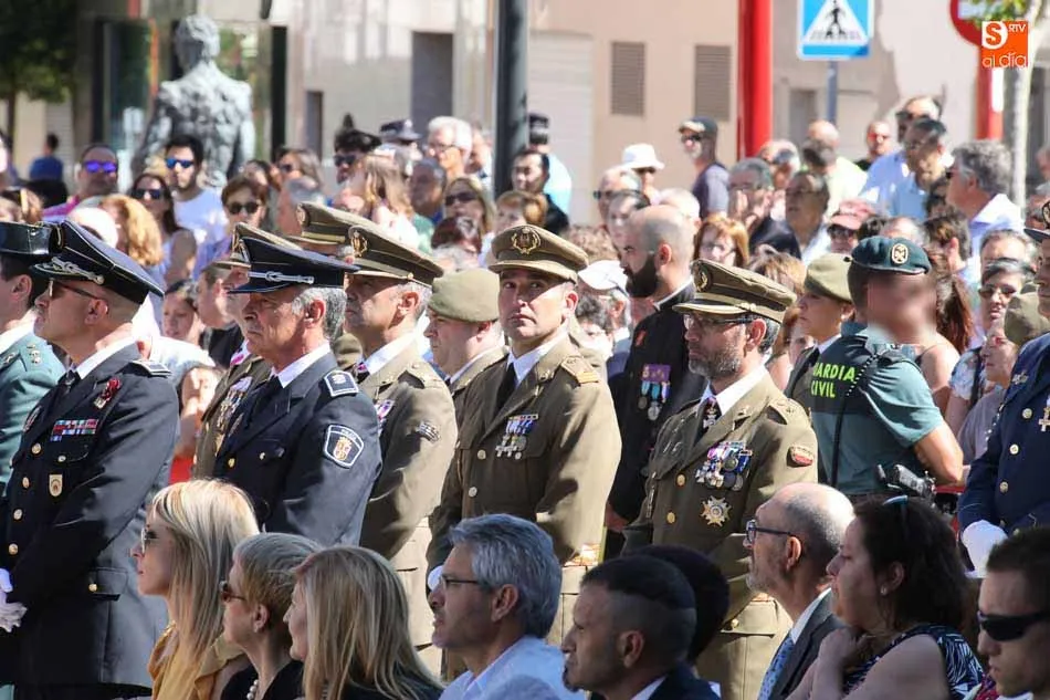 El acto de jura de bandera para personal civil estuvo presidido por el General, Juan Manuel Broncano, y el alcalde de Santa Marta de Tormes, David Mingo. Participaron también 70 personas que juaron lealtad en la primera Jura de Bandera Civil de la historia de Santa Marta.