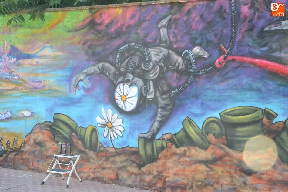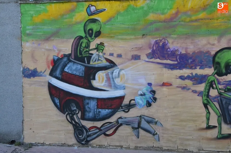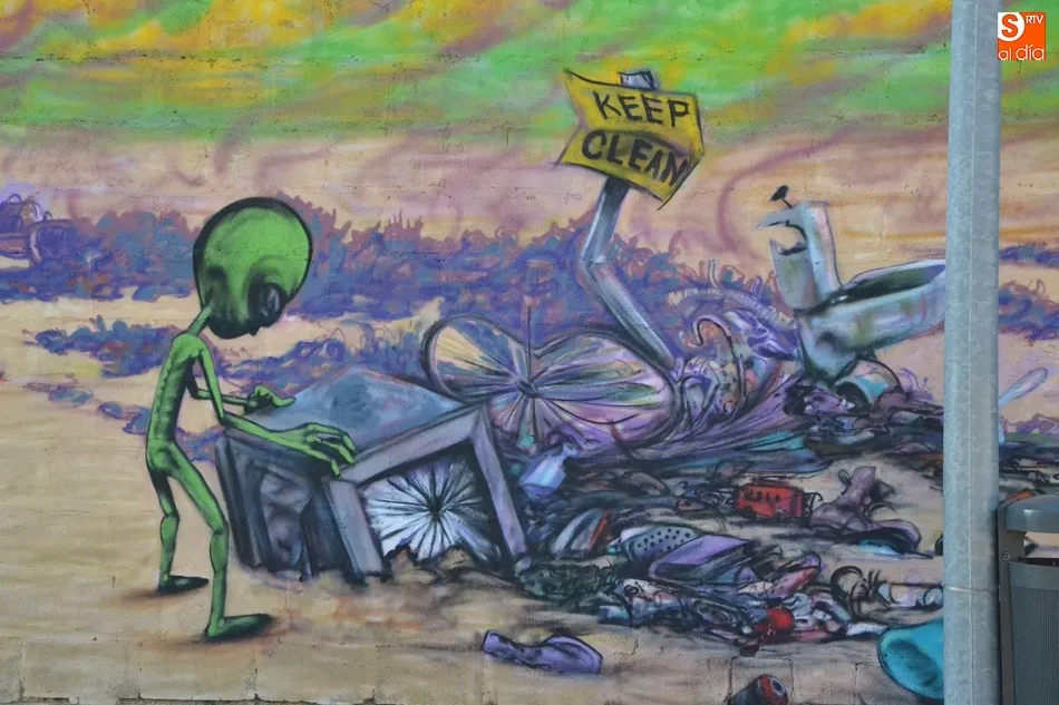 Su objetivo es que sirva de concienciación a todos los que contemplen el mural, que está dividido en tres partes: los estragos de la contaminación en la tierra (el mural va de izquierda a derecha comenzando con un extraterrestre que observa esos restos terrestres), en el mar y en el espacio, plasmando en el dibujo toda la suciedad que hay en ellas por culpa del hombre.