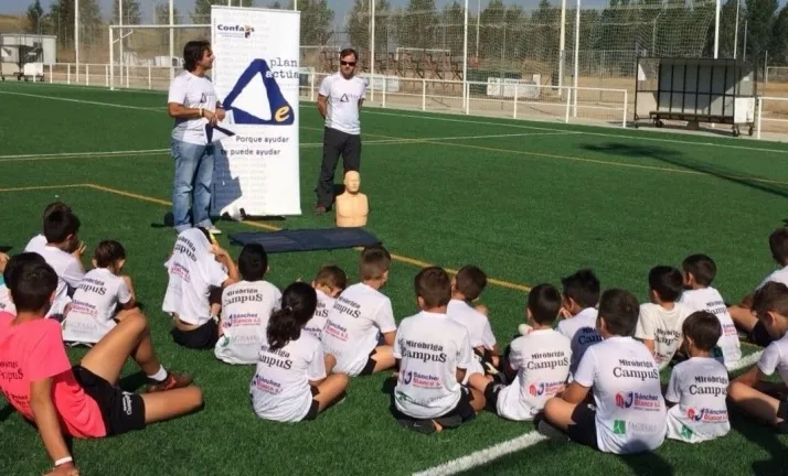 Los participantes en el Miróbriga Campus, que este miércoles están disfrutando de una excursión a la ciudad de Oporto (durante la cual visitarán el estadio Do Dragao), recibieron en la jornada del martes en los Campos de Toñete una sesión formativa en emergencias.