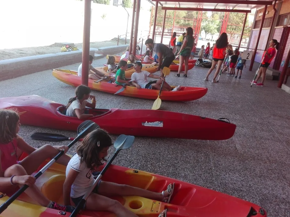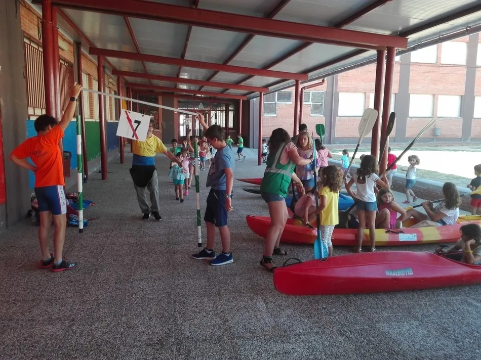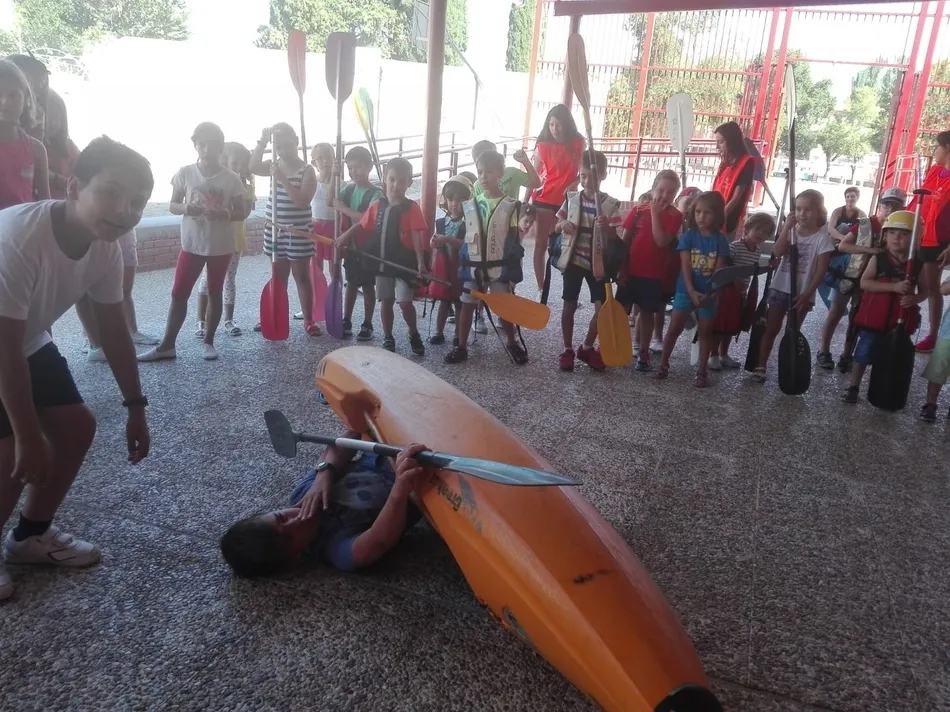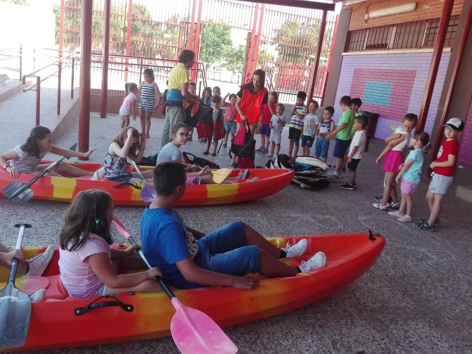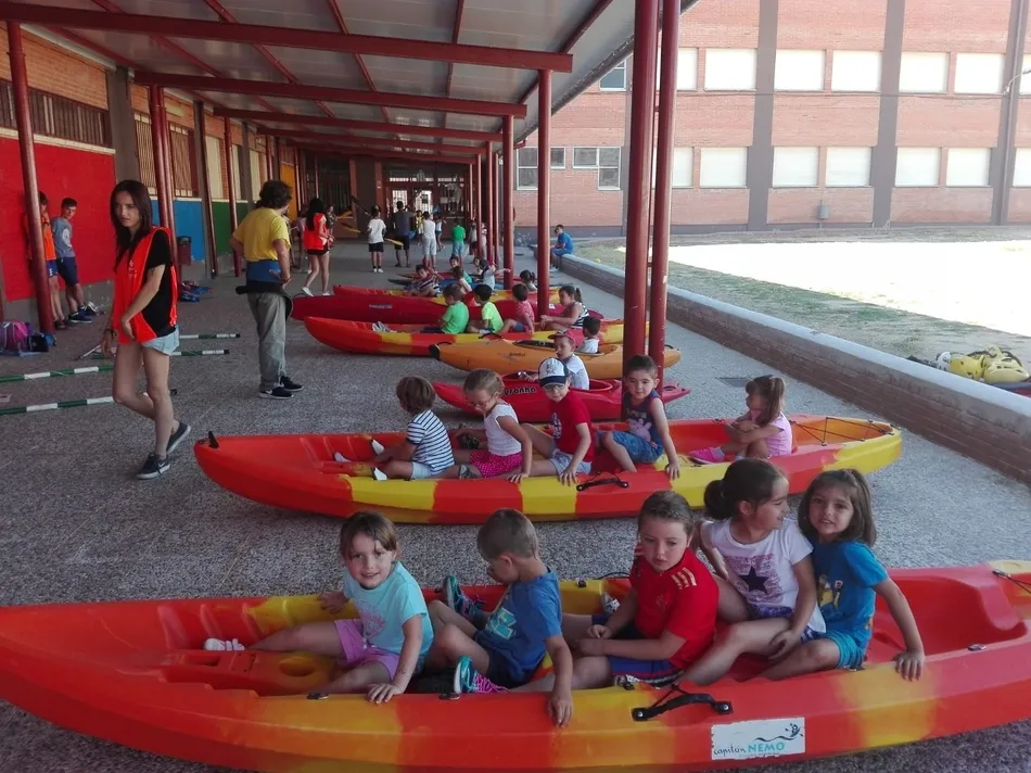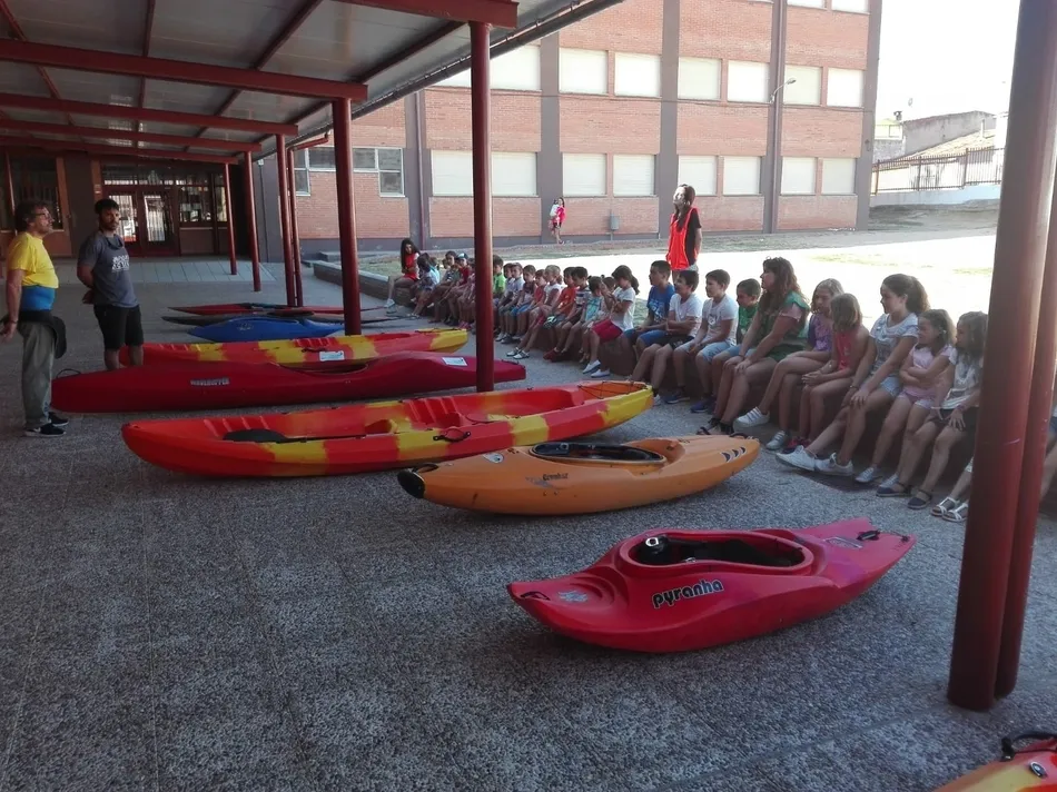 Los miembros de Capitán Nemo, con su presidente Juan José Sánchez al frente, acudieron acompañados de la empresa Turismo Activa, para enseñar a los niños ?aunque fuese sin agua- cómo se maneja una piragua, y como se pasan las distintas puertas existentes en una competición de piragüismo. En la jornada del jueves, continuarán las actividades deportivas con la visita de varios atletas profesionales capitaneados por Daniel Javier Bravo.