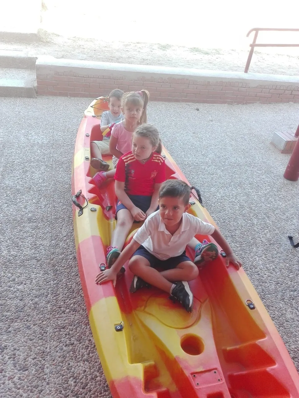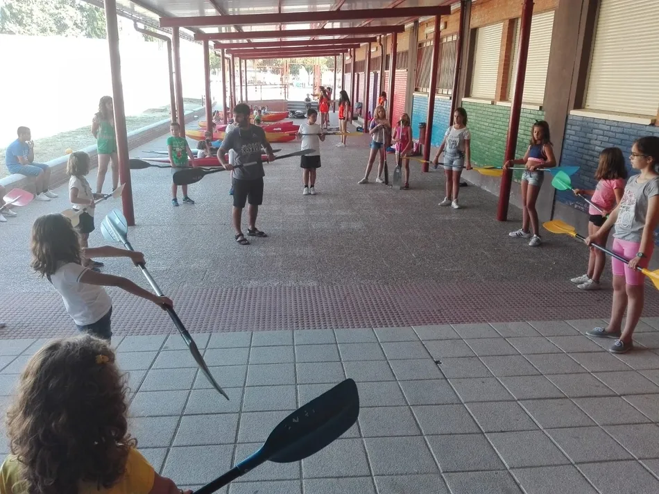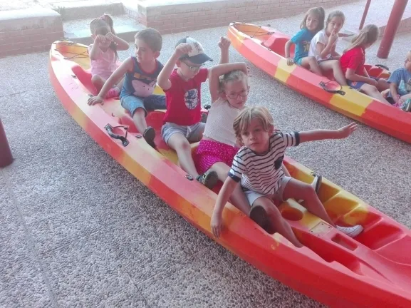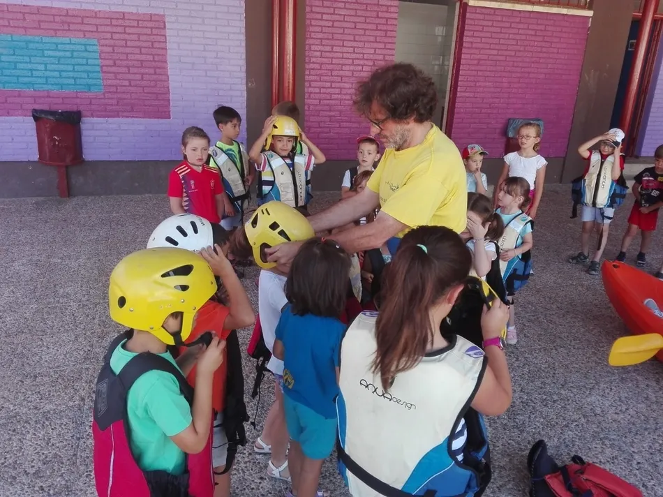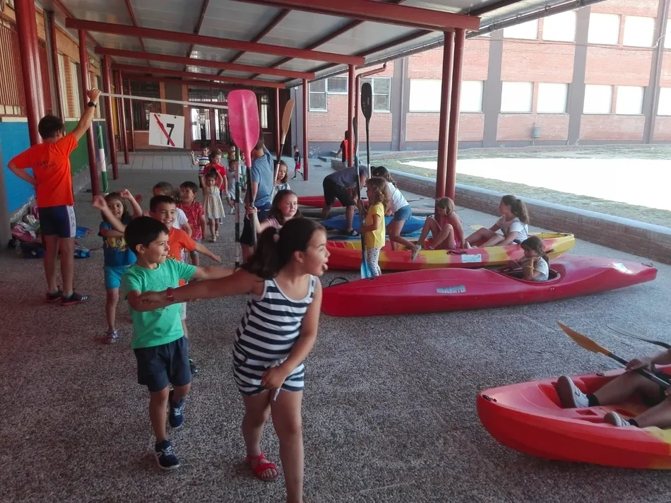 Los miembros de Capitán Nemo, con su presidente Juan José Sánchez al frente, acudieron acompañados de la empresa Turismo Activa, para enseñar a los niños ?aunque fuese sin agua- cómo se maneja una piragua, y como se pasan las distintas puertas existentes en una competición de piragüismo. En la jornada del jueves, continuarán las actividades deportivas con la visita de varios atletas profesionales capitaneados por Daniel Javier Bravo.