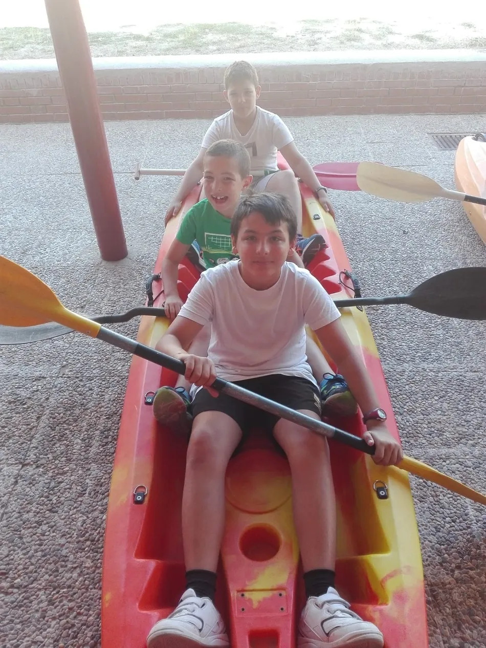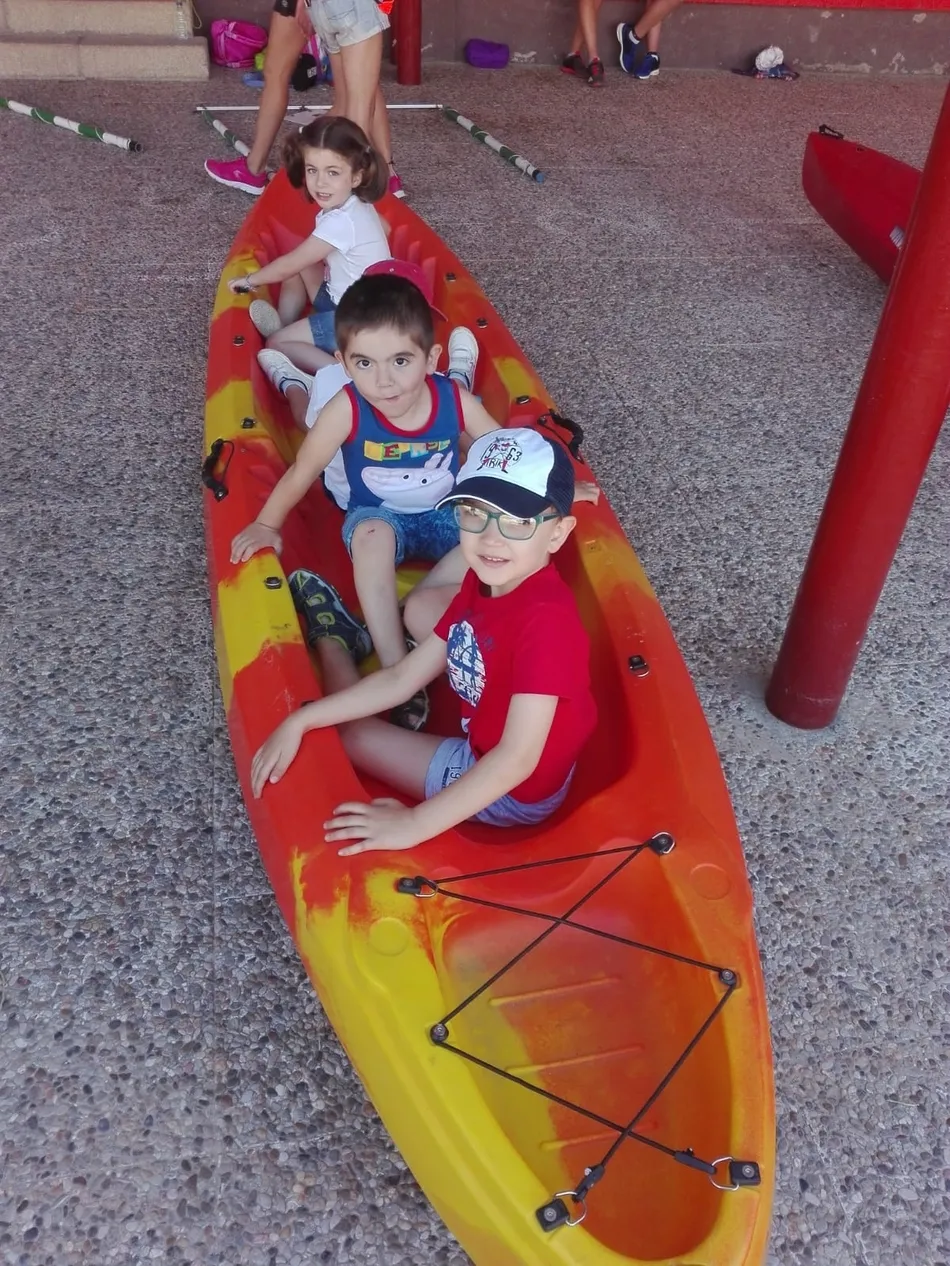 Los niños que están asistiendo al programa Conciliamos en Verano disfrutaron en la mañana del miércoles de una de las actividades más esperadas de cada época estival: la visita del Club Capitán Nemo, que cada año les permite montarse en piragua, en esta ocasión, en las dependencias del Colegio Miróbriga.